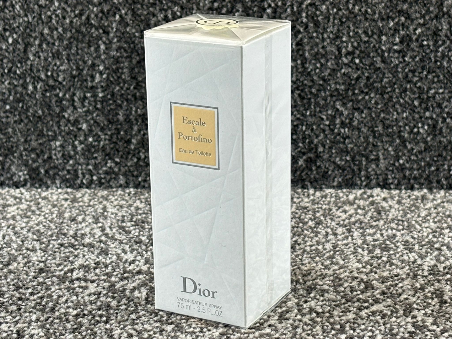 A 75ml bottle of Dior Escale à Portofino Eau De Toilette, presented in its original presentation box and inspired by the relaxed elegance of the Italian Riviera. This refined fragrance captures a sense of freshness and effortless luxury, reflecting Dior’s timeless approach to understated sophistication.