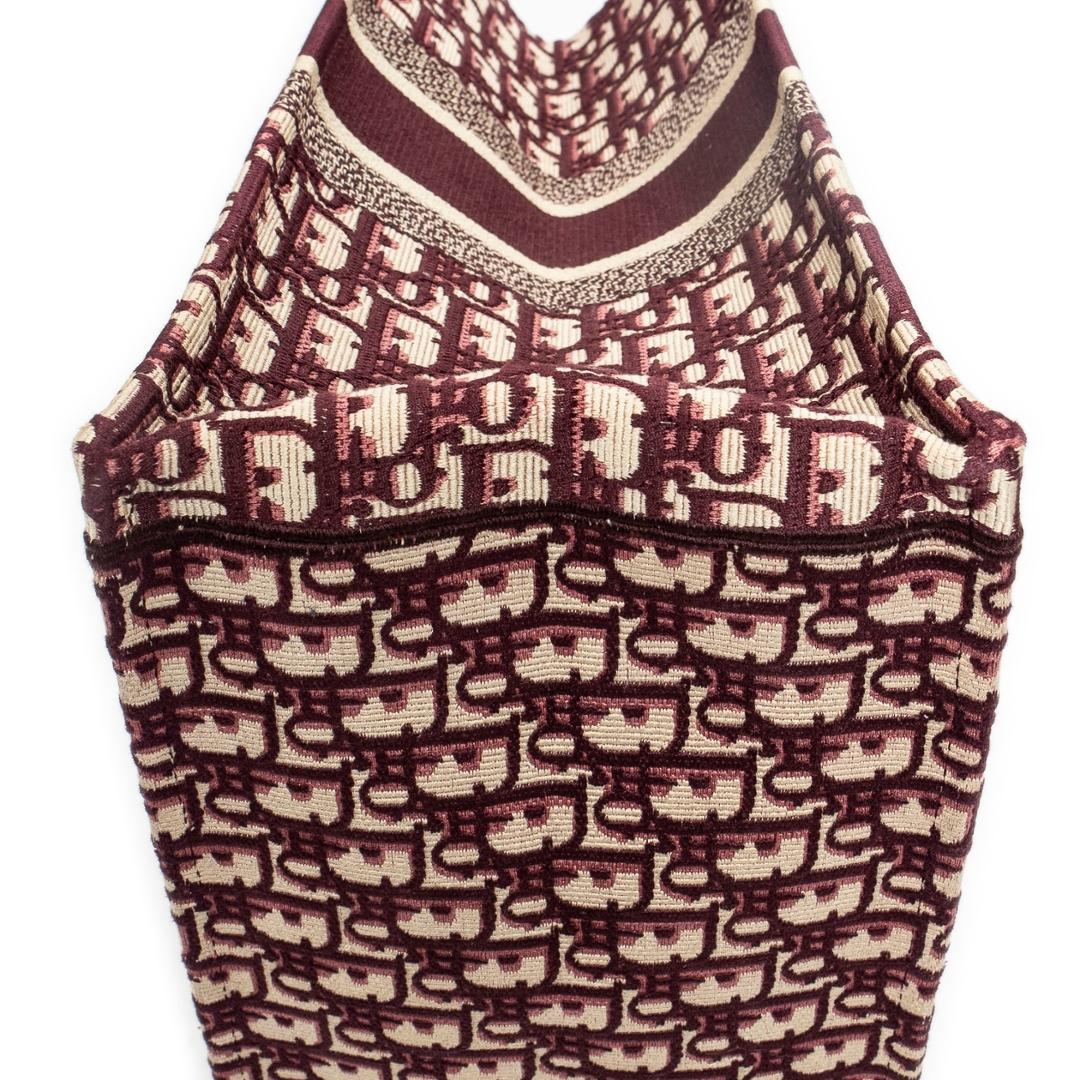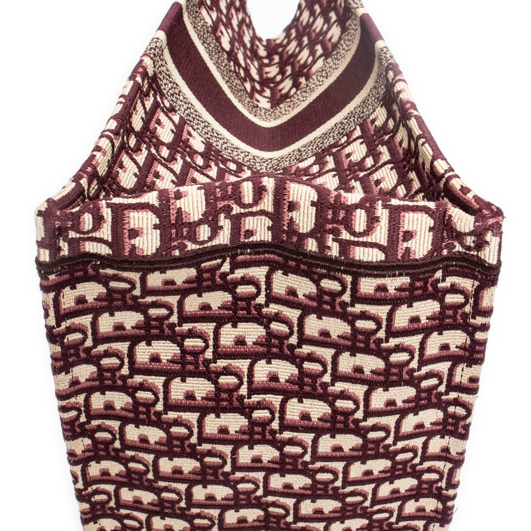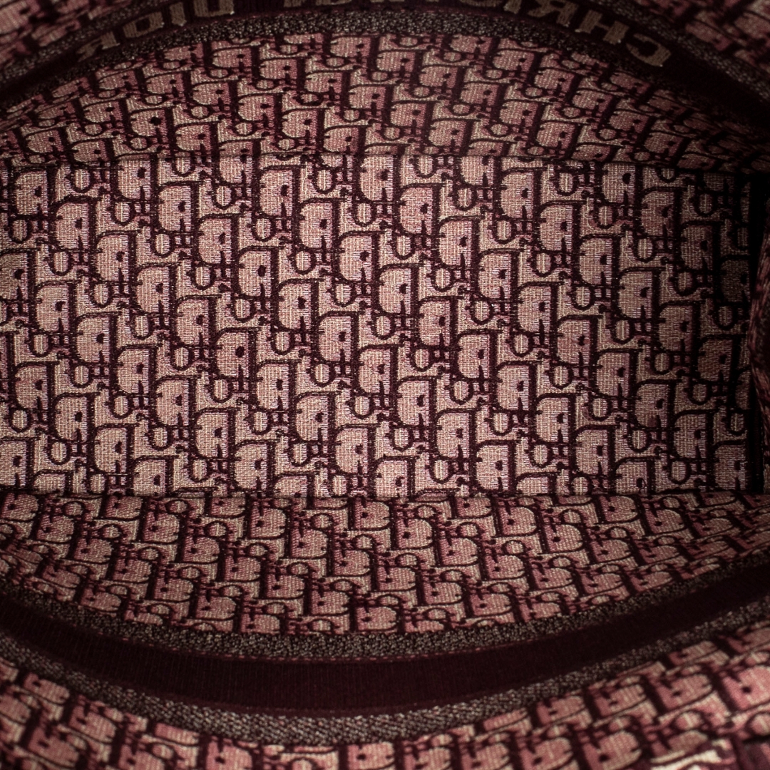 A vintage burgundy and baige canvas Dior Book Tote bag with a certificate of authenticity, Approximately 36cm height, 41cm width.