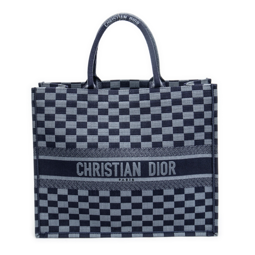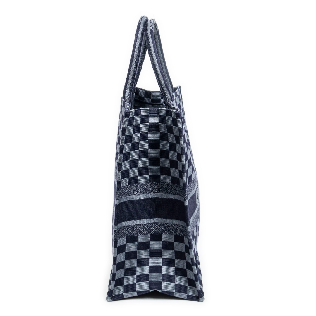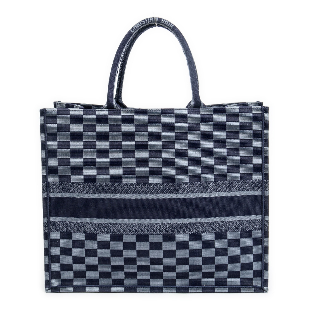 A vintage navy blue and light blue Dior Book Tote bag with a certificate of authenticity, Approximately 36cm height, 41cm width.