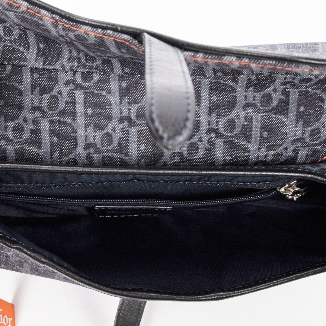 A vintage denim blue canvas Dior Flight Saddle bag with a certificate of authenticity, Approximately 19cm height, 26cm width.
