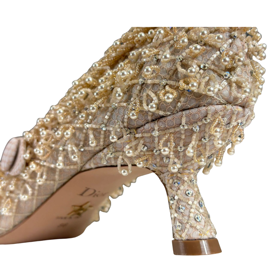 - > Dior Haute Couture Nude Embellished Mesh Pumps with Pearl & Beaded Detailing.