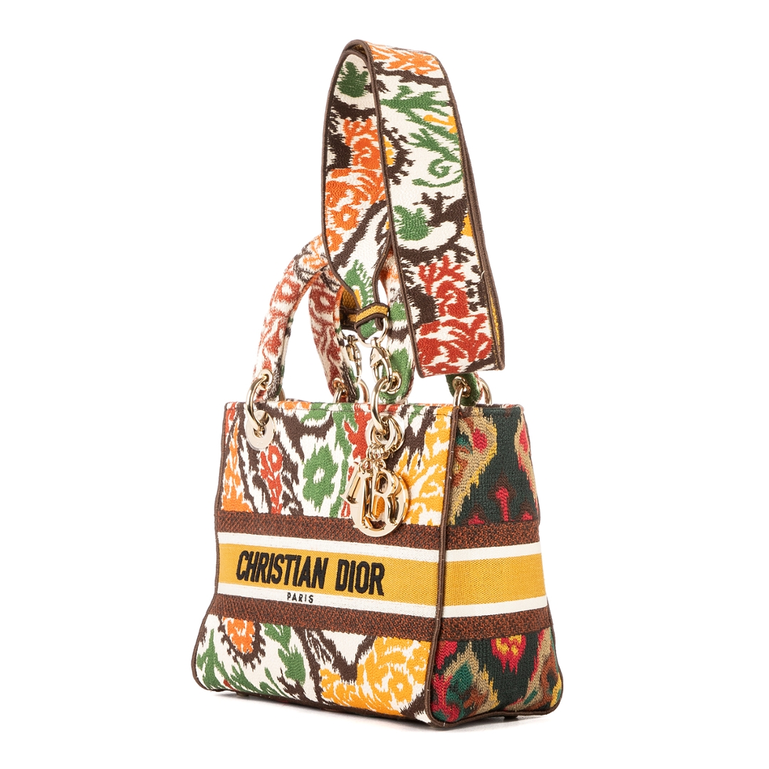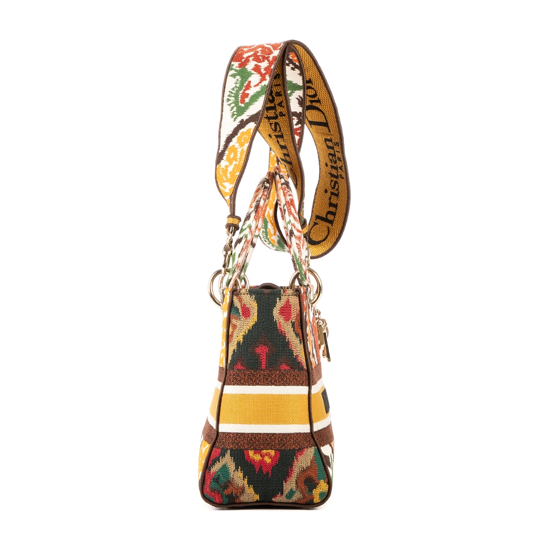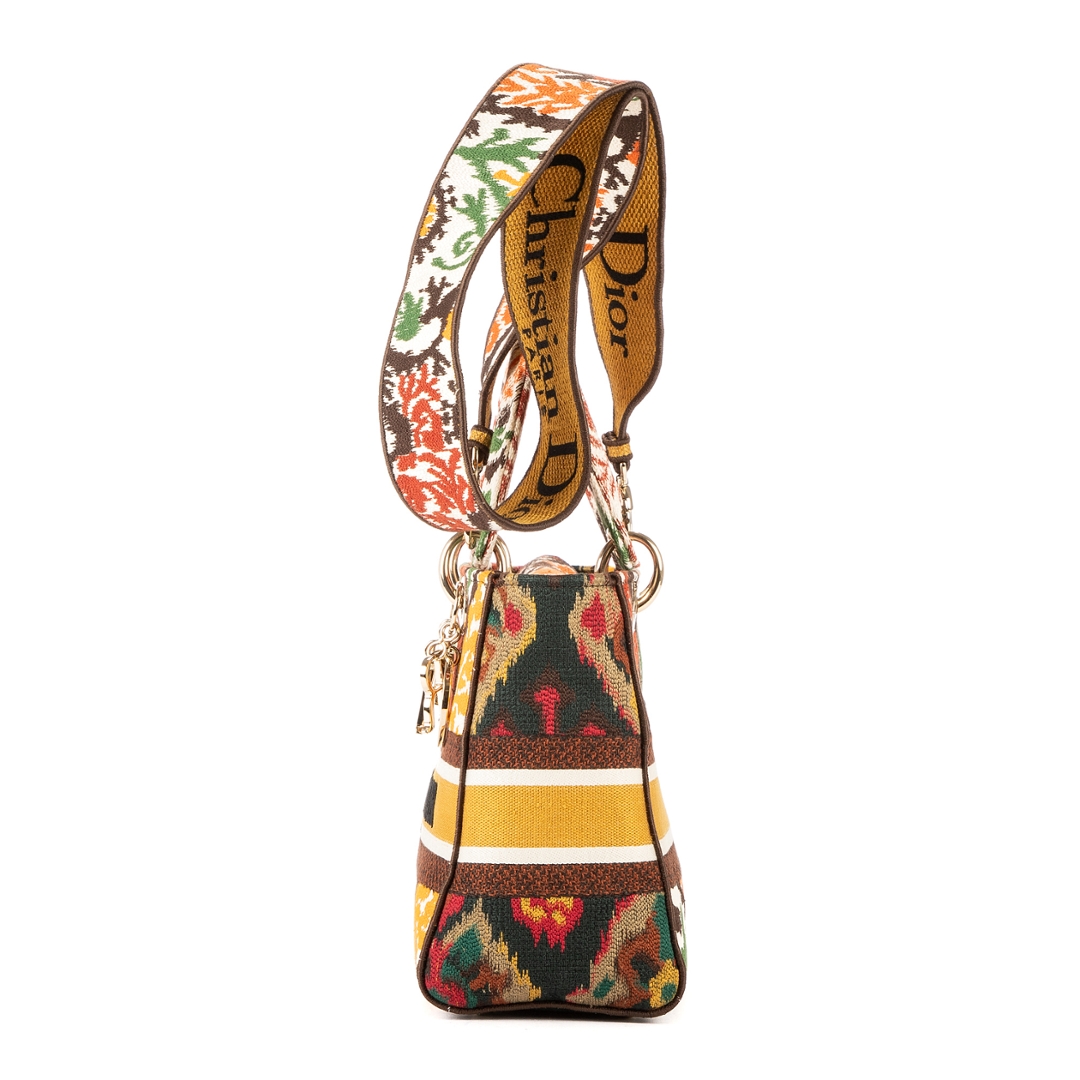 A vintage multicoloured canvas Dior Lady Dior Lite bag with a certificate of authenticity, Approximately 21cm height, 24cm width.
