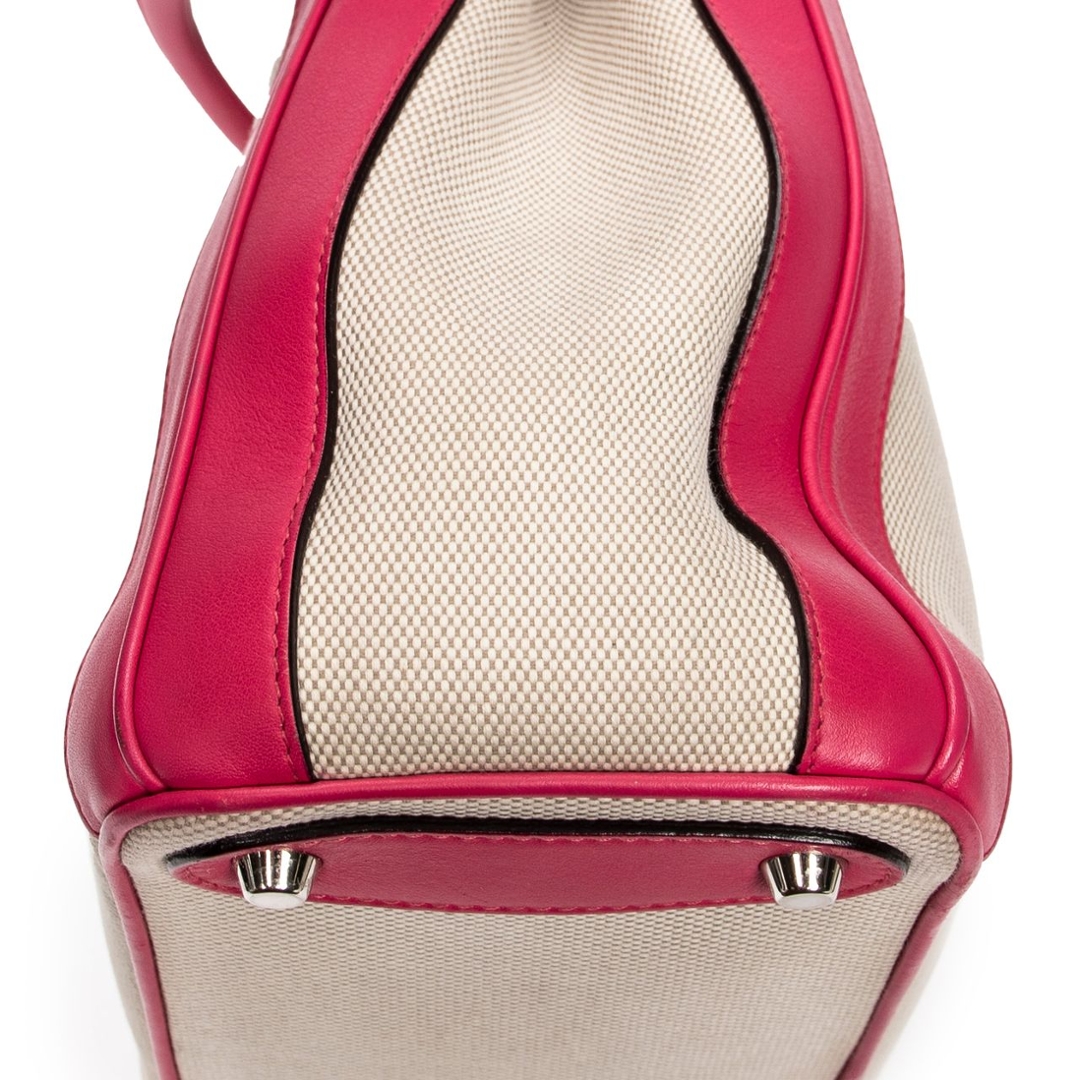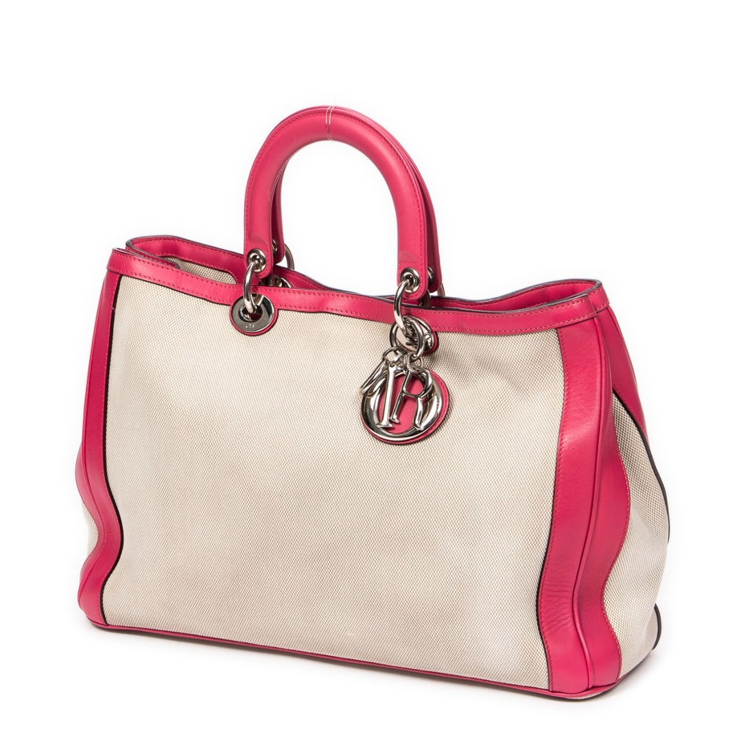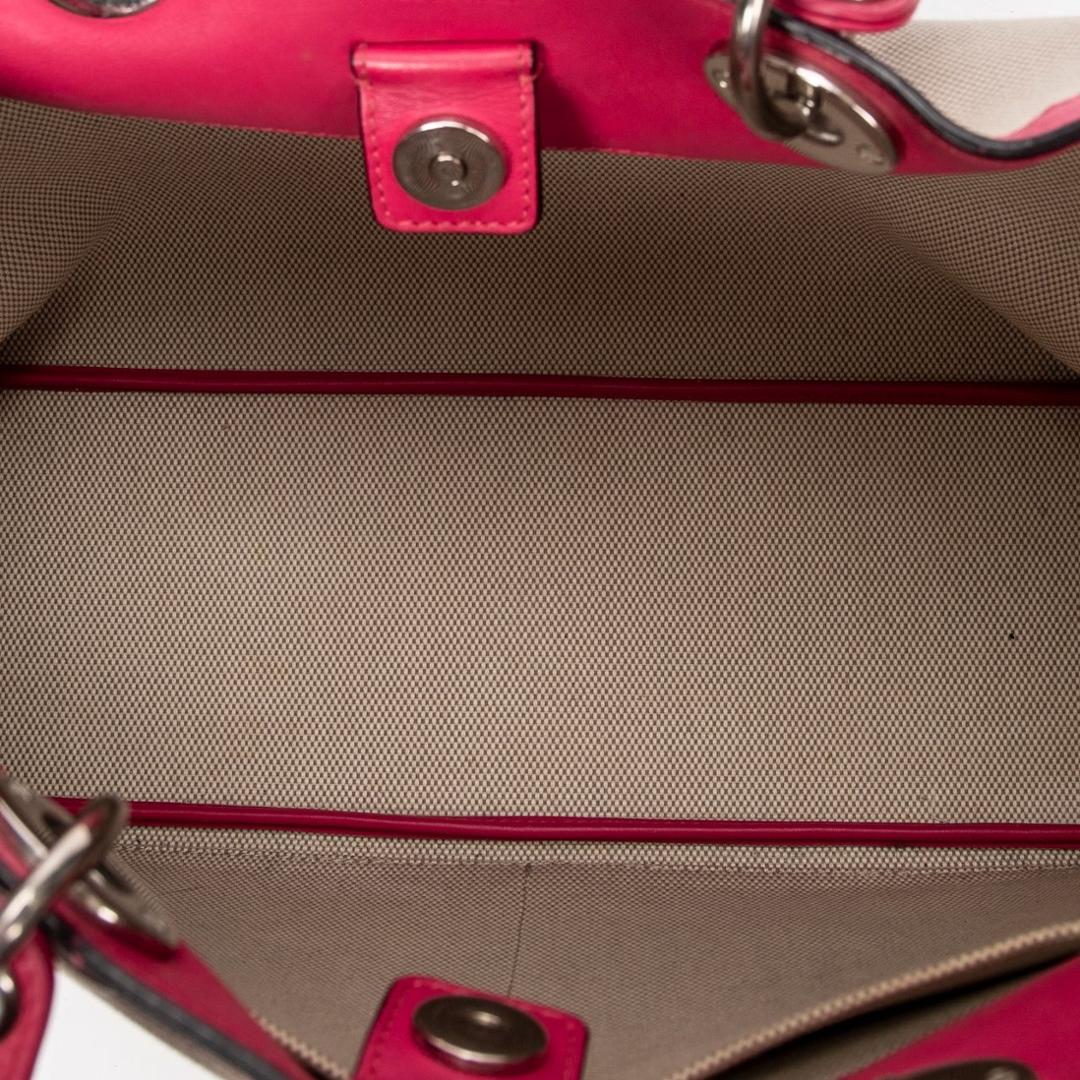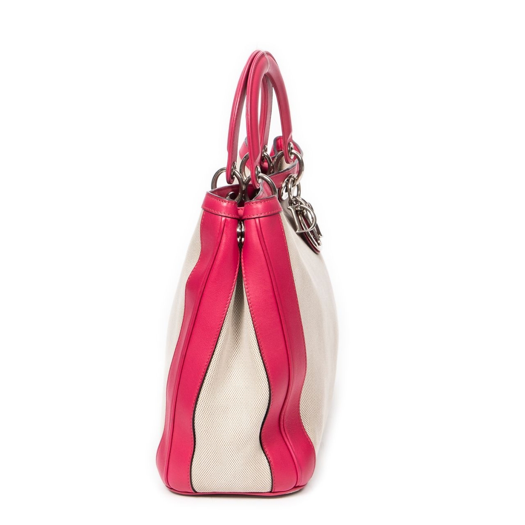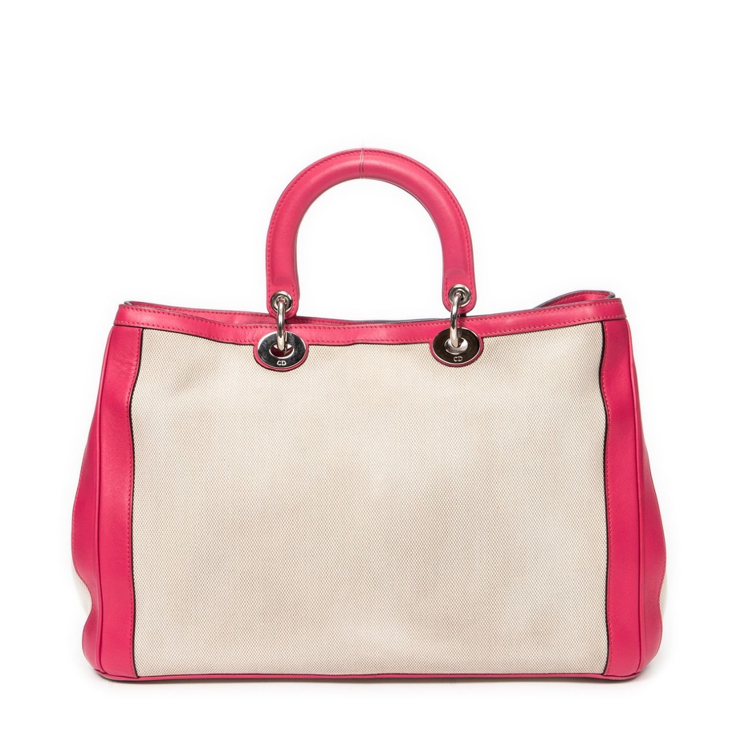 A vintage Beige/Fuchsia canvas Dior Large Diorissimo Tote bag with a certificate of authenticity, Approximately 26cm height, 38cm width.