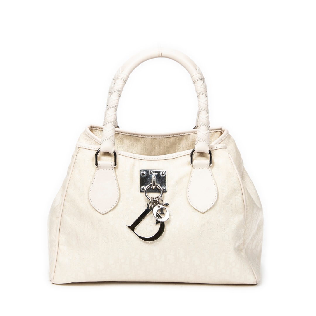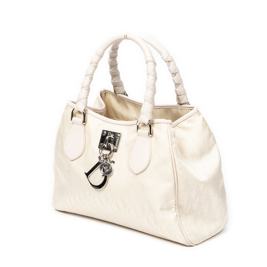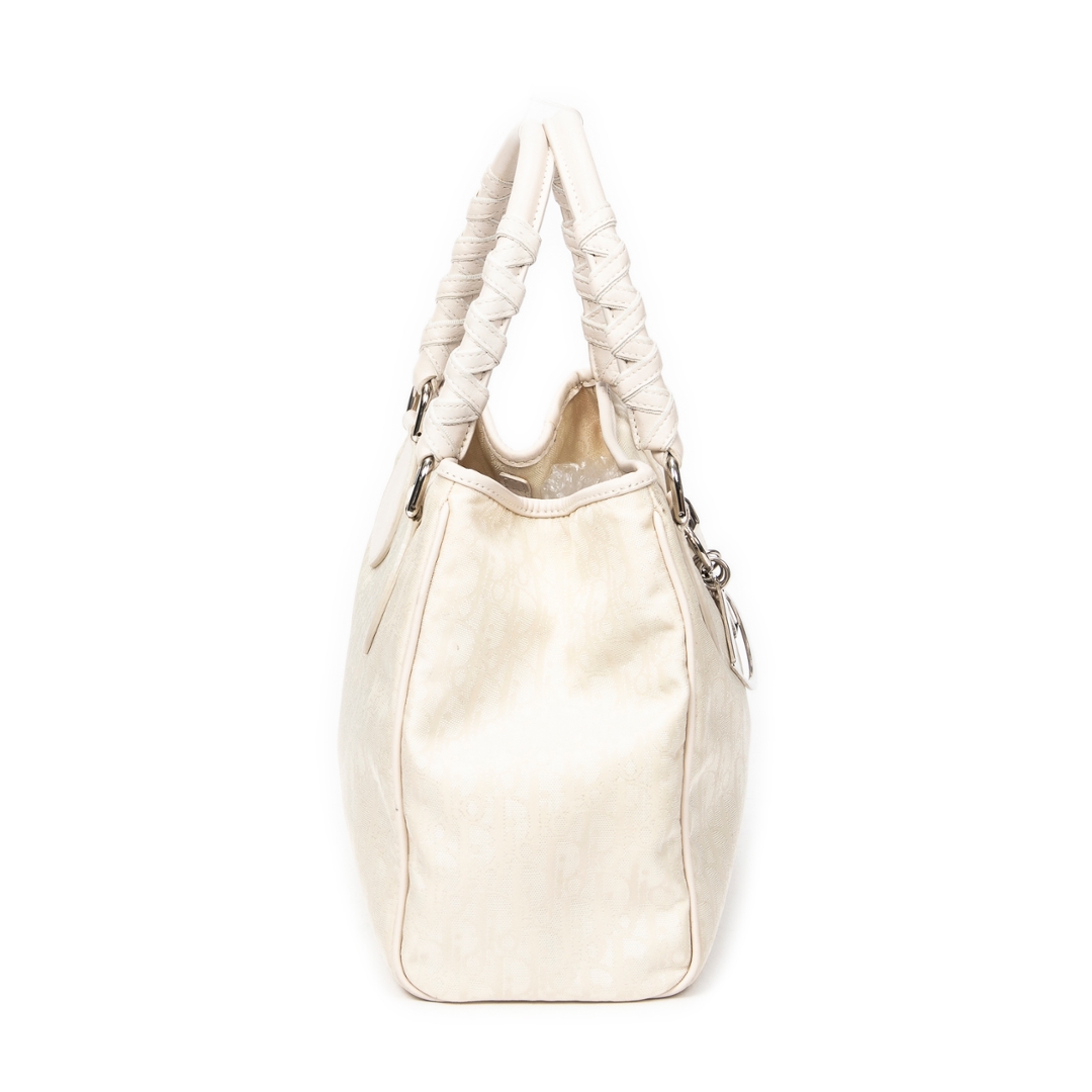 A vintage Dior ivory canvas Lovely Trotter Tote bag with a certificate of authenticity. Approximately 20cm height, 27cm width.