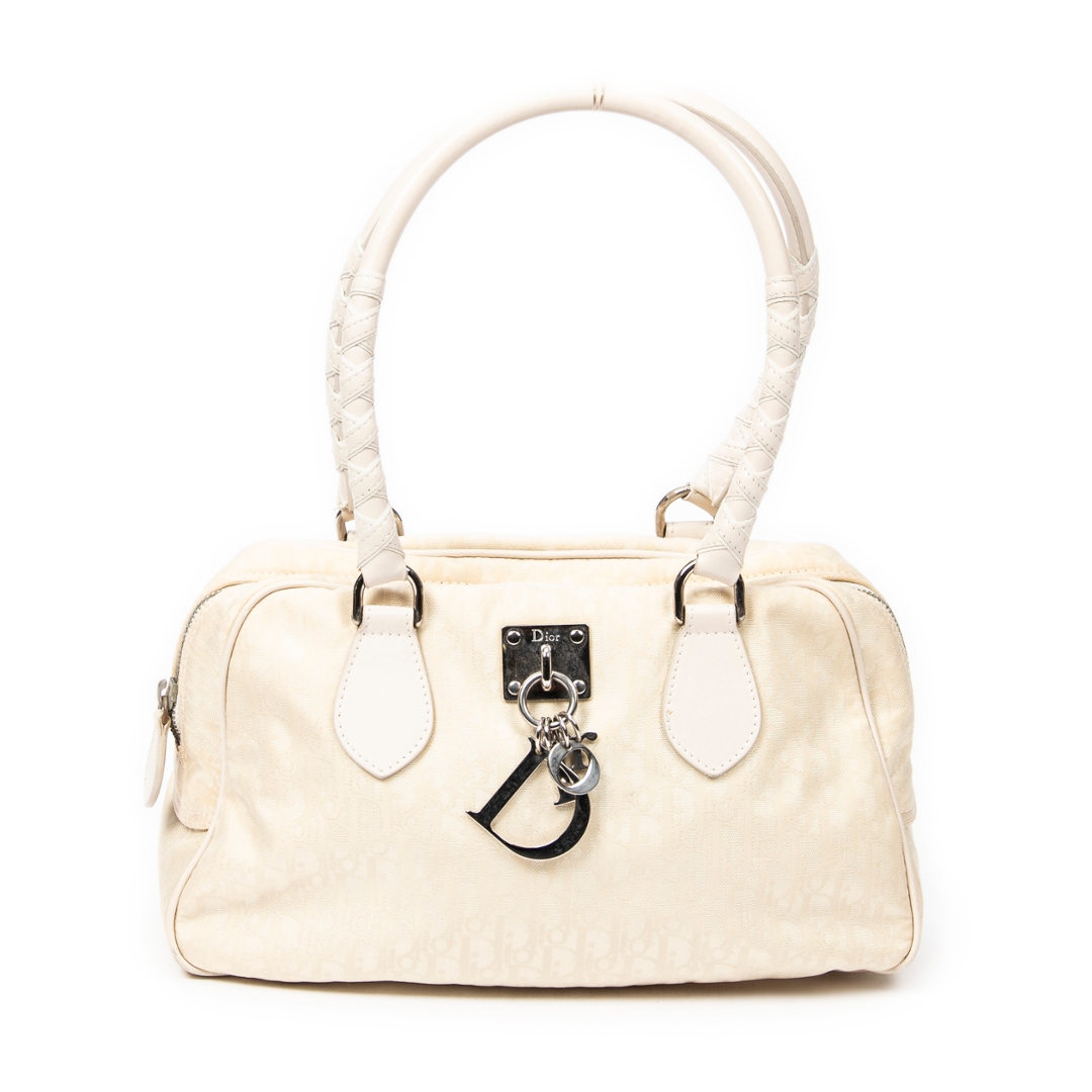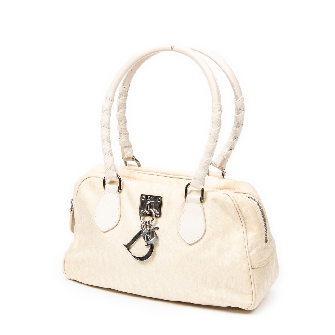 A vintage Dior ivory canvas Medium Lovely Tote bag with a certificate of authenticity. Approximately 20cm height, 30cm width.