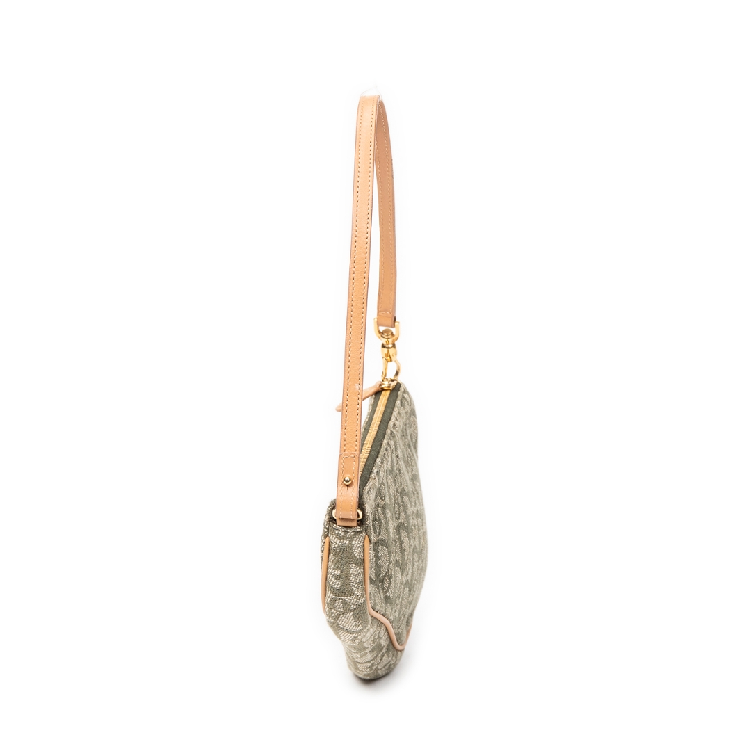 A vintage Dior green/beige canvas Mini Saddle Pochette bag with a certificate of authenticity. Approximately 16cm height, 20cm width.