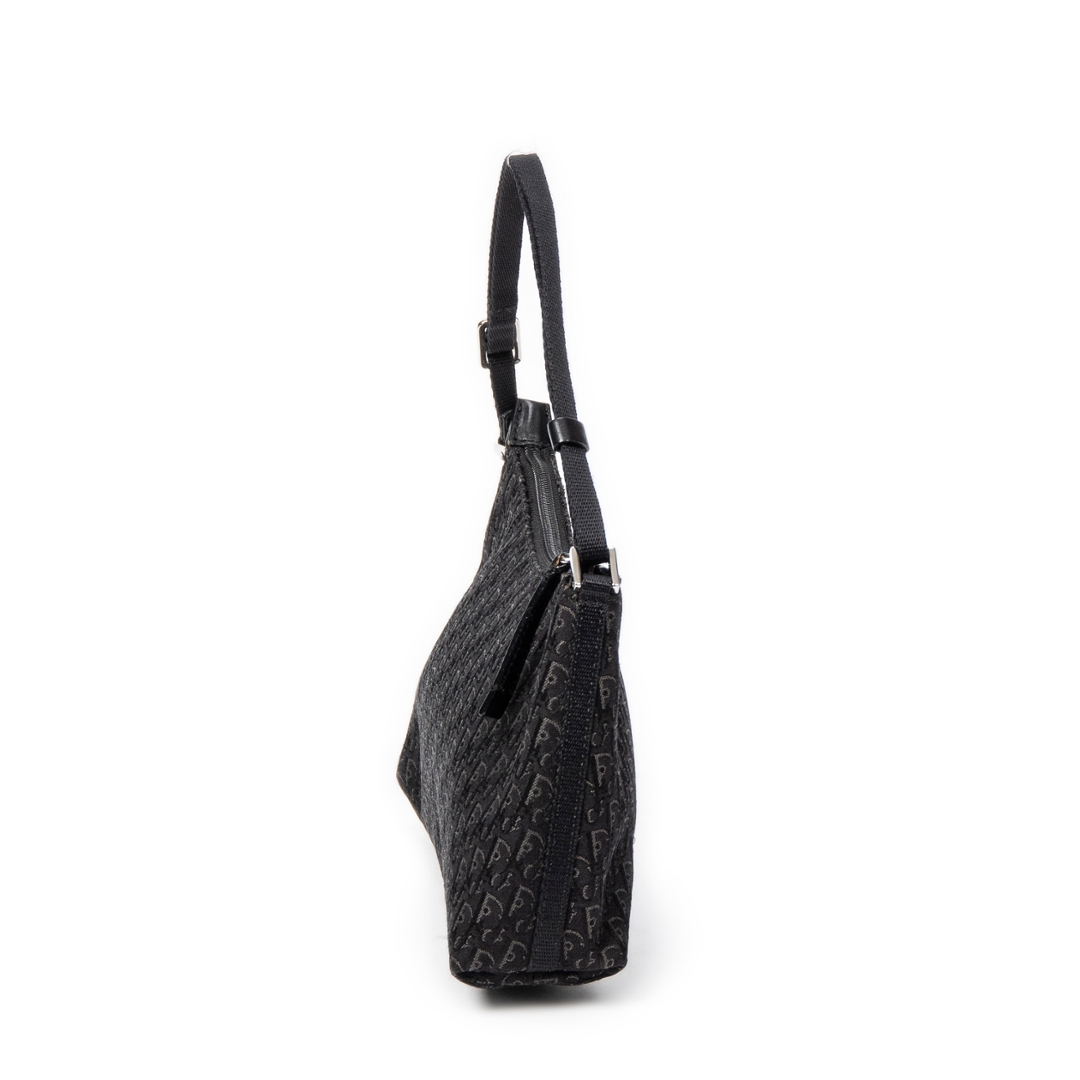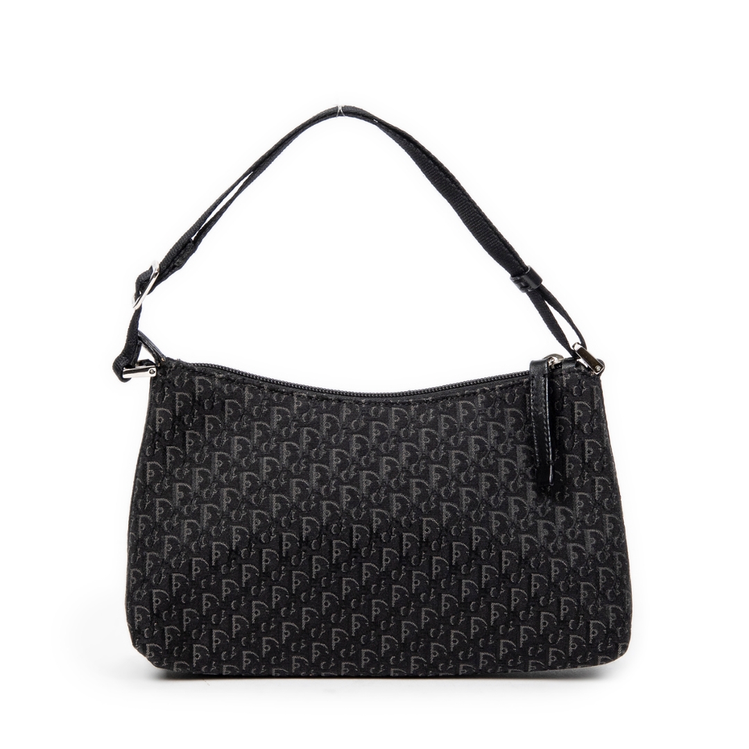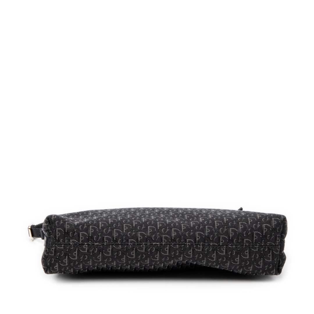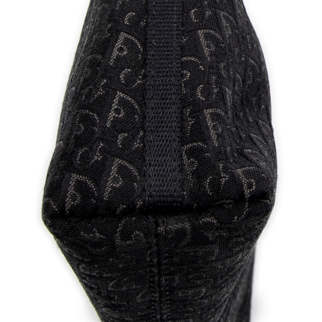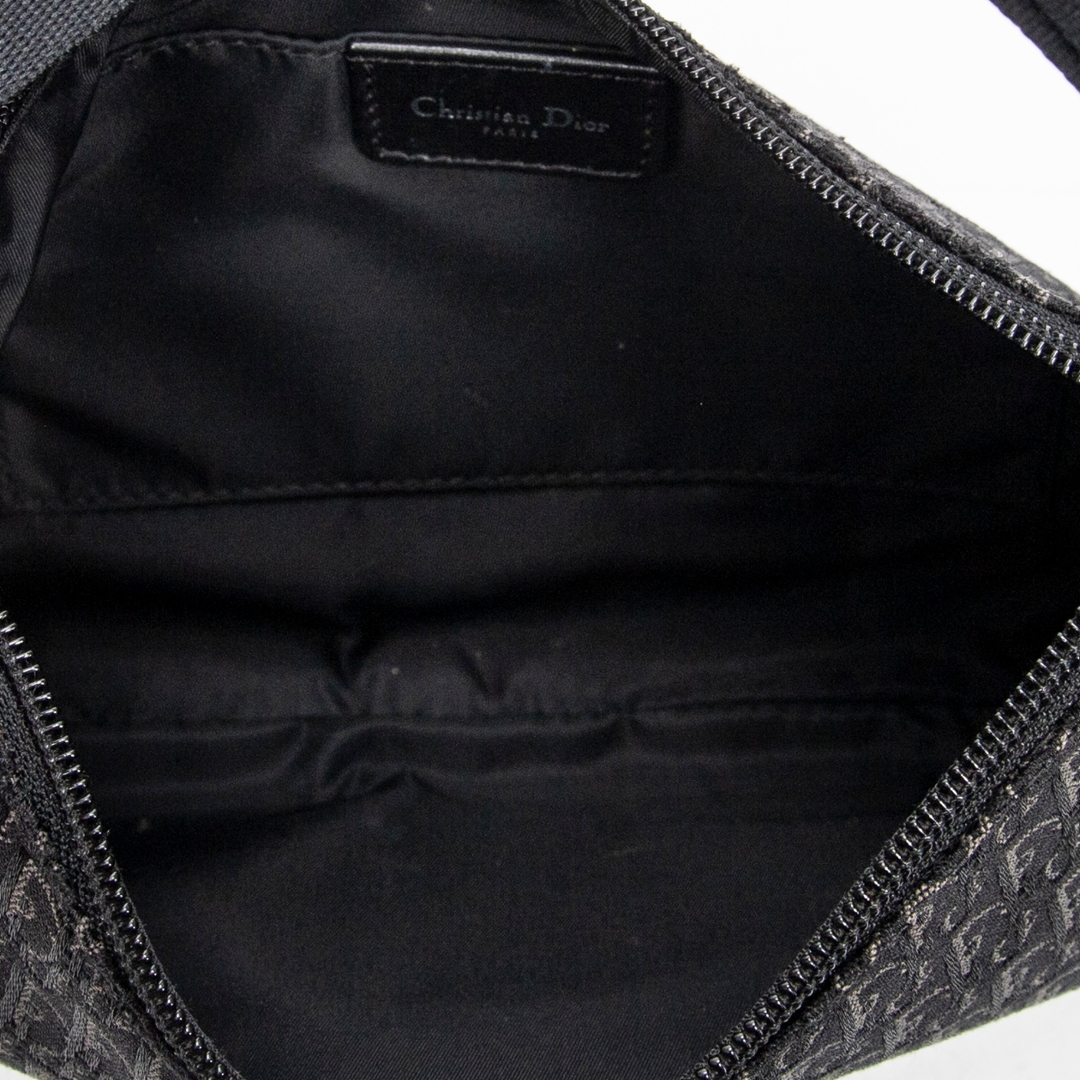 A vintage Dior black canvas Mini Trotter Pochette bag with a certificate of authenticity. Approximately 15cm height, 23cm width.