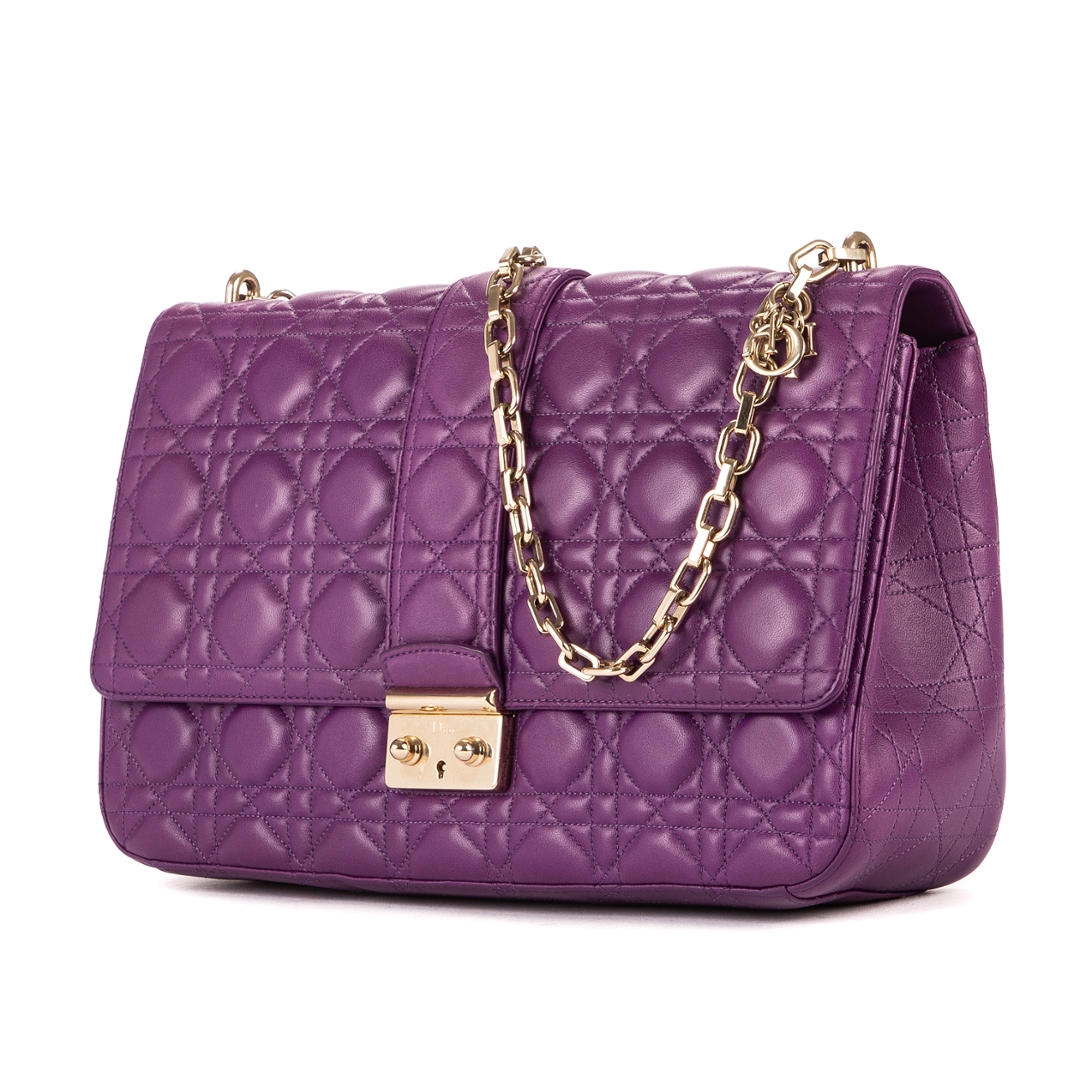 A vintage purple calf leather Dior Miss Dior bag with a certificate of authenticity, Approximately 21cm height, 31cm width.
