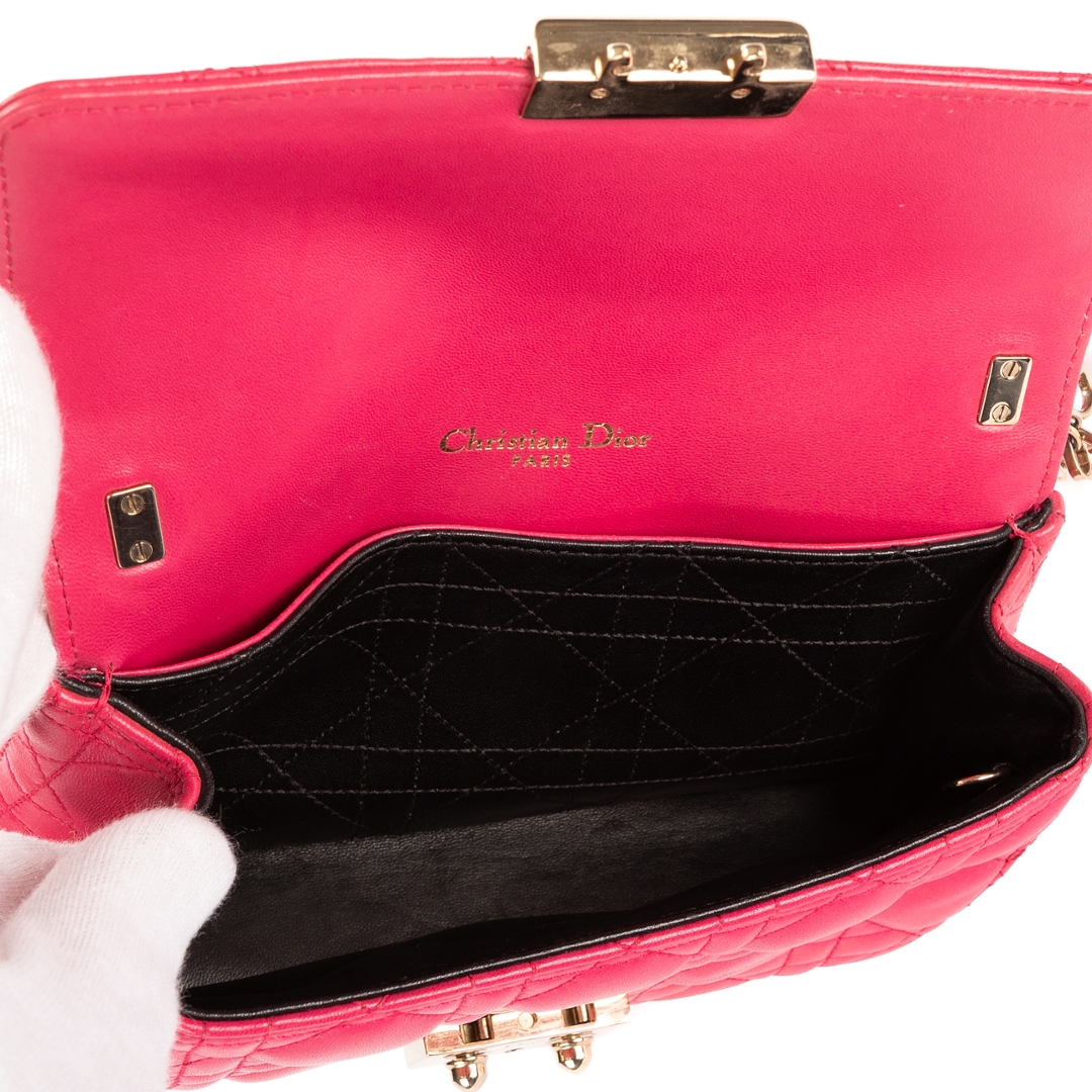 A vintage pink calf leather Dior Miss Doir bag with a certificate of authenticity, Approximately 11.5cm height, 19cm width.