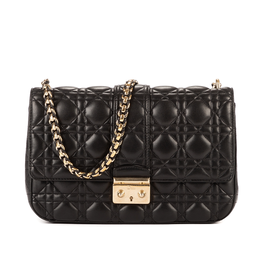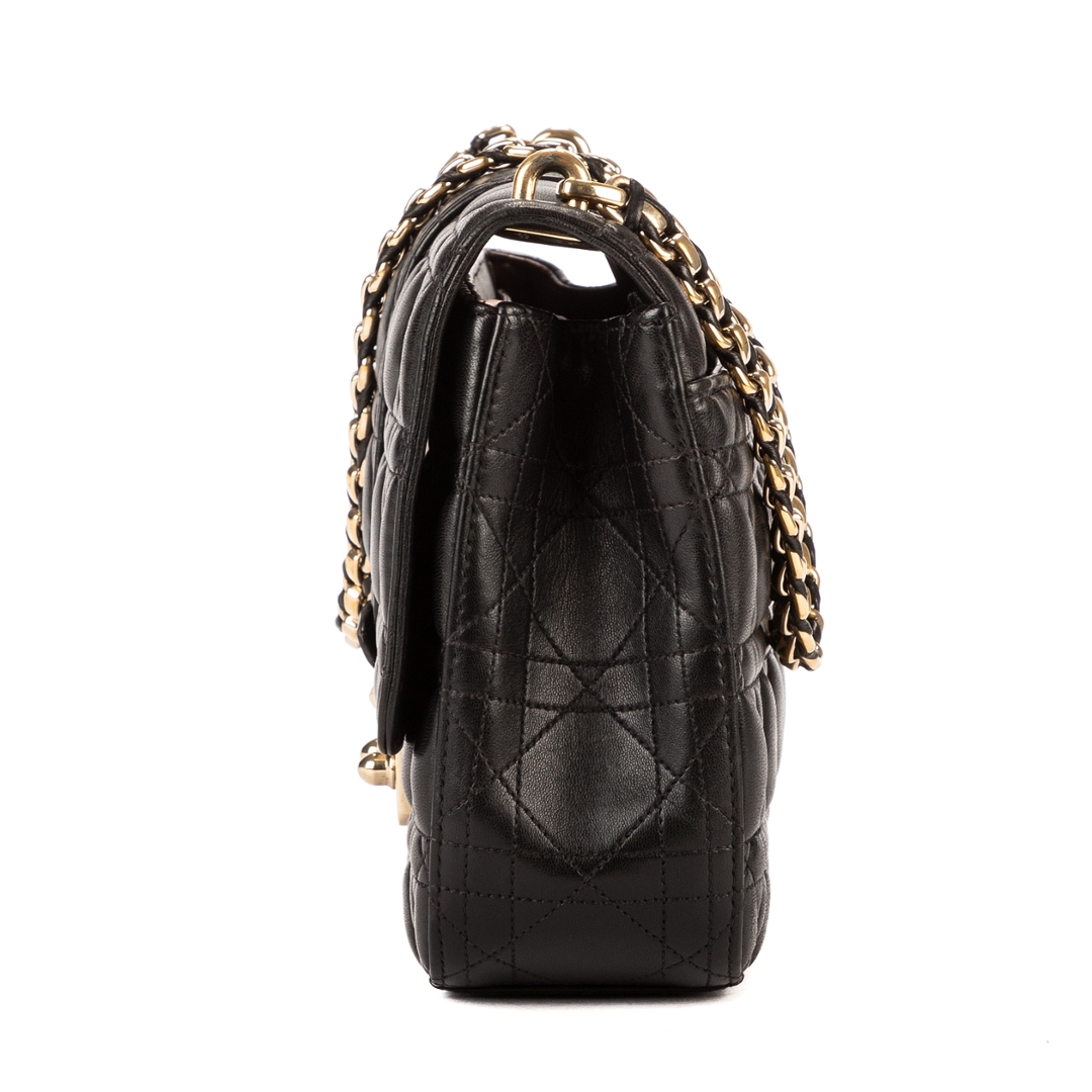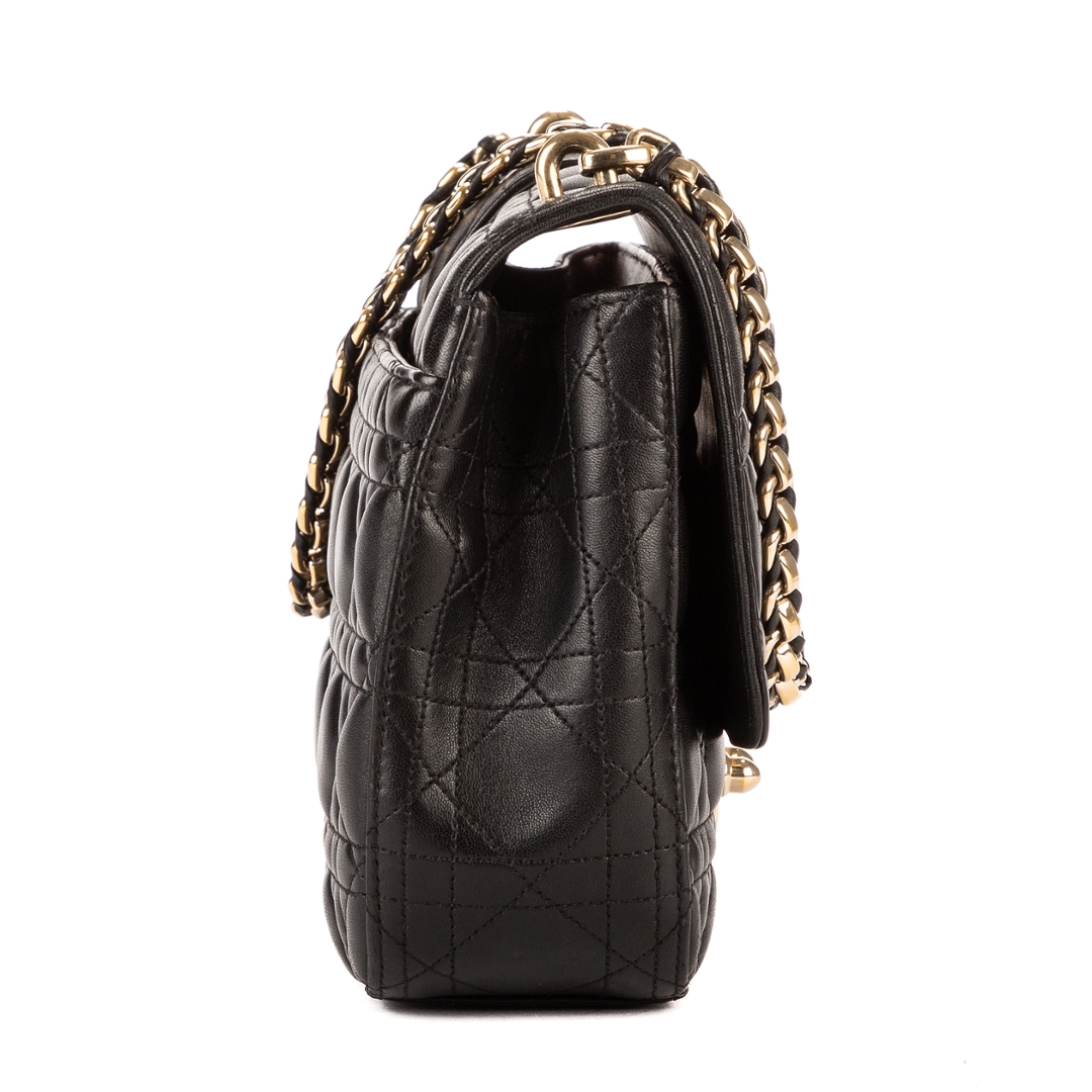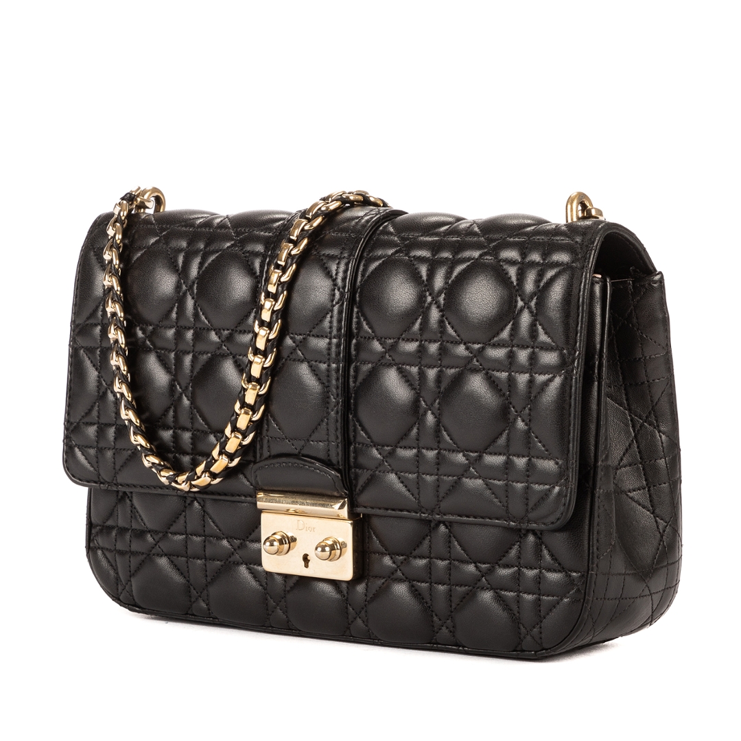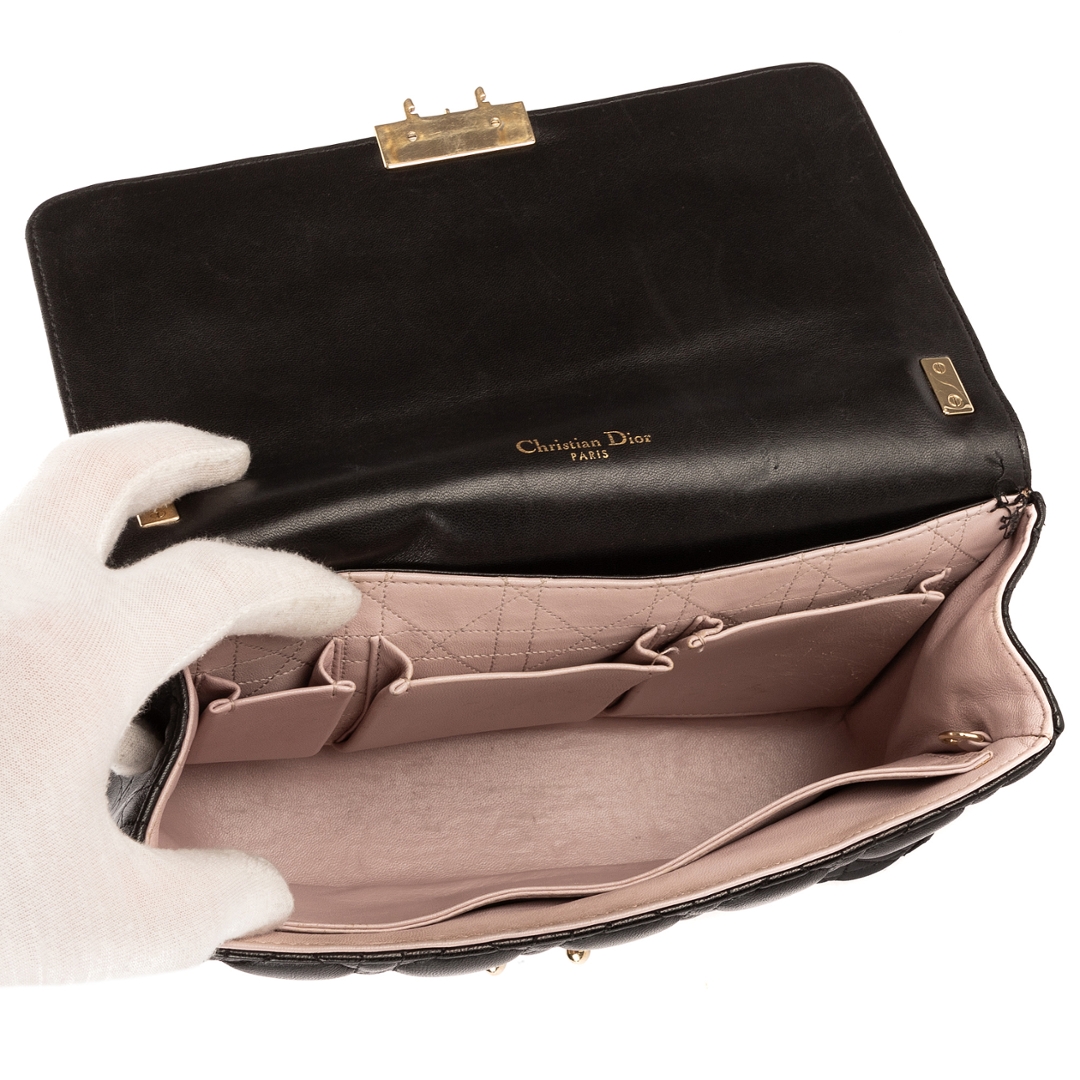 A vintage Dior Miss Dior Promenade Medium Black Cannaged Leather bag with a certificate of authenticity, Approximately 18cm height, 25cm width.