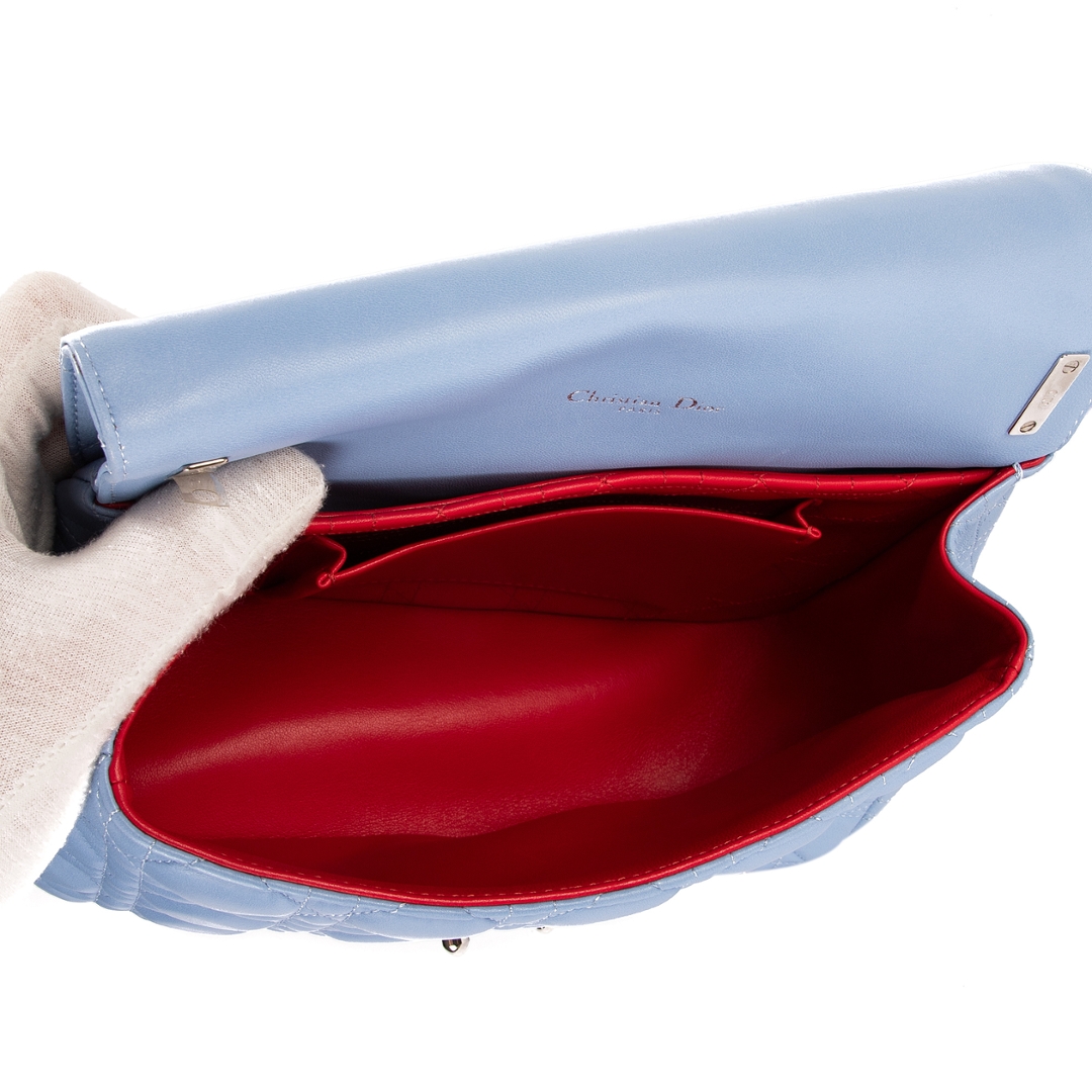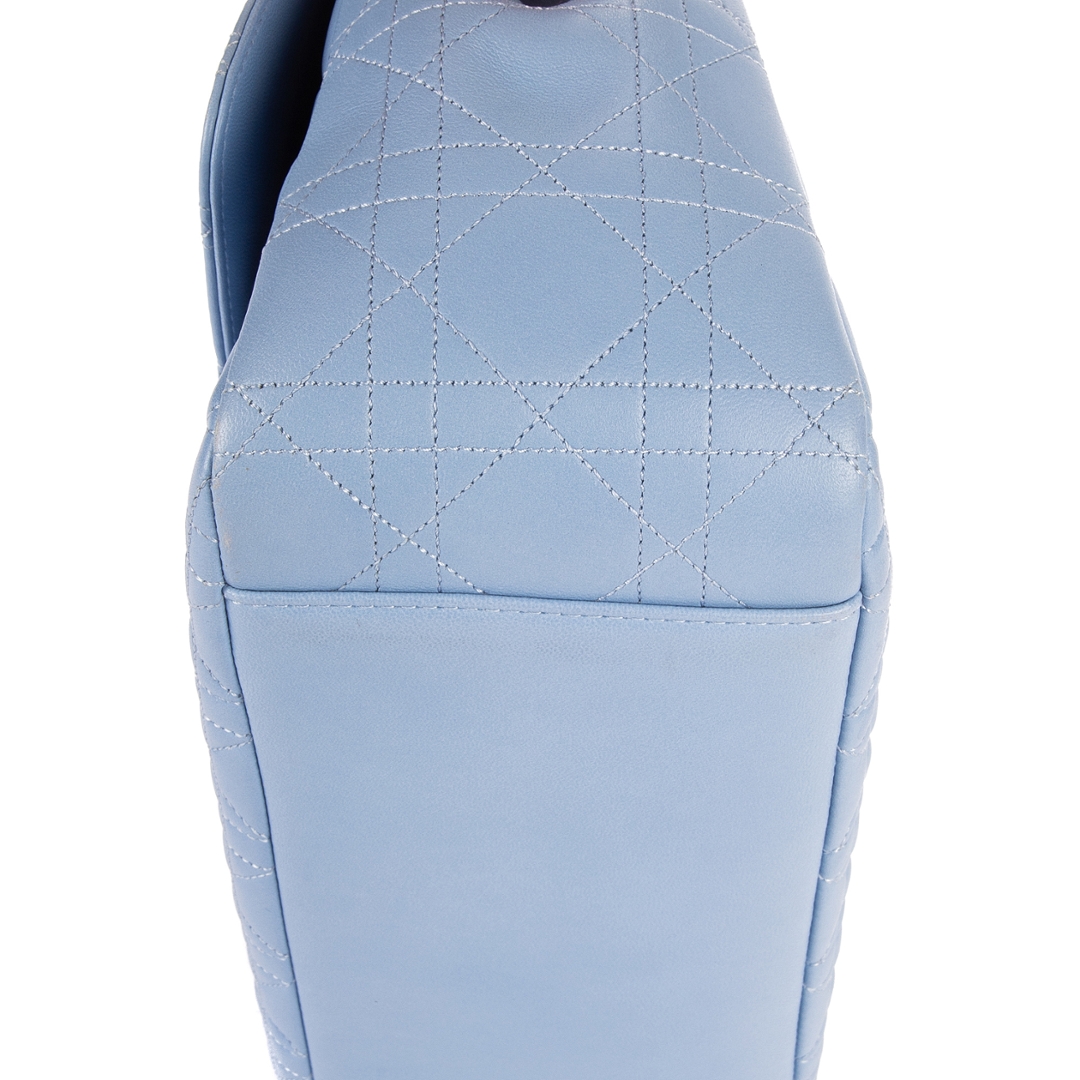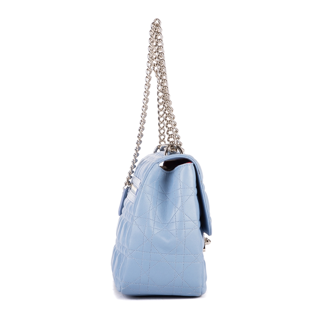 A vintage Dior Miss Dior Wallet on Chain bag in light blue Cannage leather, featuring silver hardware, for those who value elegance with a contemporary touch. The Miss Dior Wallet on Chain is a refined design, celebrated for its versatility and signature detailing. Crafted in supple light blue leather with Dior’s iconic Cannage quilting, it is complemented by polished silver-tone hardware, creating a fresh and modern look while retaining the maison’s timeless sophistication.