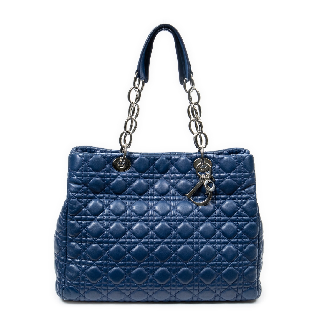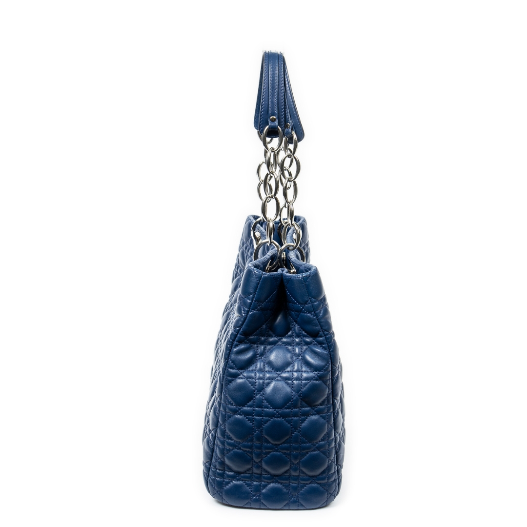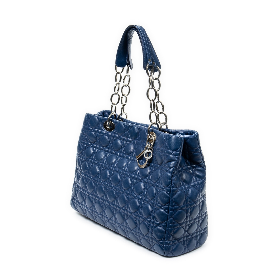 A vintage dark blue calf leather Dior Soft Shopping Tote bag with a certificate of authenticity, Approximately 27cm height, 35cm width.
