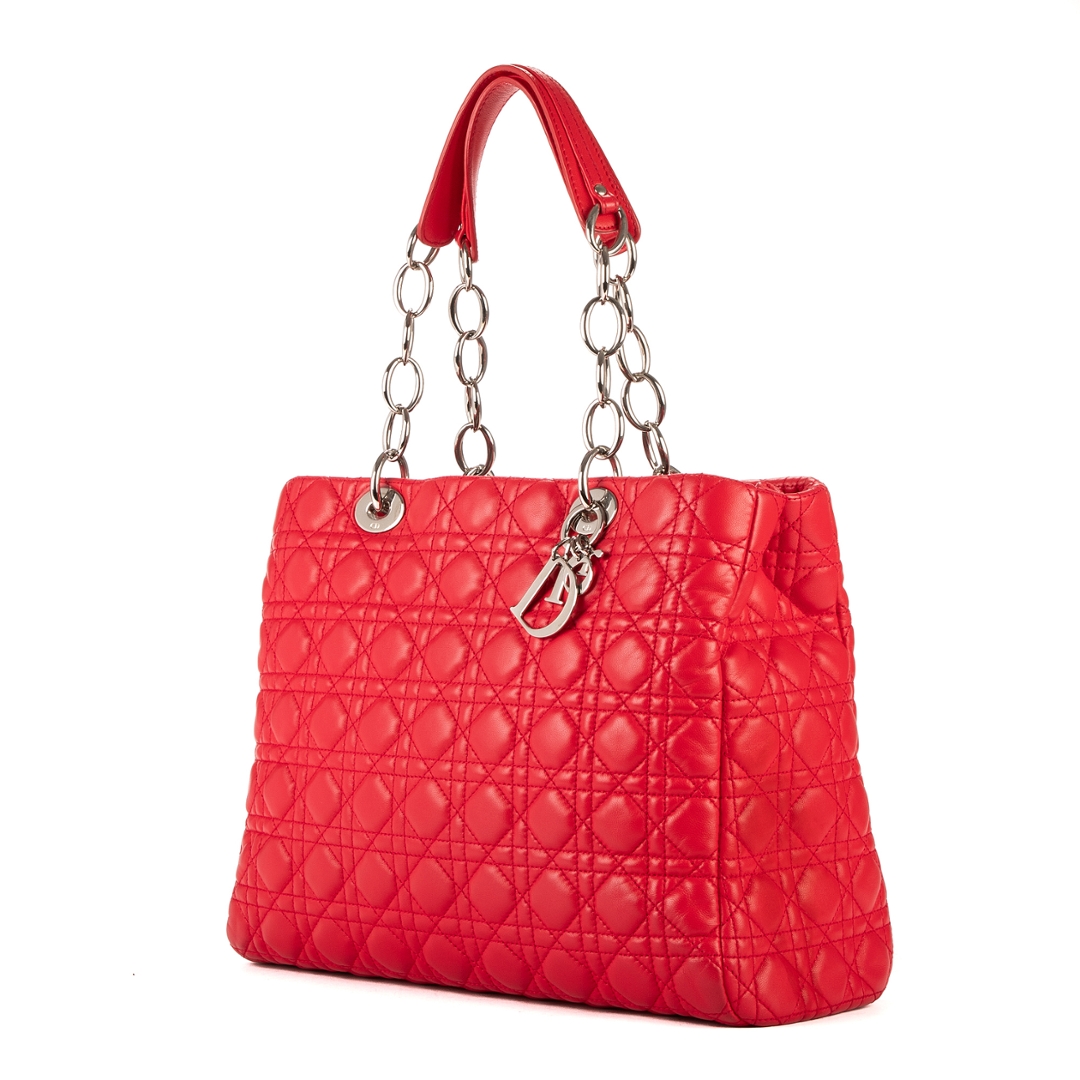 A vintage red calf leather Dior Soft Tote bag with a certificate of authenticity, Approximately 26cm height, 36cm width.