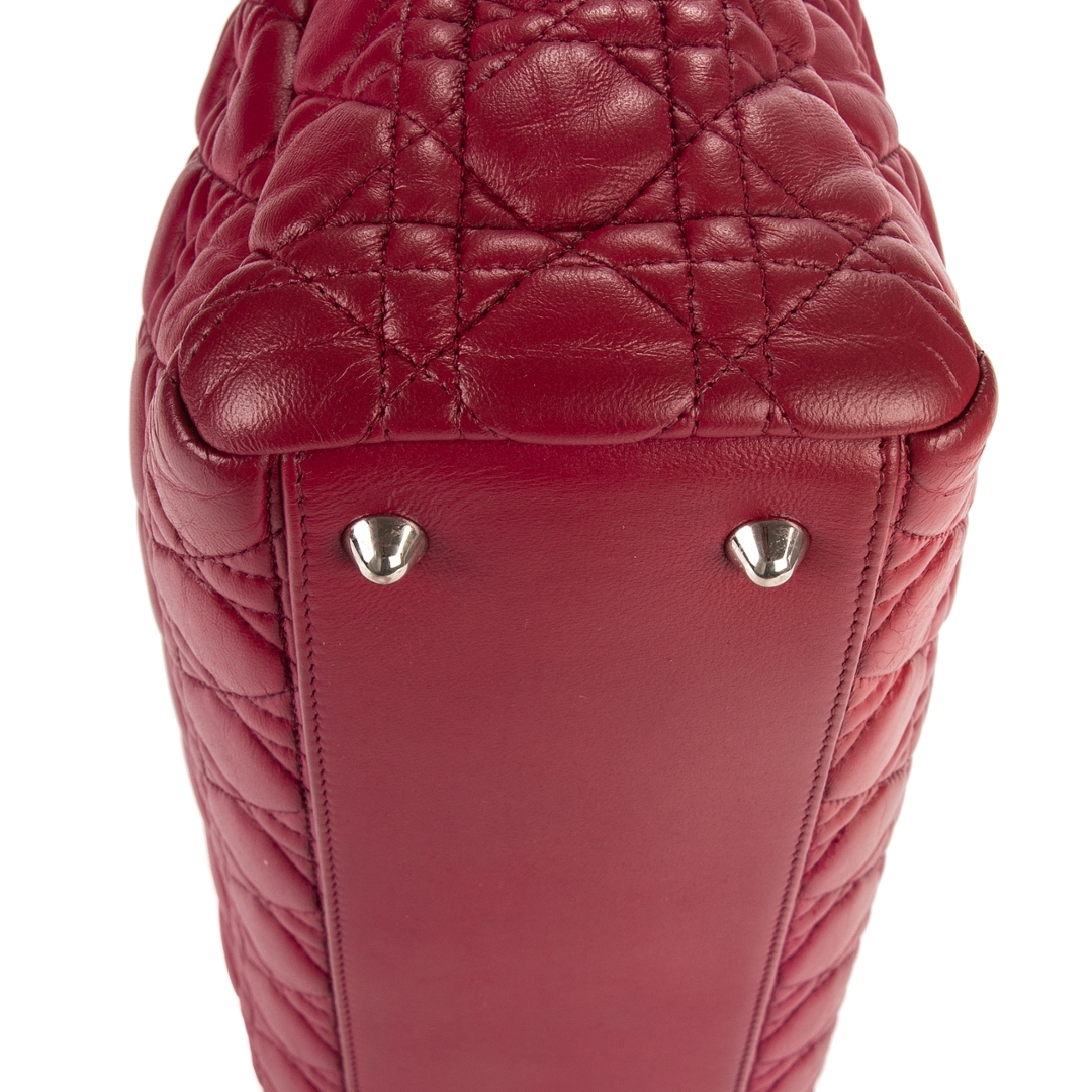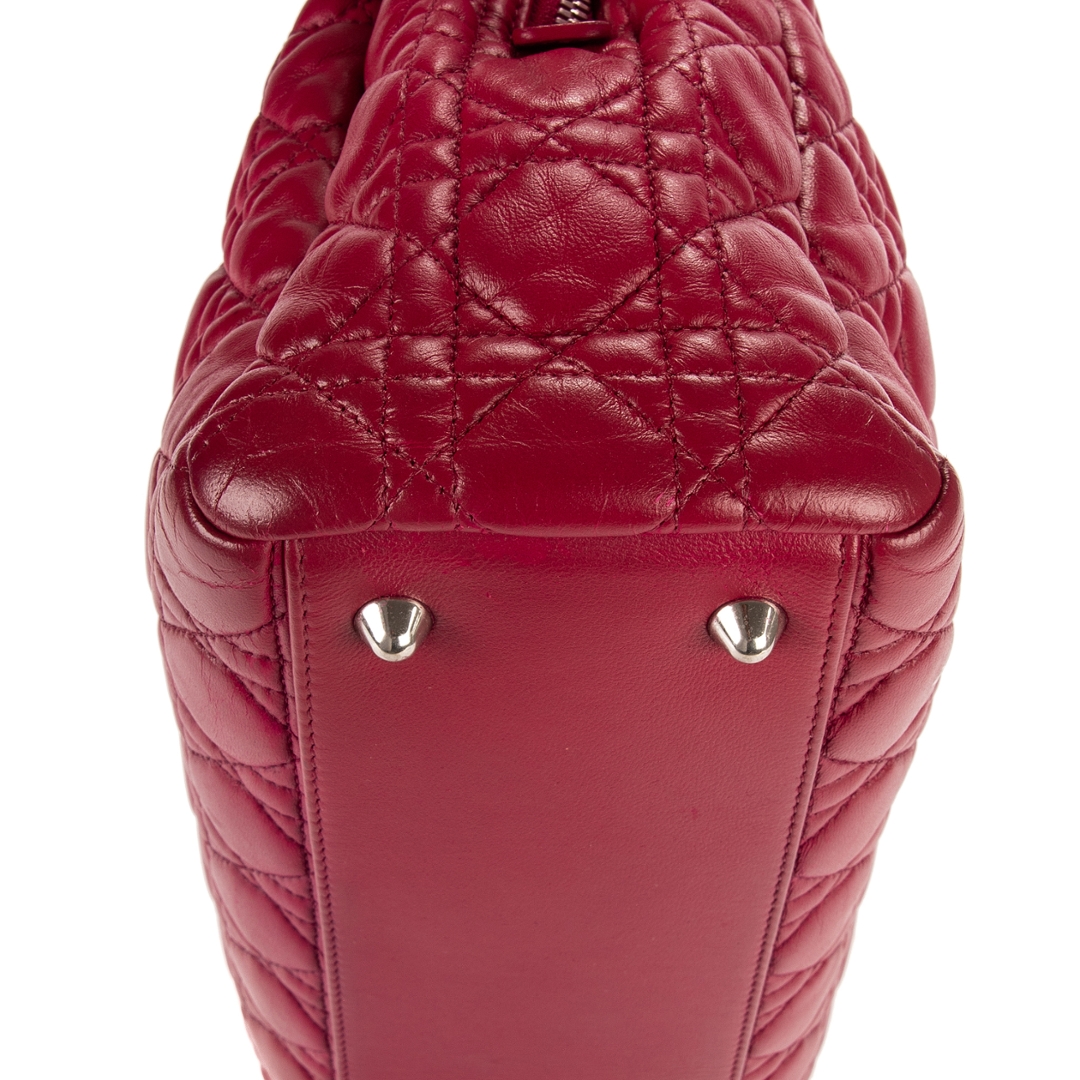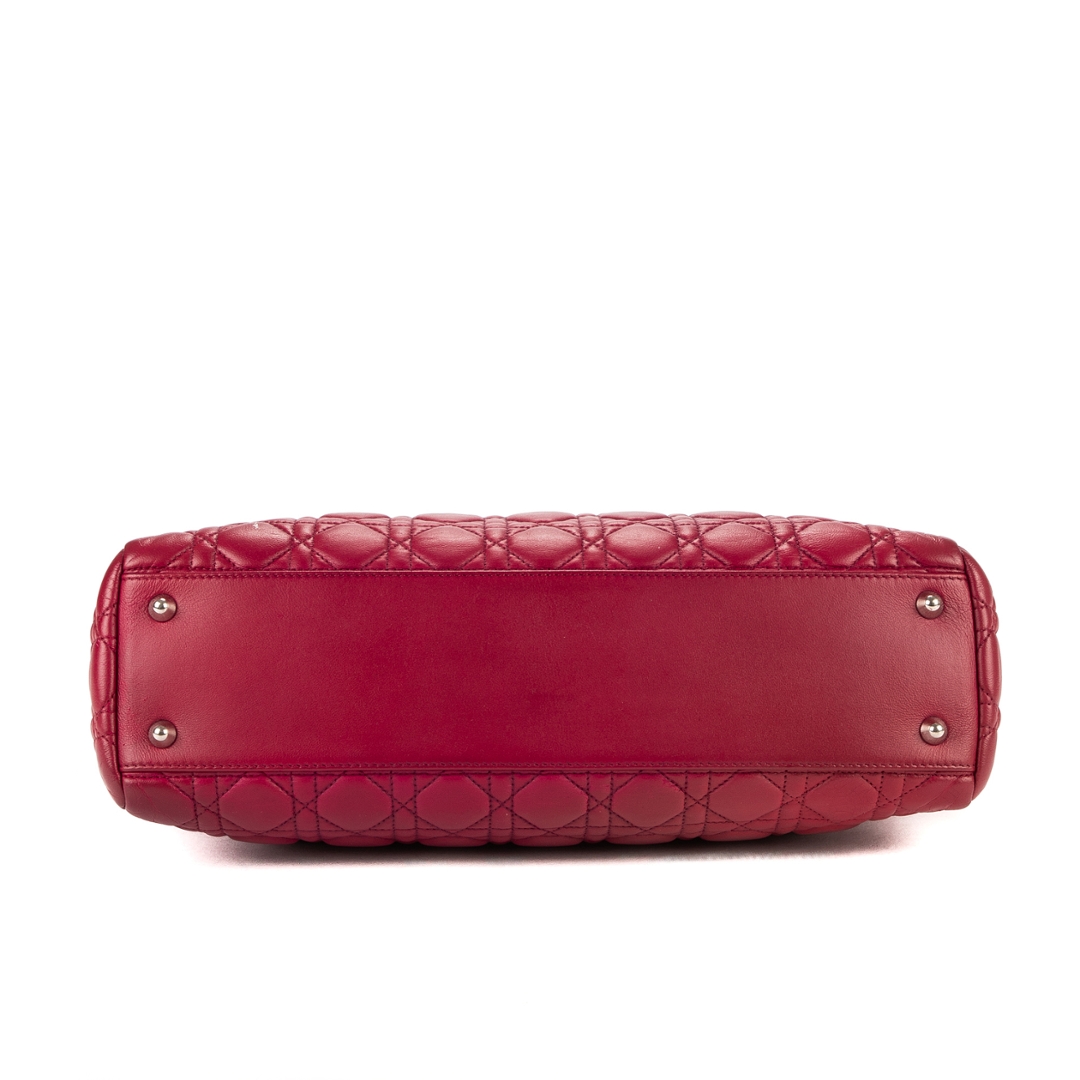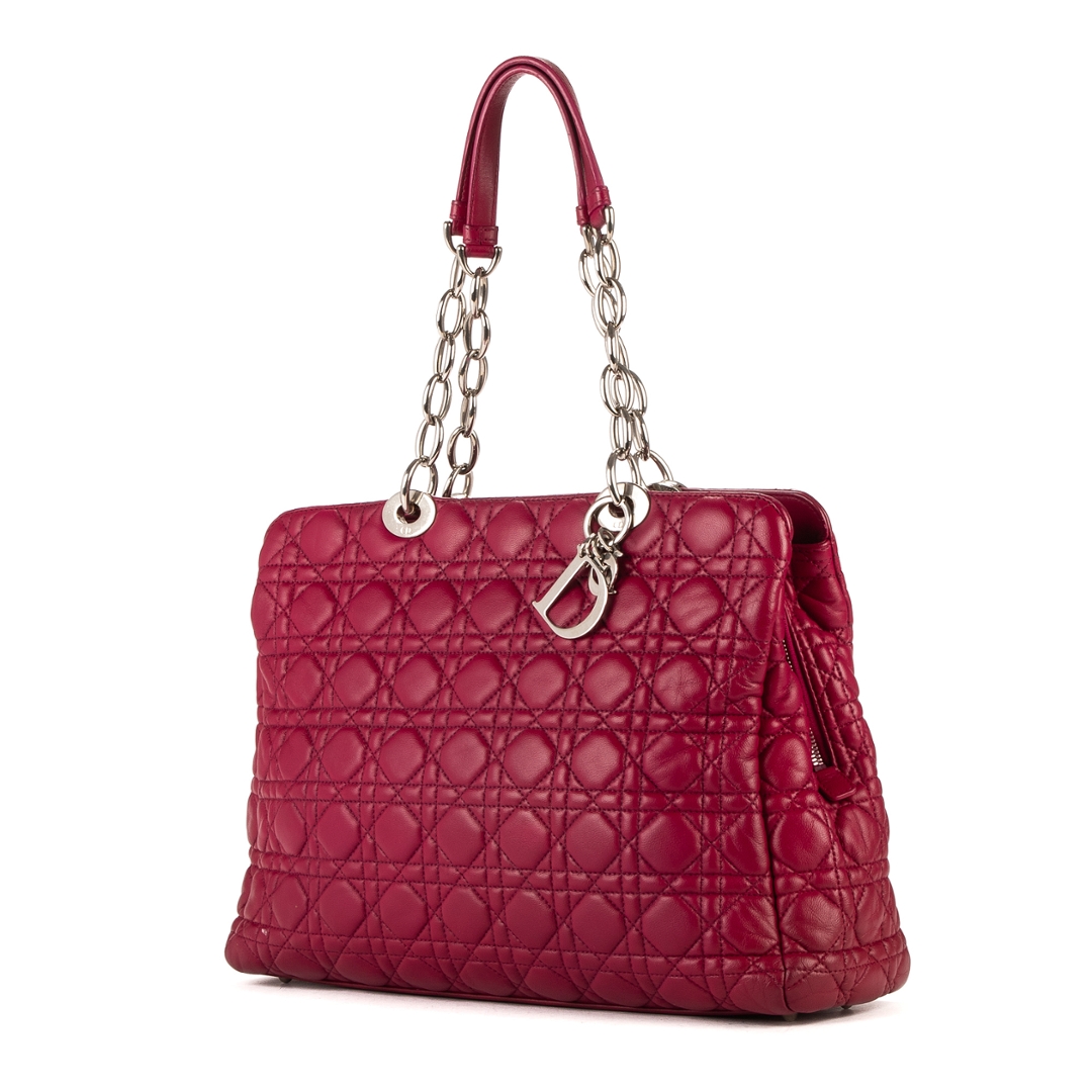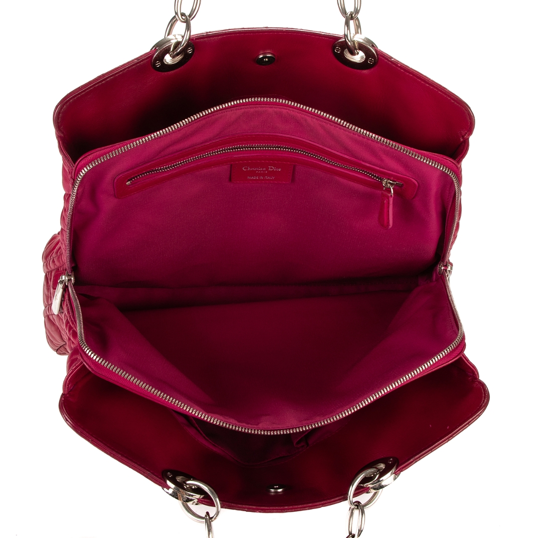 A vintage Dior Soft Tote Purple Cannaged Leather bag with a certificate of authenticity, Approximately 26cm height, 36cm width.