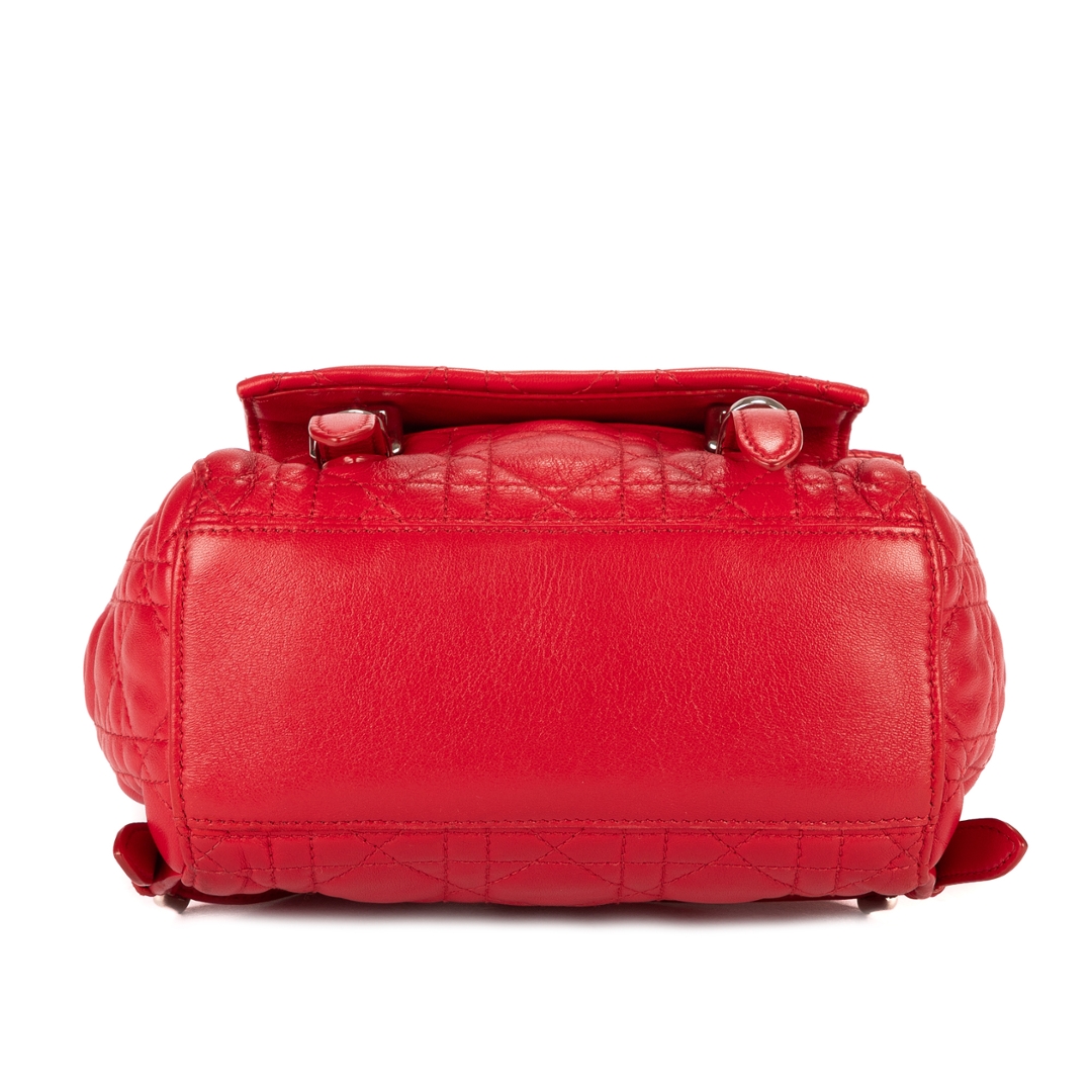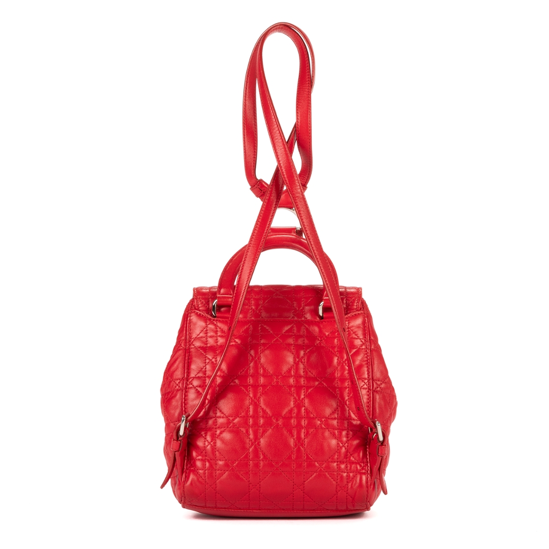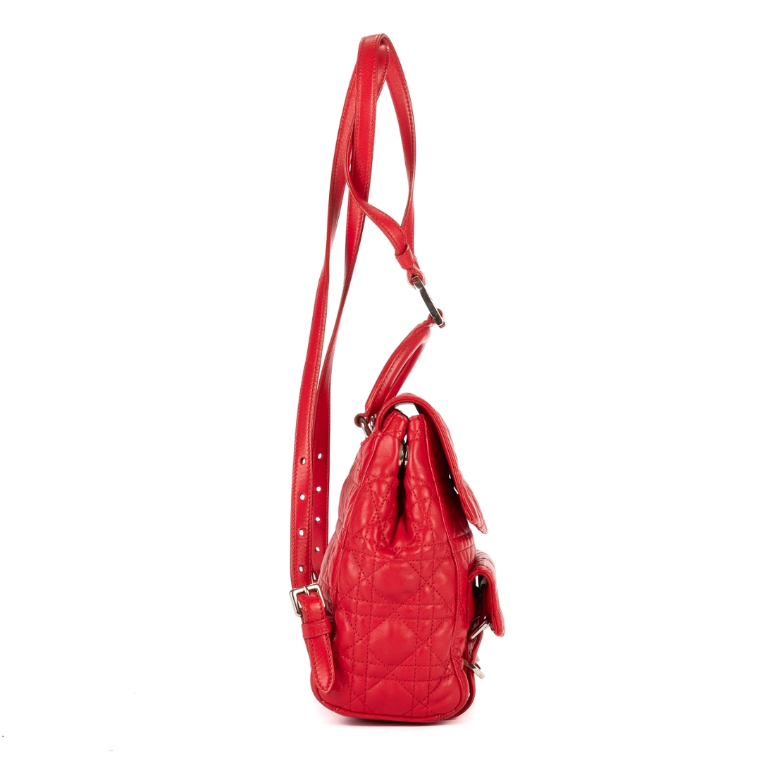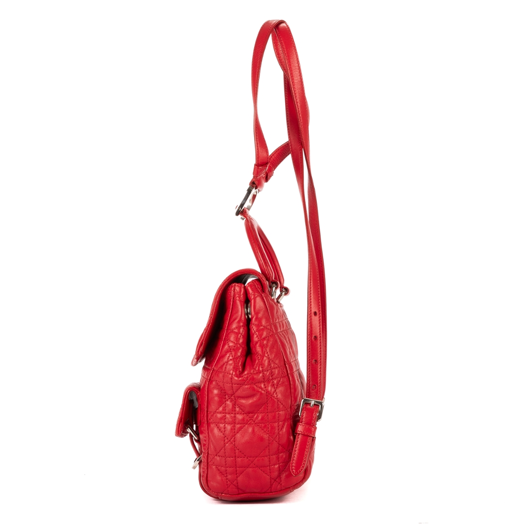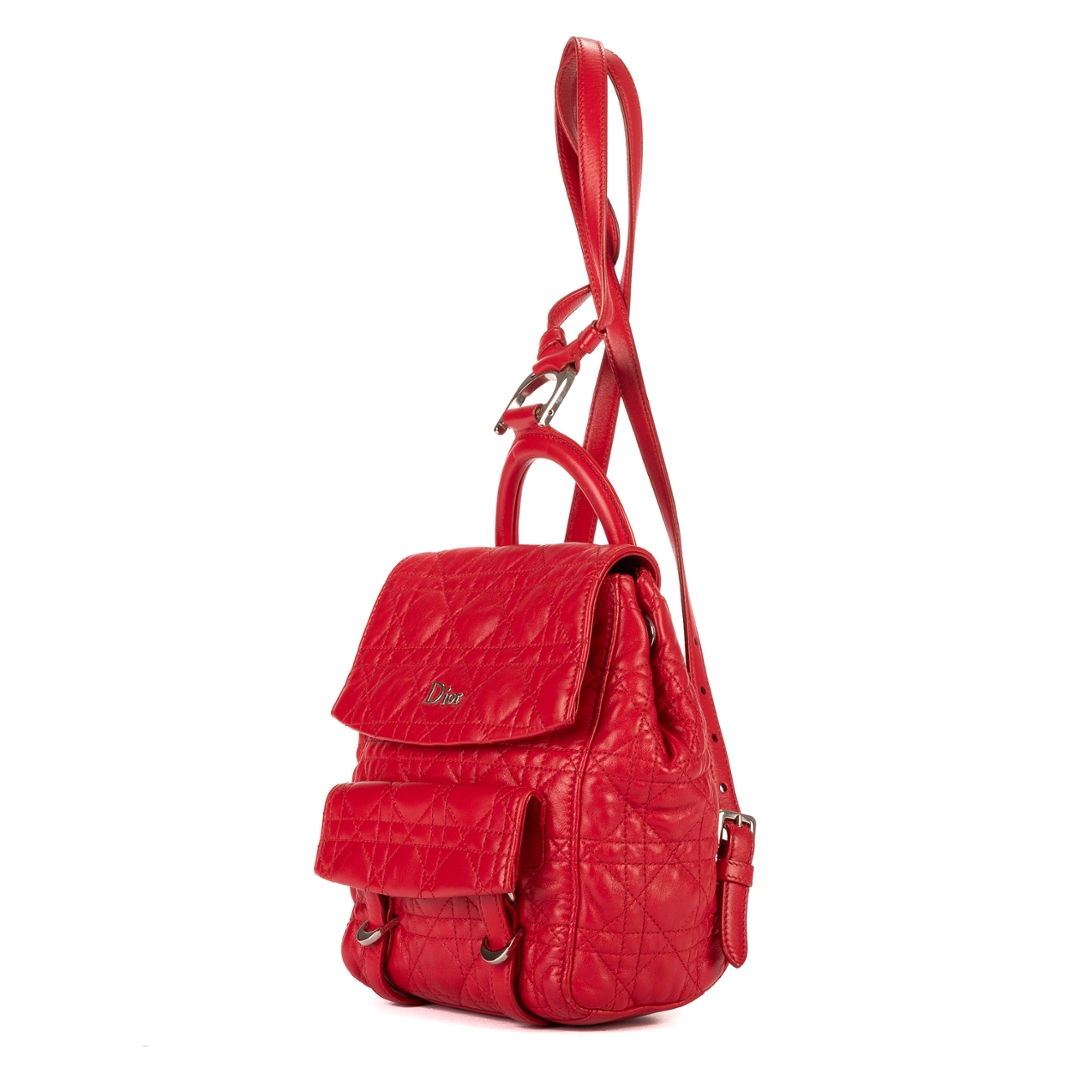 A vintage Dior red calf leather Stardust Backpack with a certificate of authenticity, Approximately 23cm height, 18cm width.