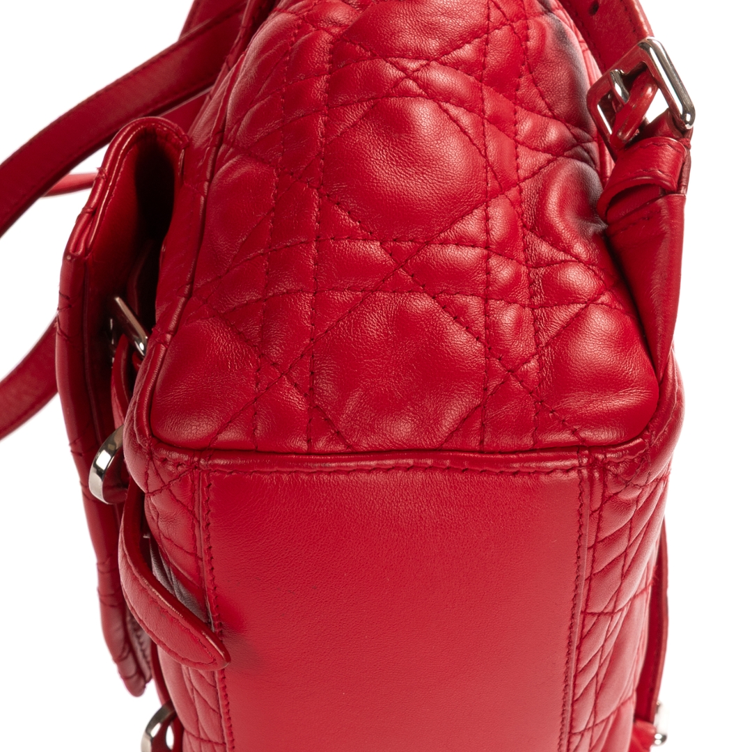 A vintage red calf leather Dior Stardust Backpack with a certificate of authenticity, Approximately 23cm height, 18cm width.
