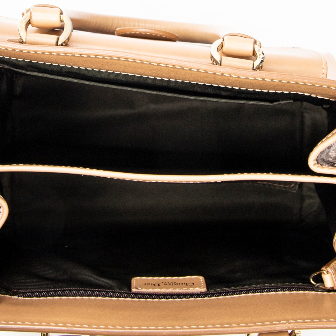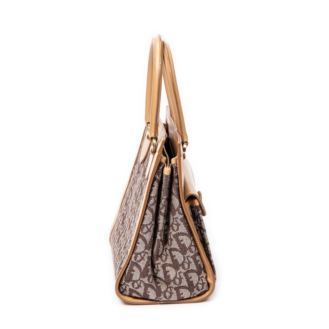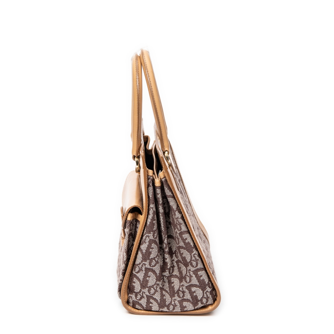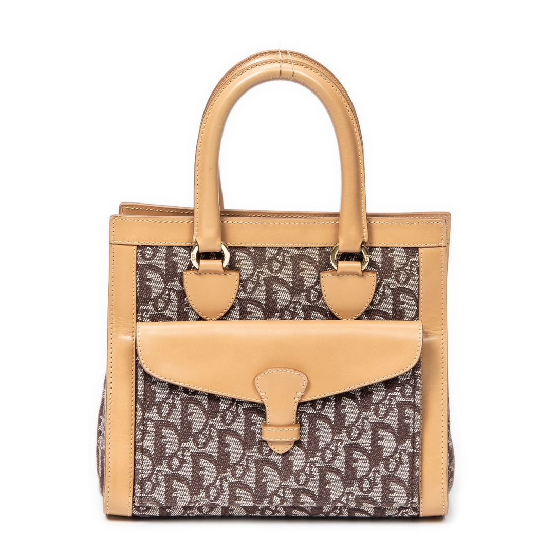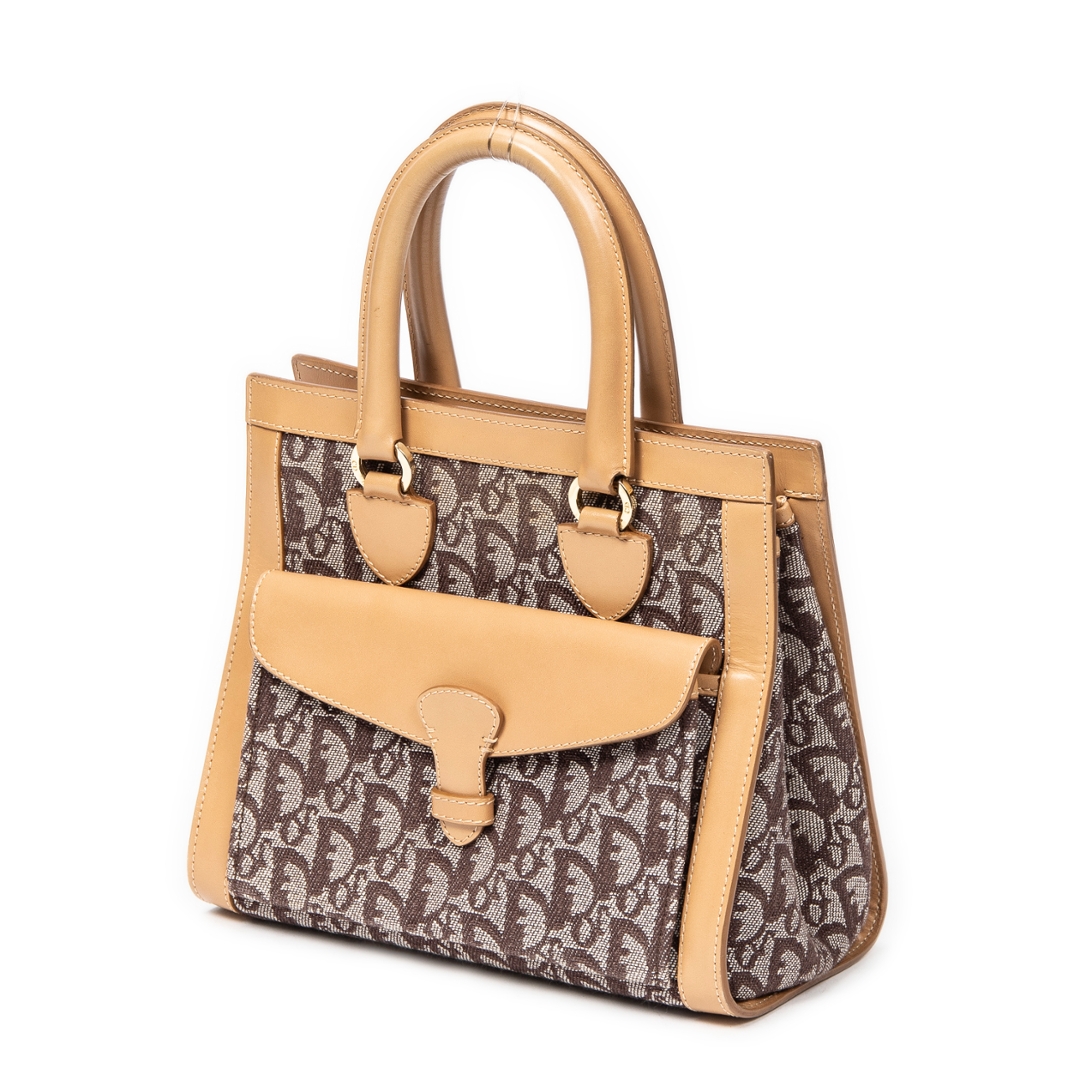 A vintage Dior beige canvas Trotter Front Pocket Tote bag with a certificate of authenticity. Approximately 20cm height, 24cm width.