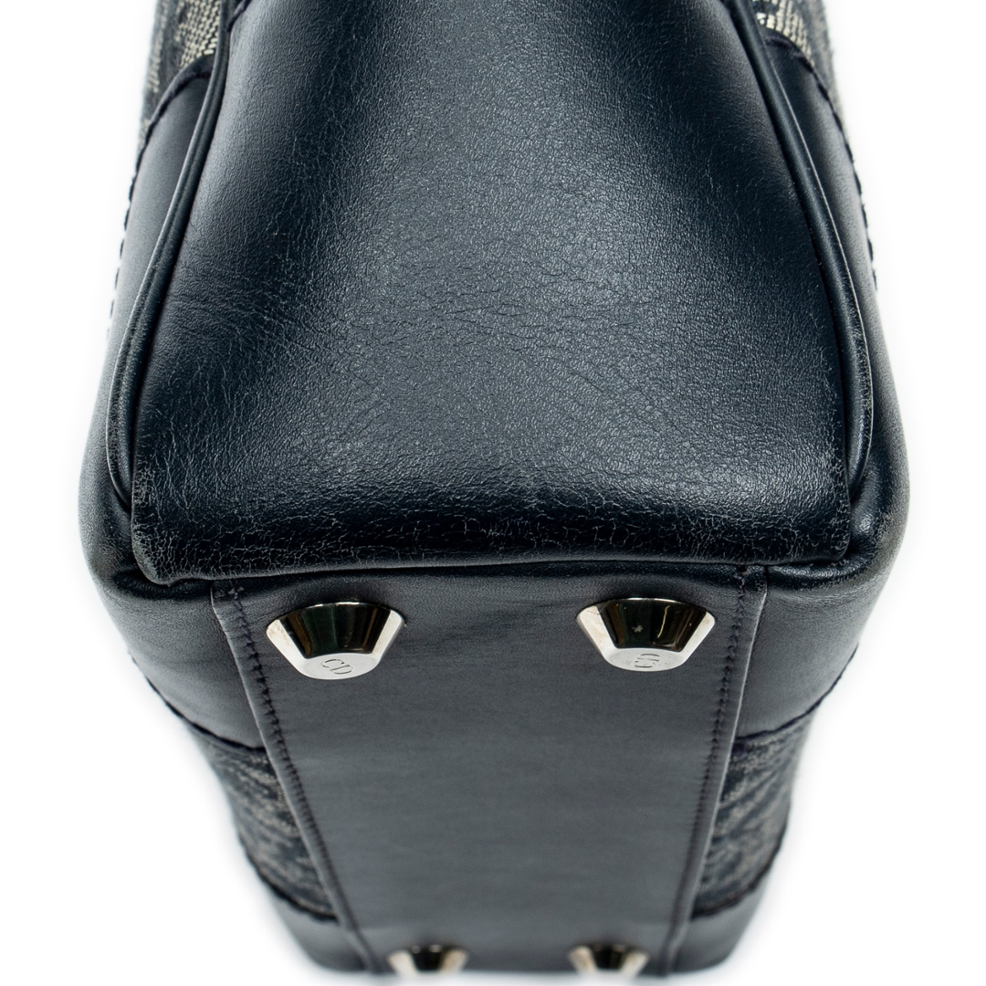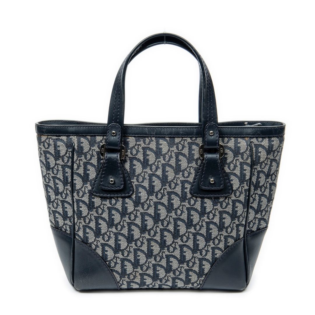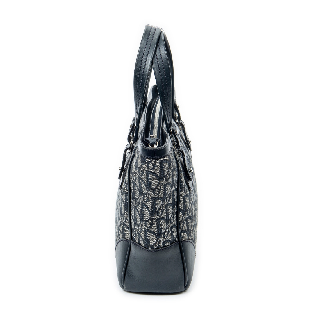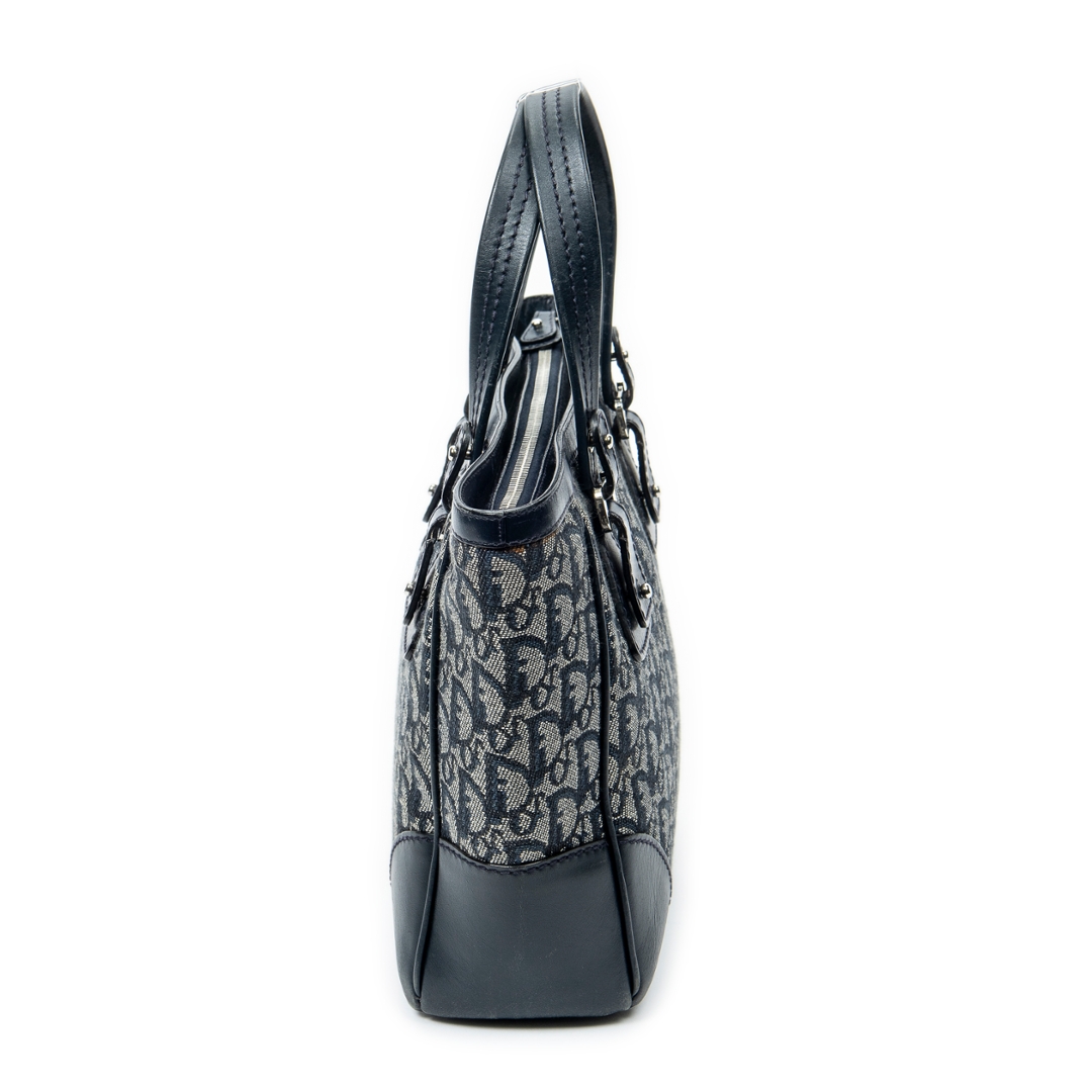 A vintage Dior navy/grey canvas Trotter Zip Tote bag with a certificate of authenticity. Approximately 23cm height, 25cm width.