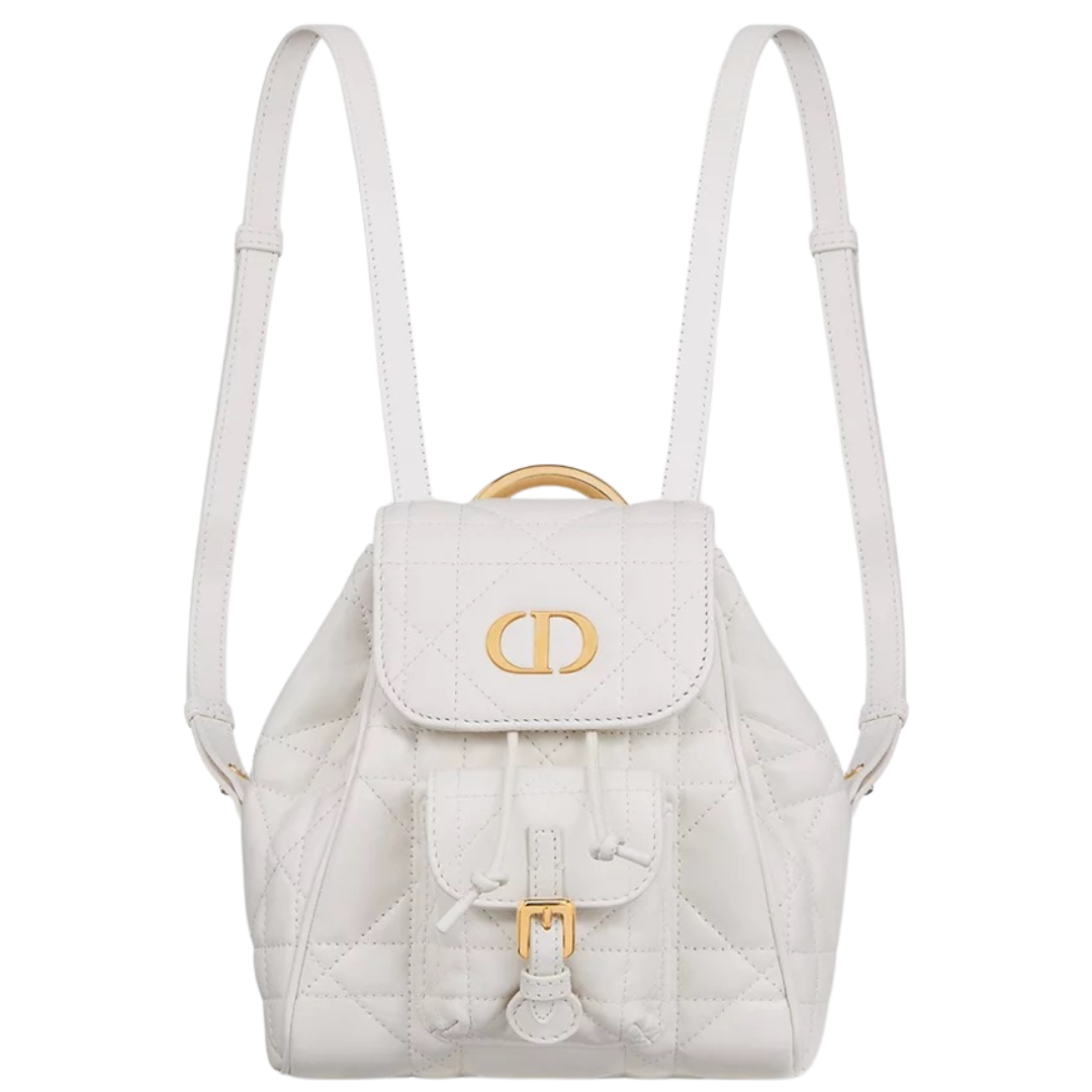 - > Dior White Quilted Leather Mini Backpack.