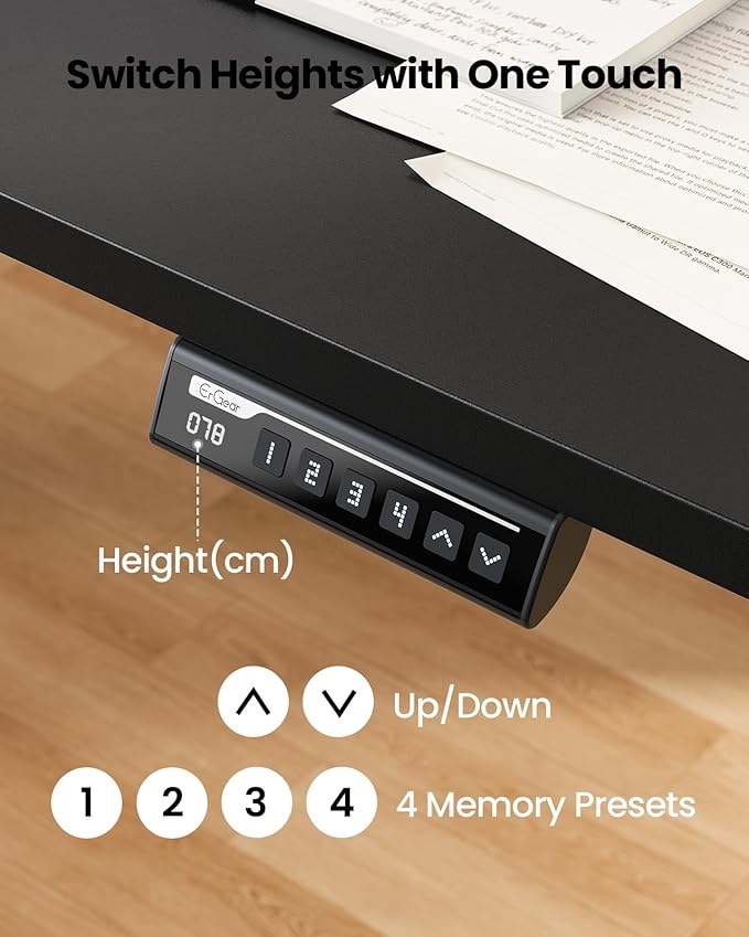 An ErGear Electric Standing Desk Height Adjustable 160 x 80cm, Sit Stand Desk with 4 Memory Smart Panel, Home Office Desk with Splice Board.