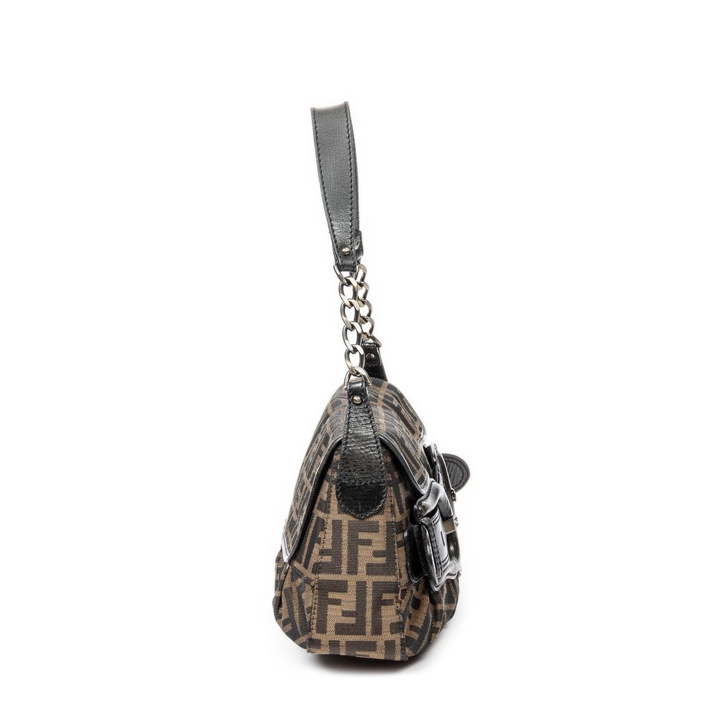 A vintage Fendi black/khaki canvas B Bis Shouder Bag bag with a certificate of authenticity, Approximately 21cm height, 30cm width.