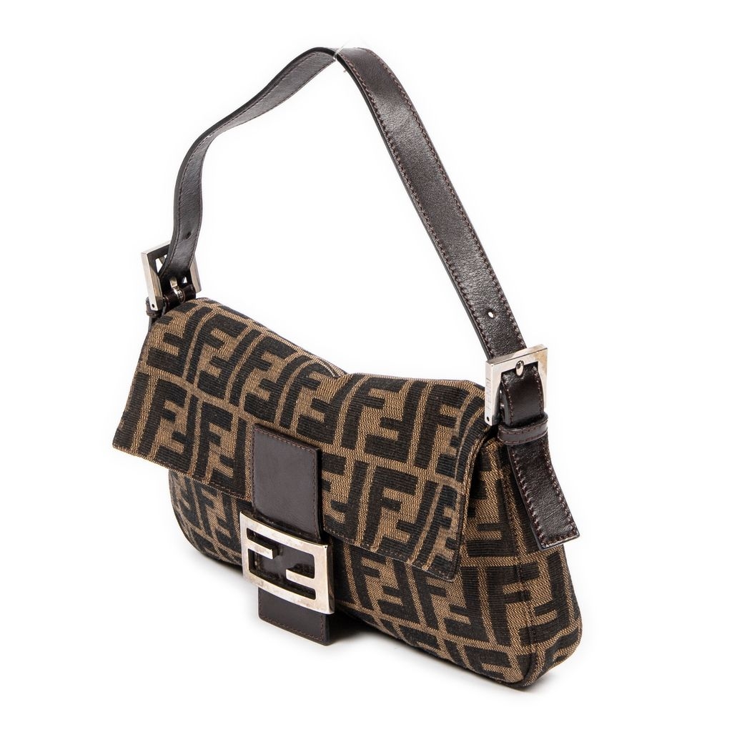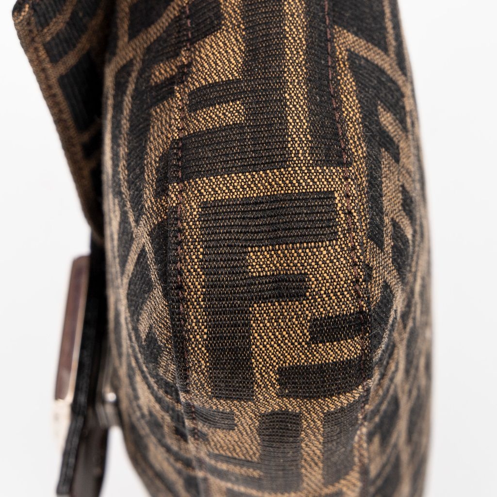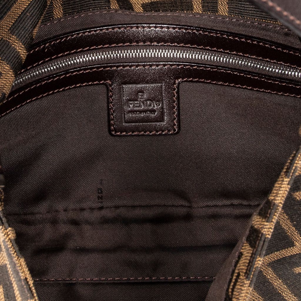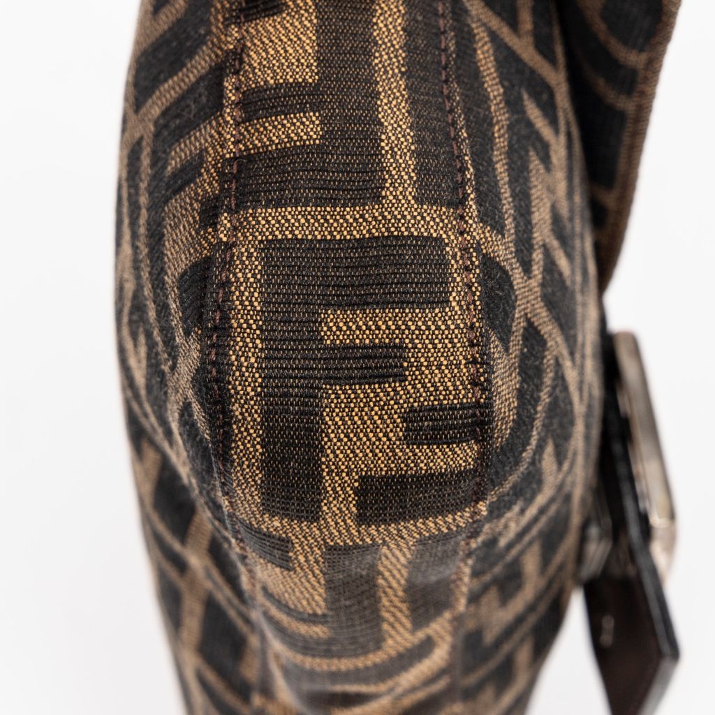 A vintage Fendi tan/dark brown canvas Baguette bag with a certificate of authenticity, Approximately 14cm height, 26cm width.