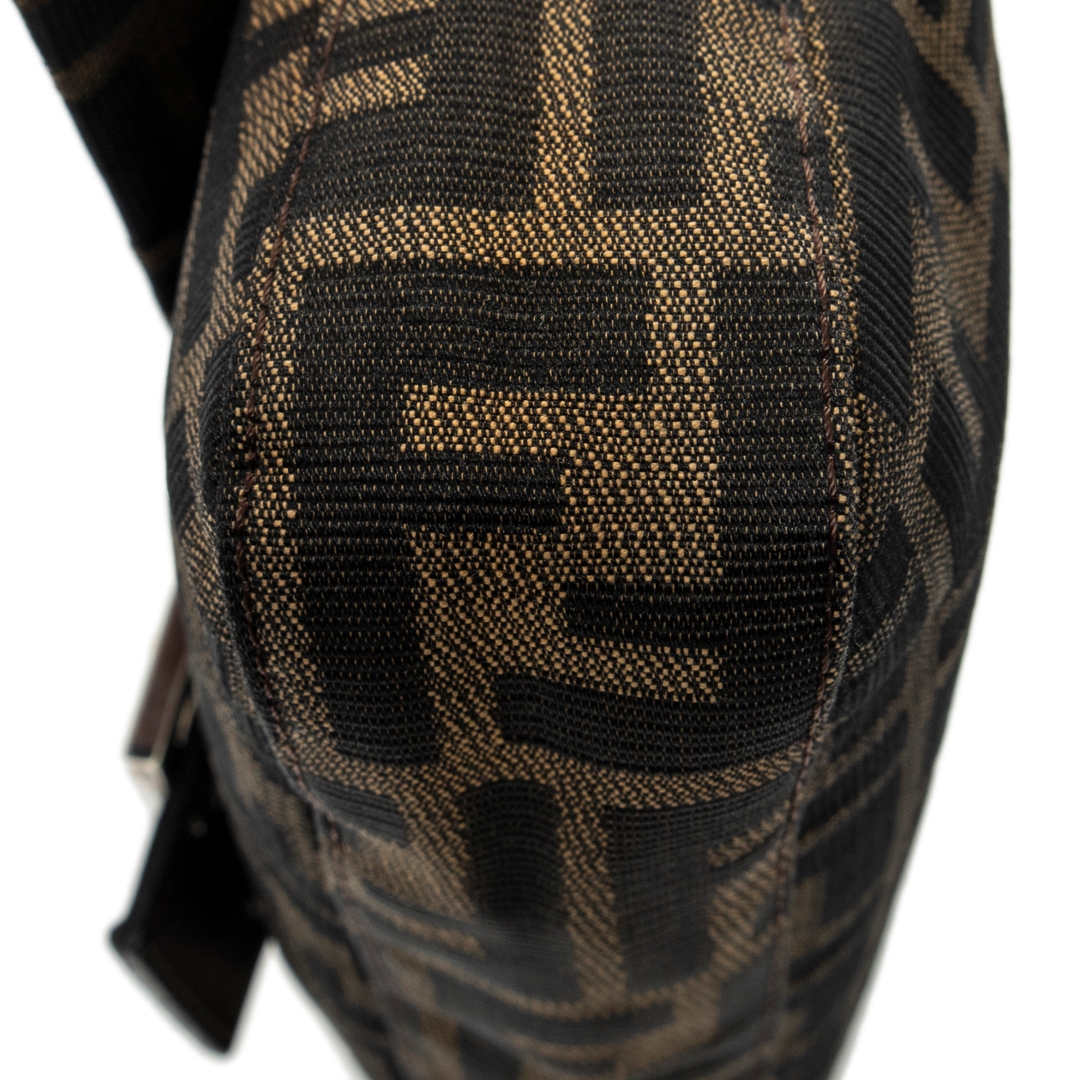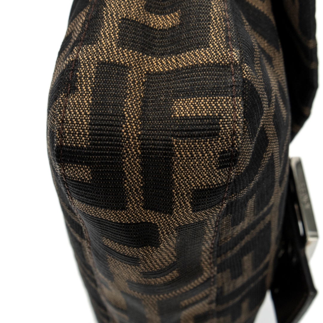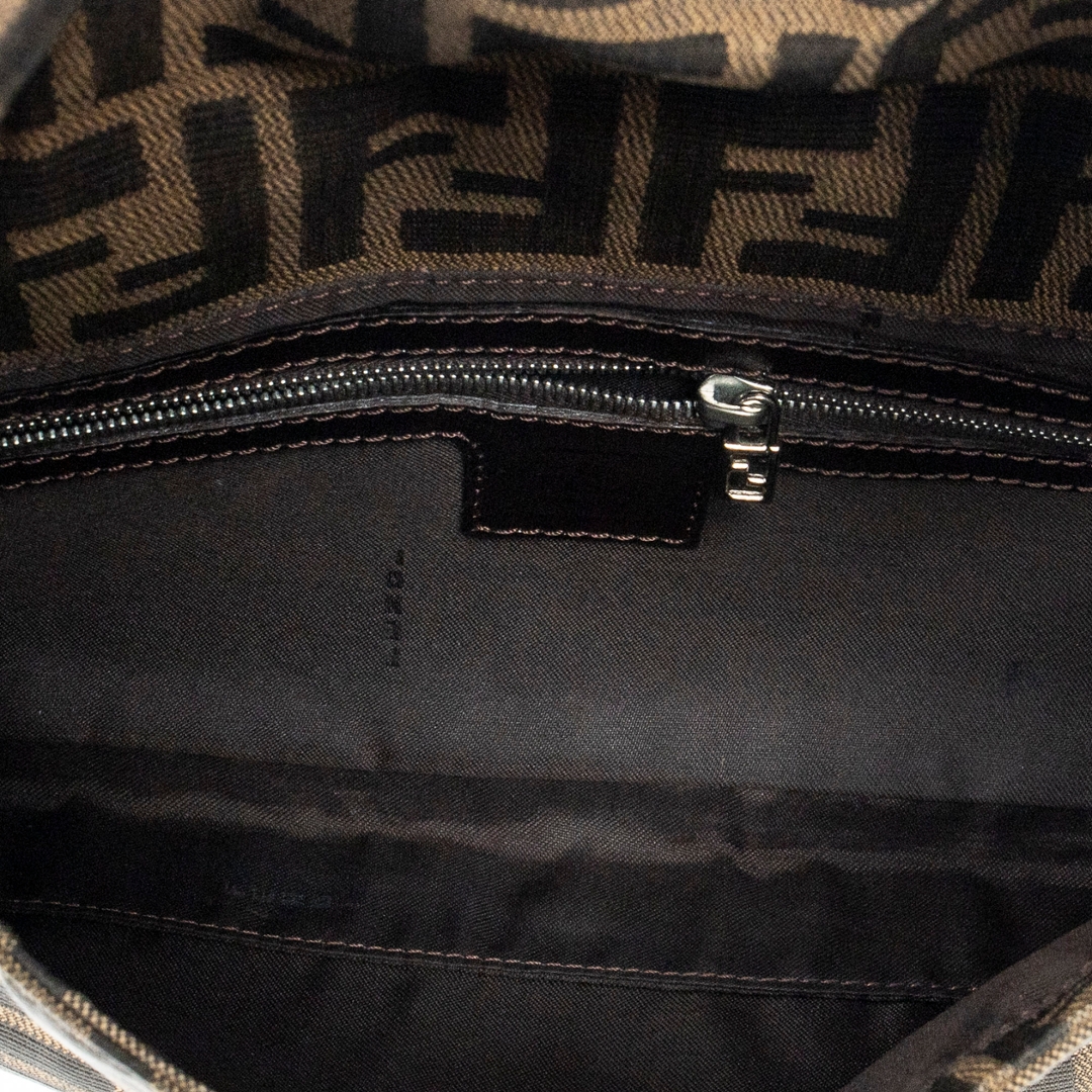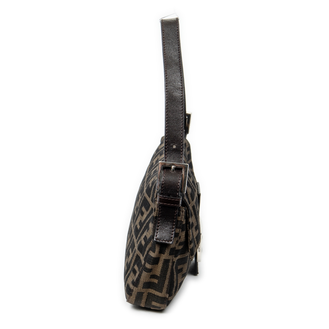 A vintage Fendi brown/black canvas Baguette bag with a certificate of authenticity. Approximately 14cm height, 26cm width.