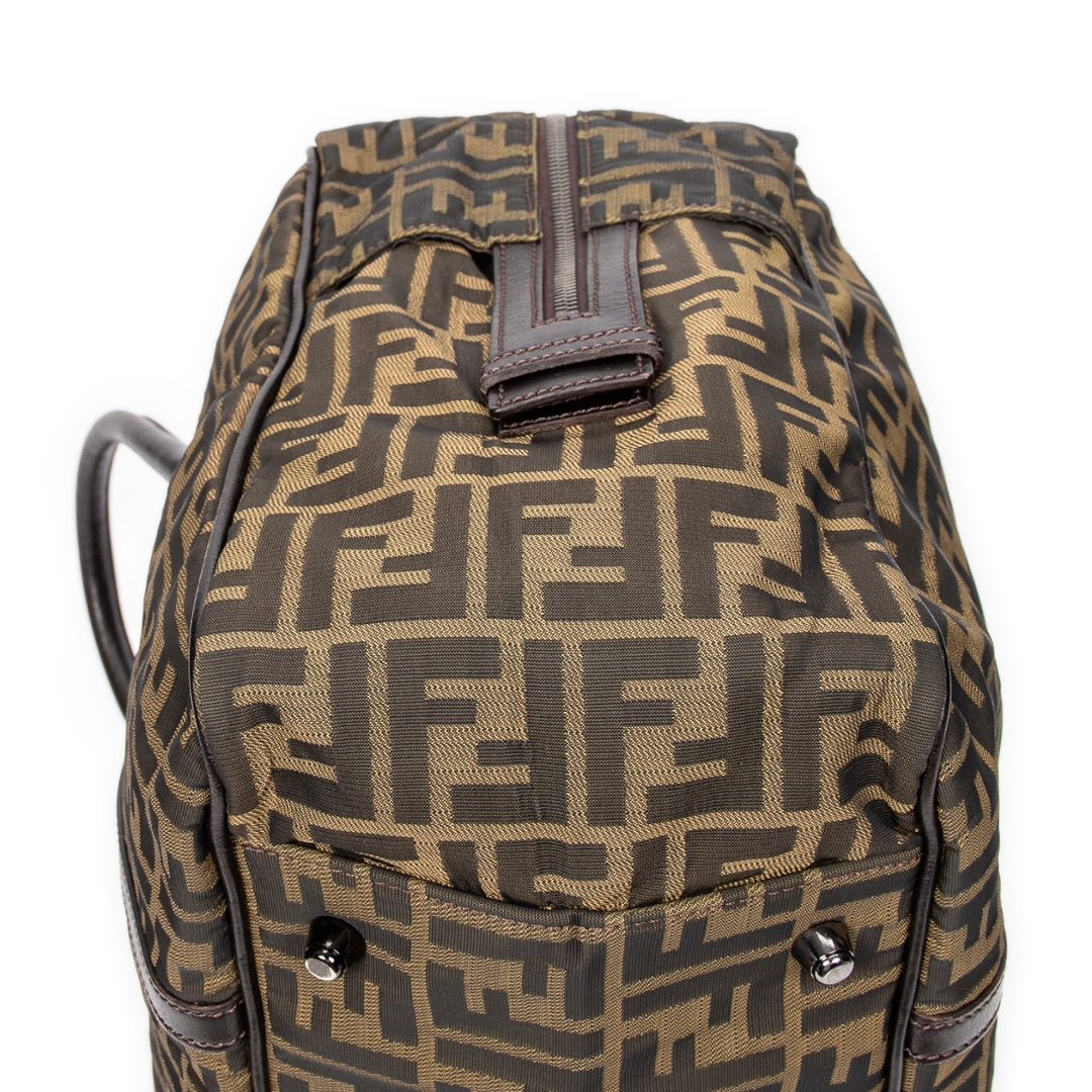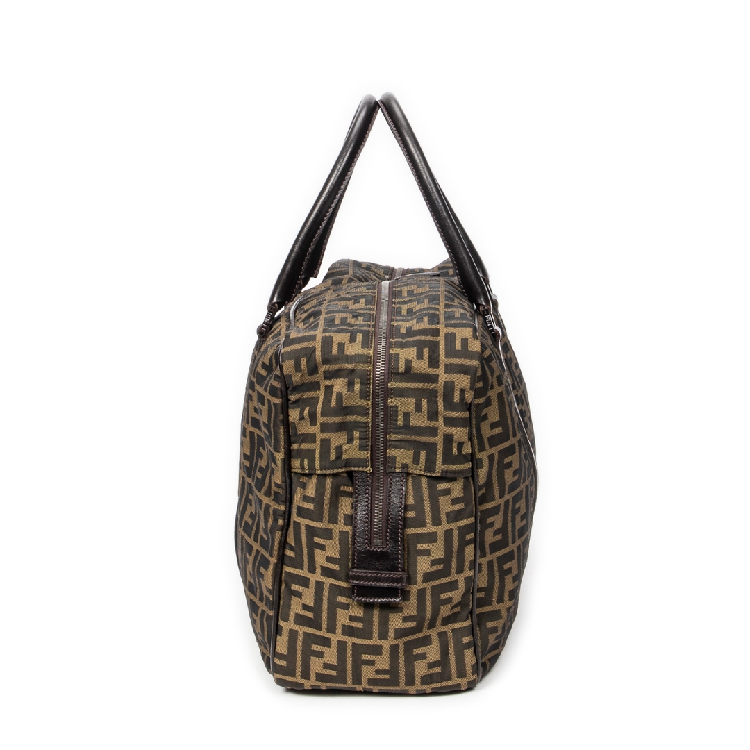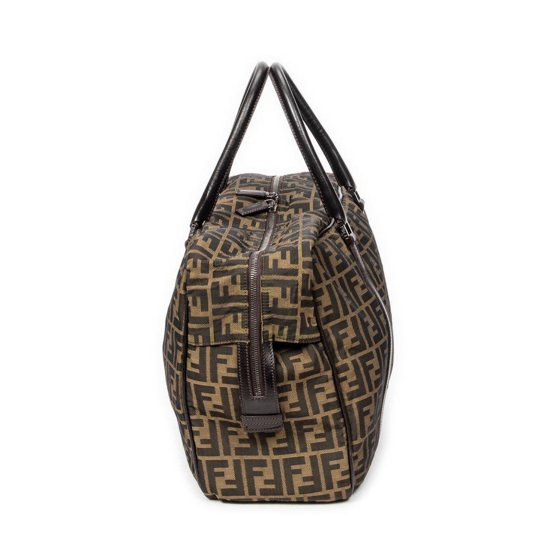 A vintage Fendi tan/dark brown canvas Duffle Bag with a certificate of authenticity. Approximately 29cm height, 43cm width.