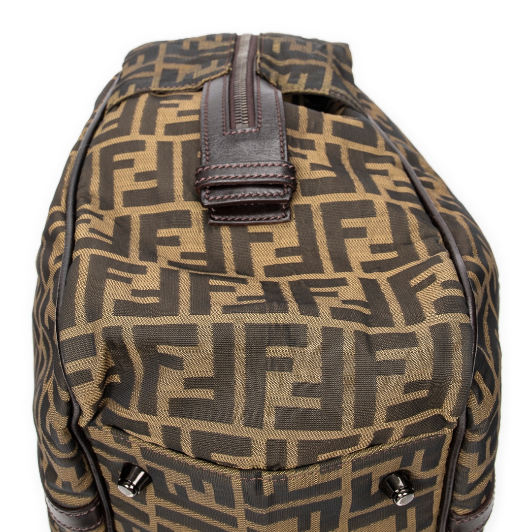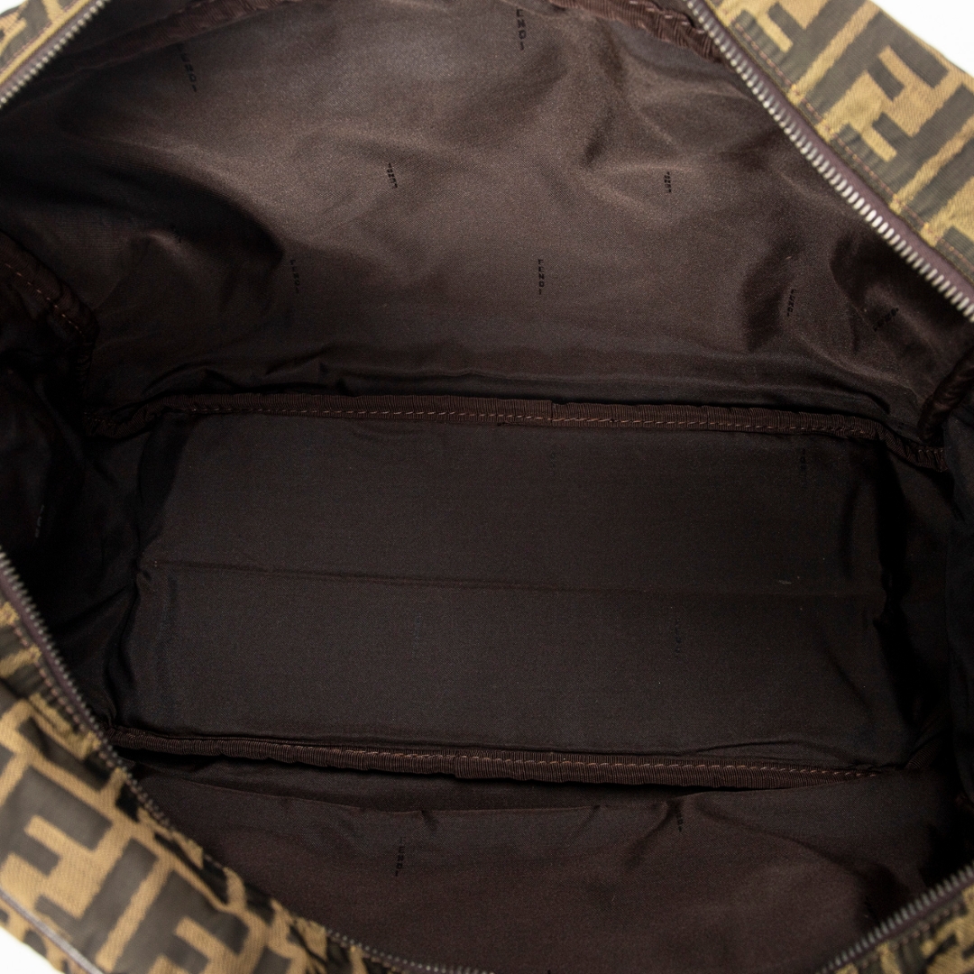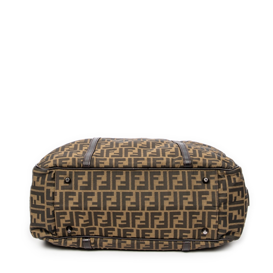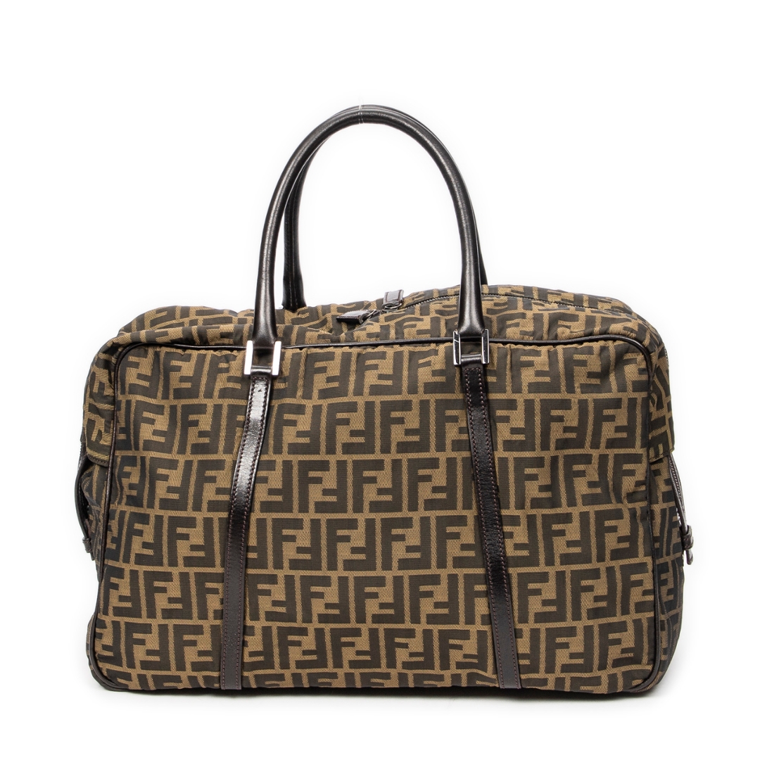 A vintage Fendi tan/dark brown canvas Duffle Bag with a certificate of authenticity. Approximately 29cm height, 43cm width.