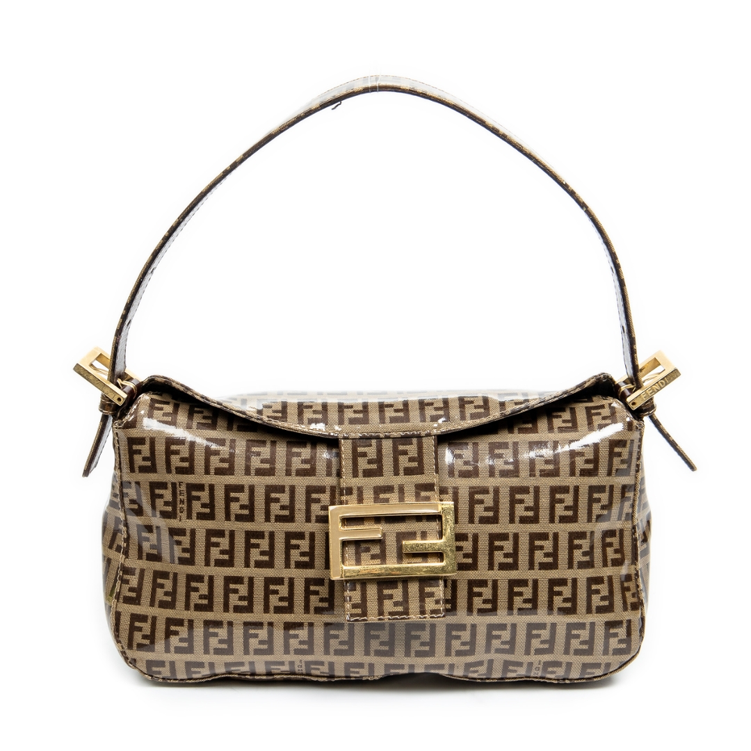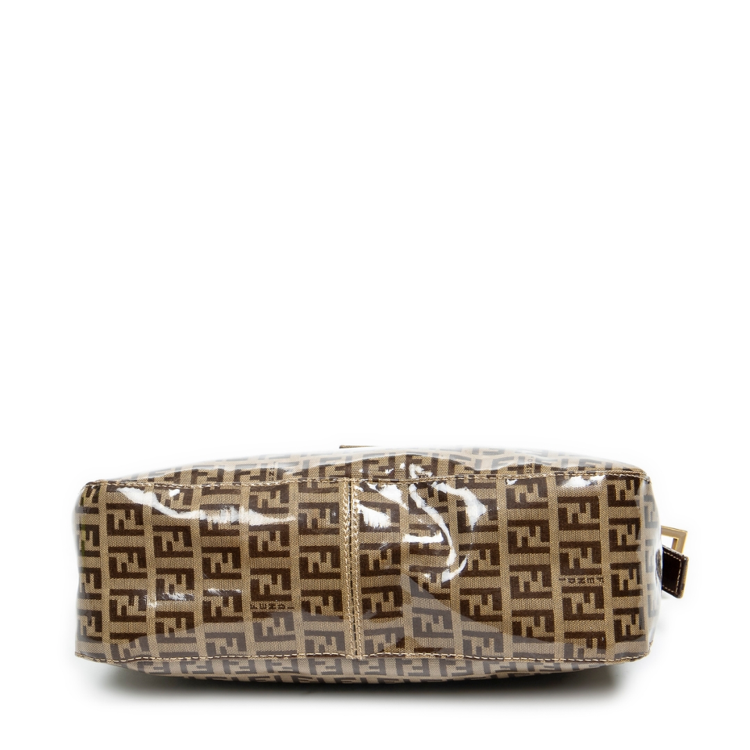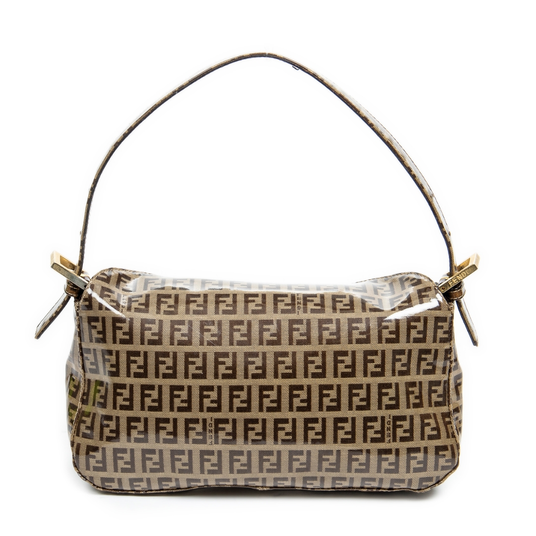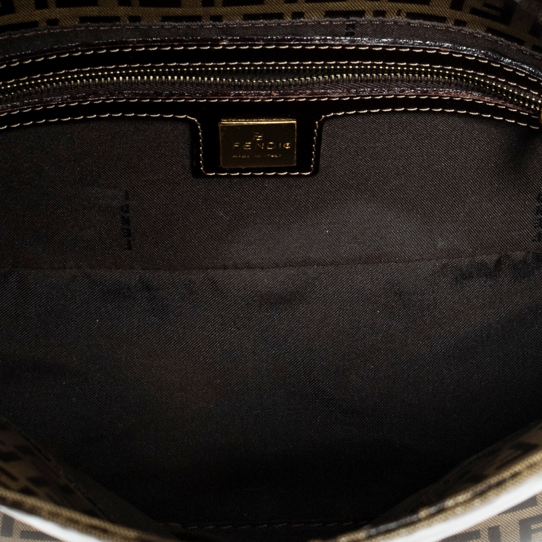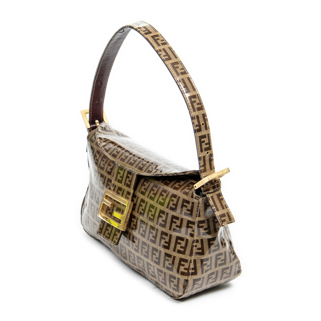 A vintage Fendi brown coated canvas Fold Over Flap Tote bag with a certificate of authenticity, Approximately 15cm height, 26cm width.