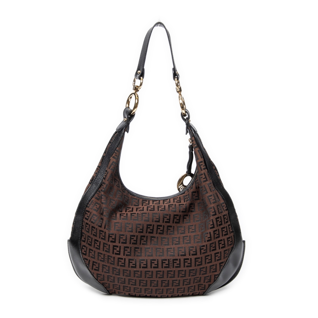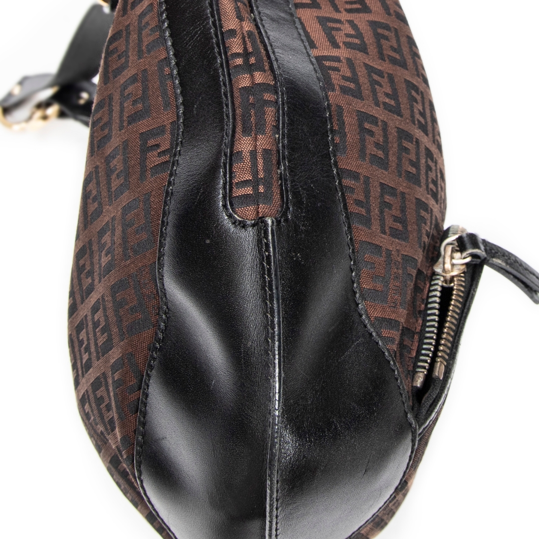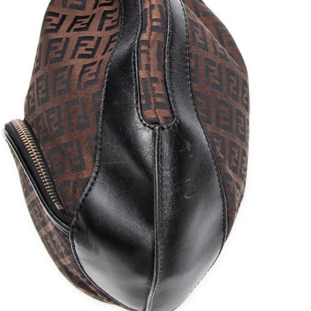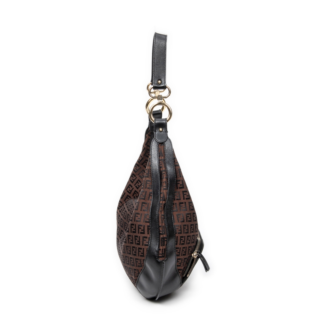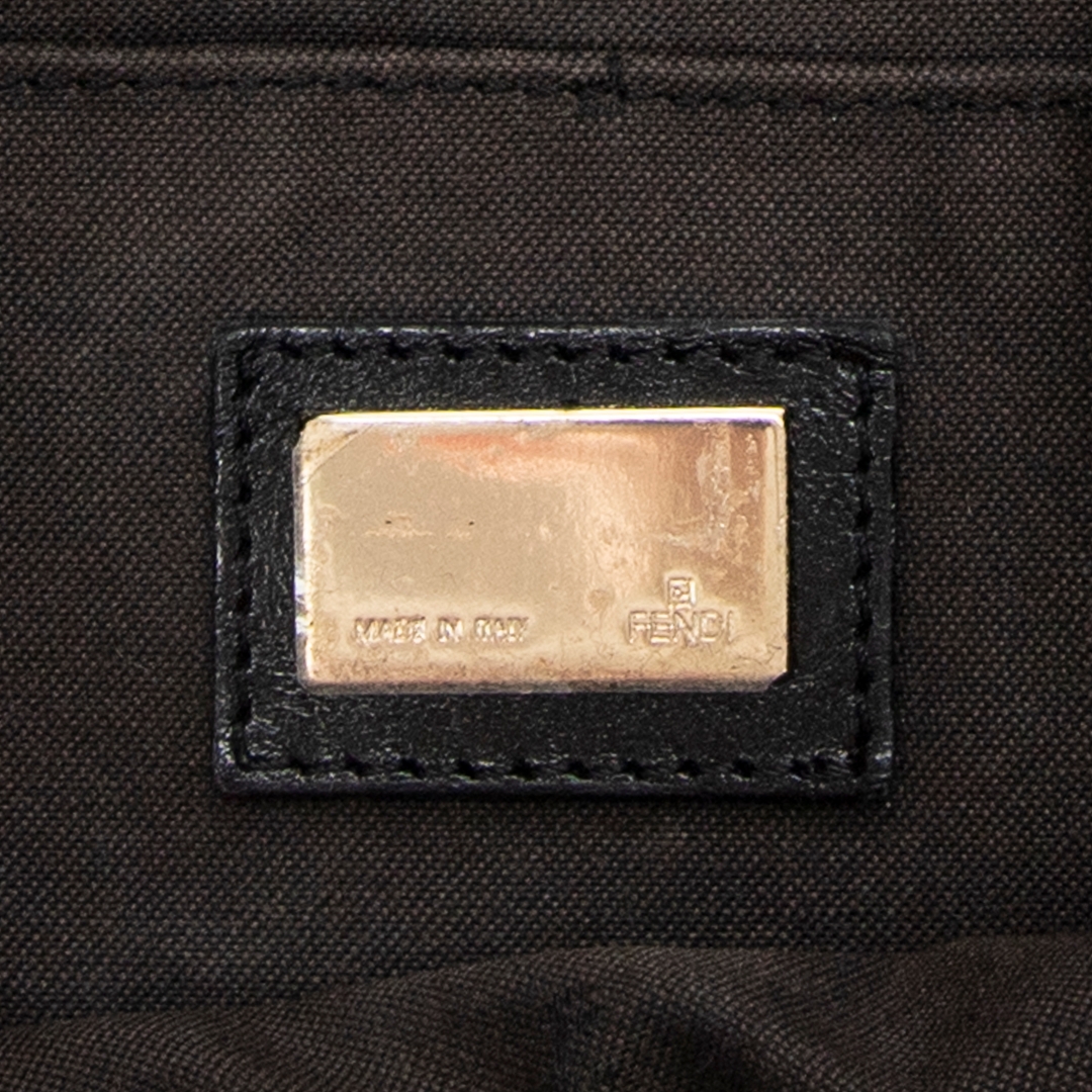 A vintage Fendi dark brown/black canvas Front Pocket Chef Hobo bag with a certificate of authenticity. Approximately 30cm height, 38cm width.