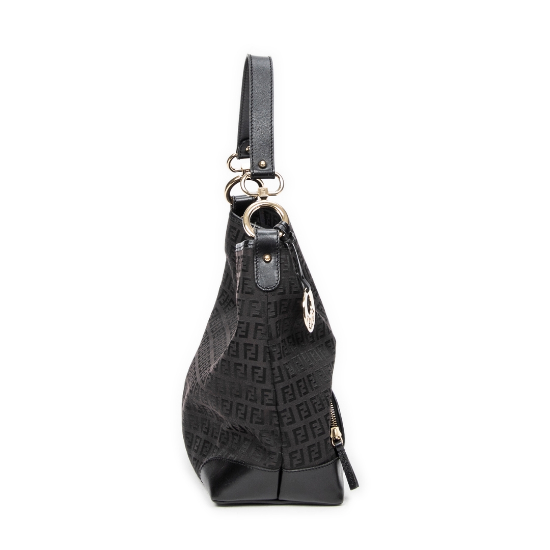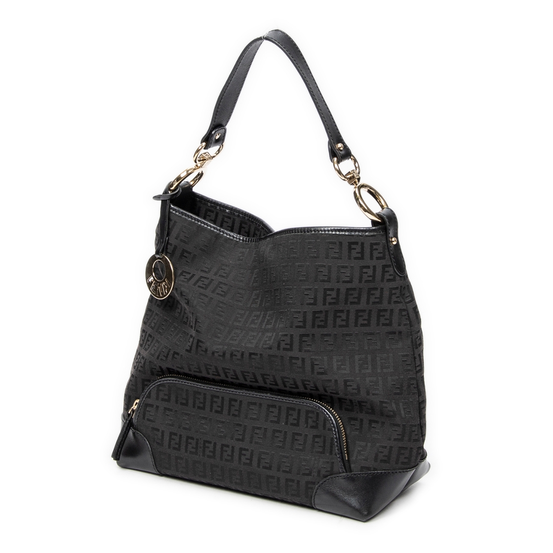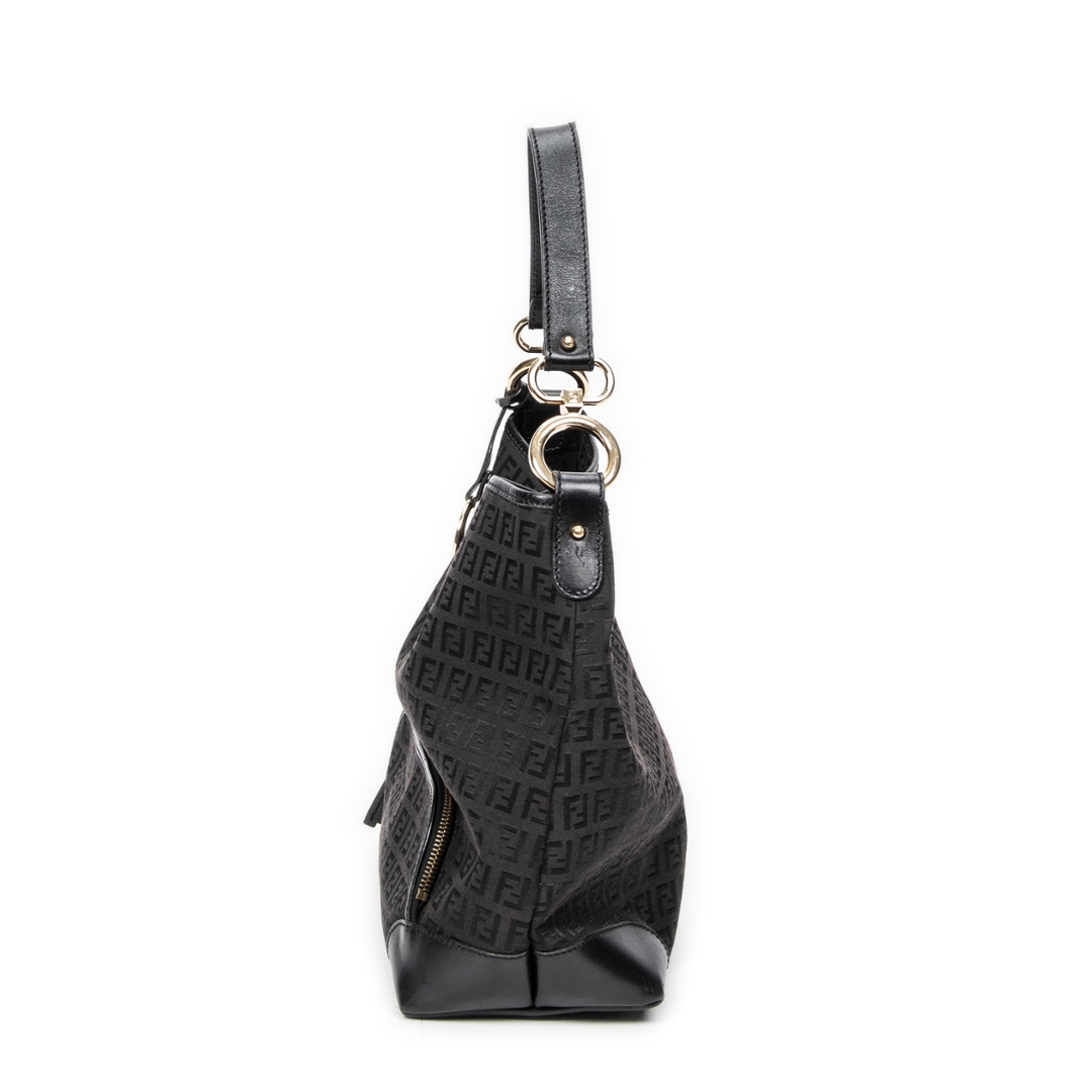 A vintage Fendi black canvas Front Pocket Hobo bag with a certificate of authenticity. Approximately 17cm height, 30cm width.