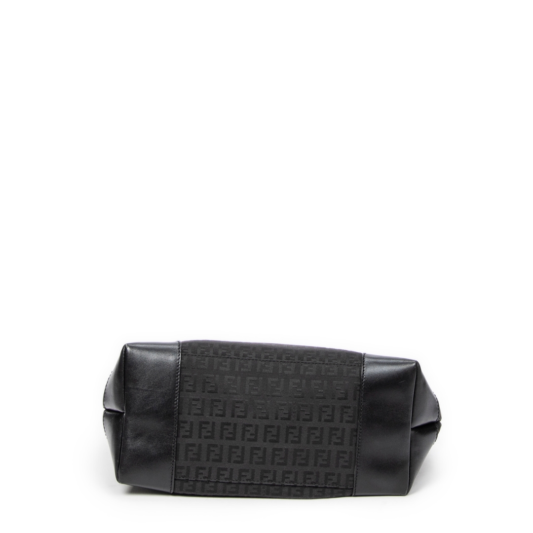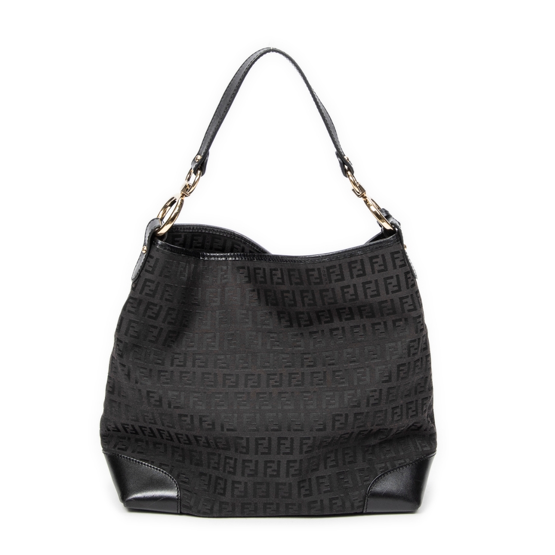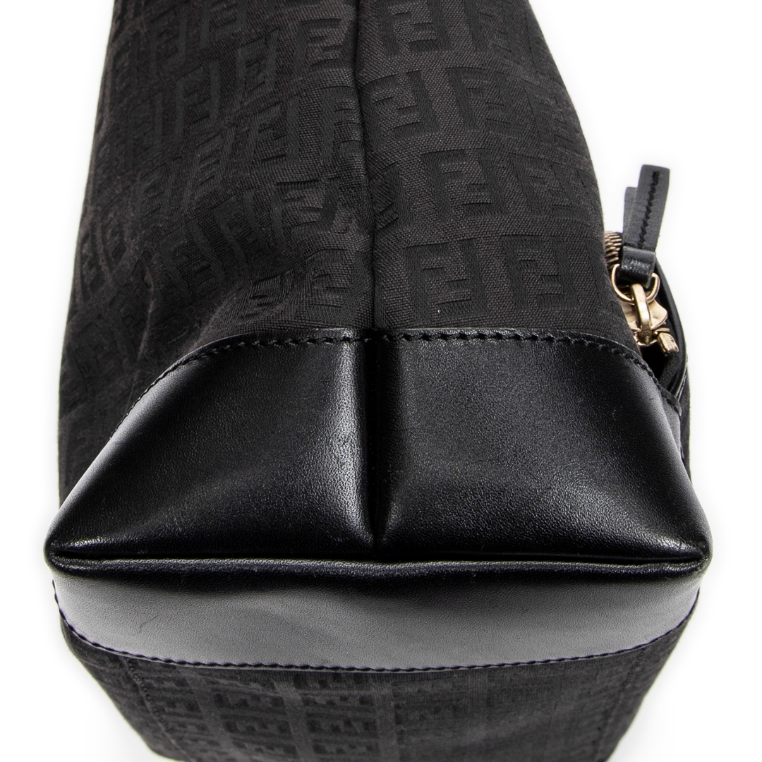 A vintage Fendi black canvas Front Pocket Hobo bag with a certificate of authenticity. Approximately 17cm height, 30cm width.