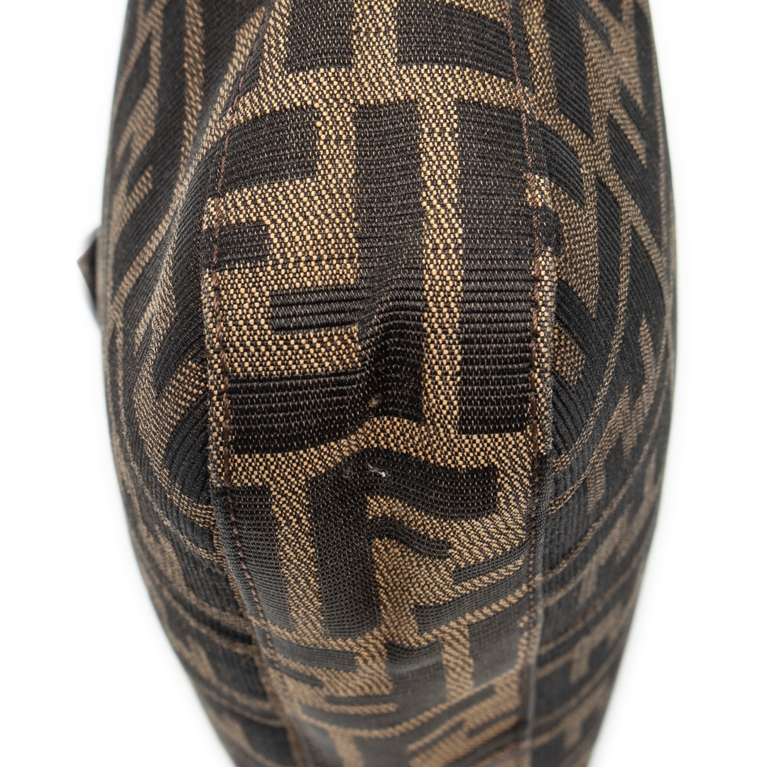 A vintage Fendi brown/black canvas Front Slip Pocket Hobo bag with a certificate of authenticity. Approximately 24cm height, 29cm width.