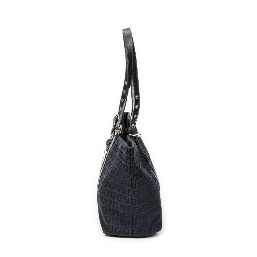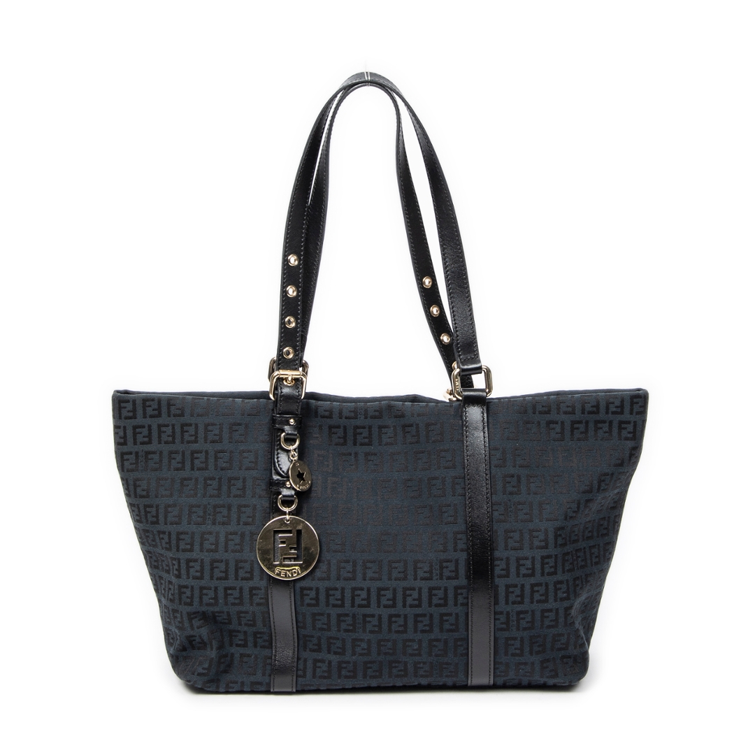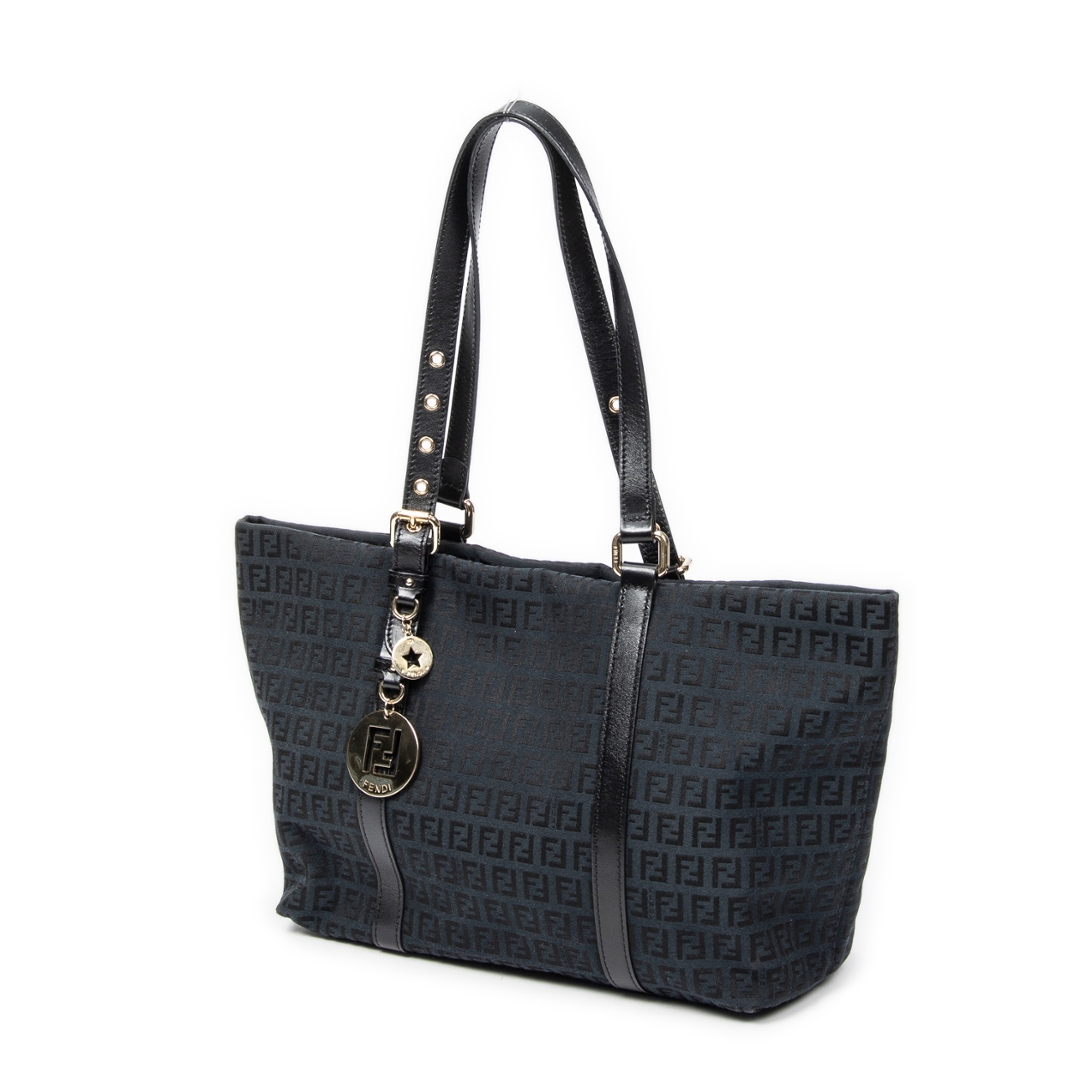 A vintage Fendi black canvas Large Charm Shopper bag with a certificate of authenticity. Approximately 26cm height, 34cm width.