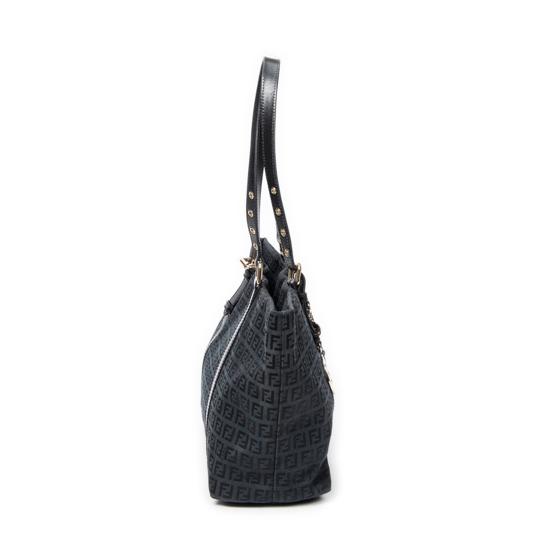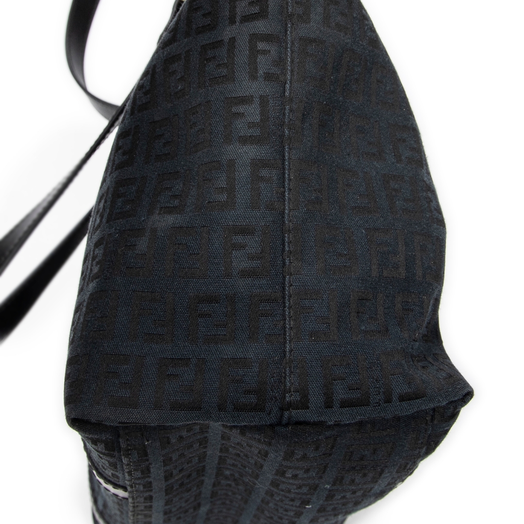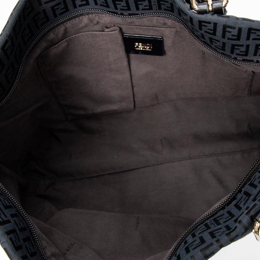 A vintage Fendi black canvas Large Charm Shopper bag with a certificate of authenticity. Approximately 26cm height, 34cm width.