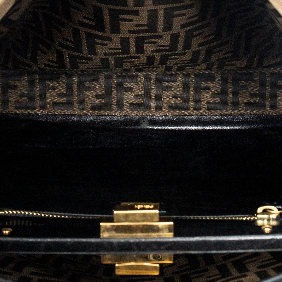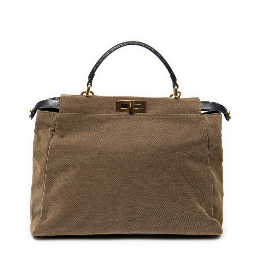 A vintage Fendi brown/black canvas Large Peekaboo bag with a certificate of authenticity. Approximately 30cm height, 40cm width.