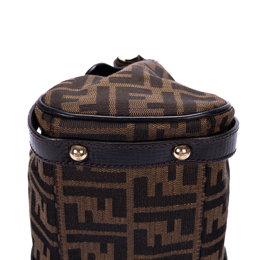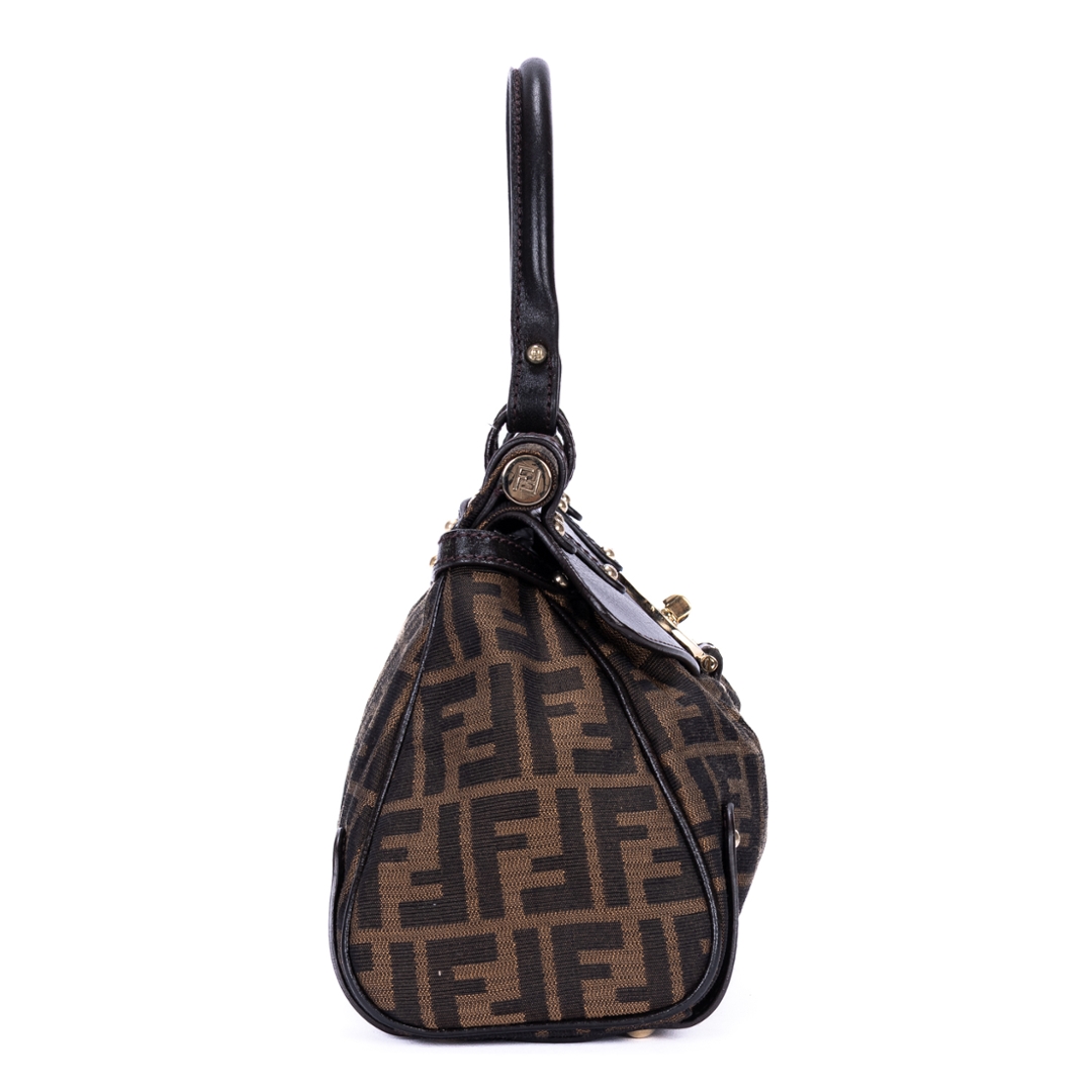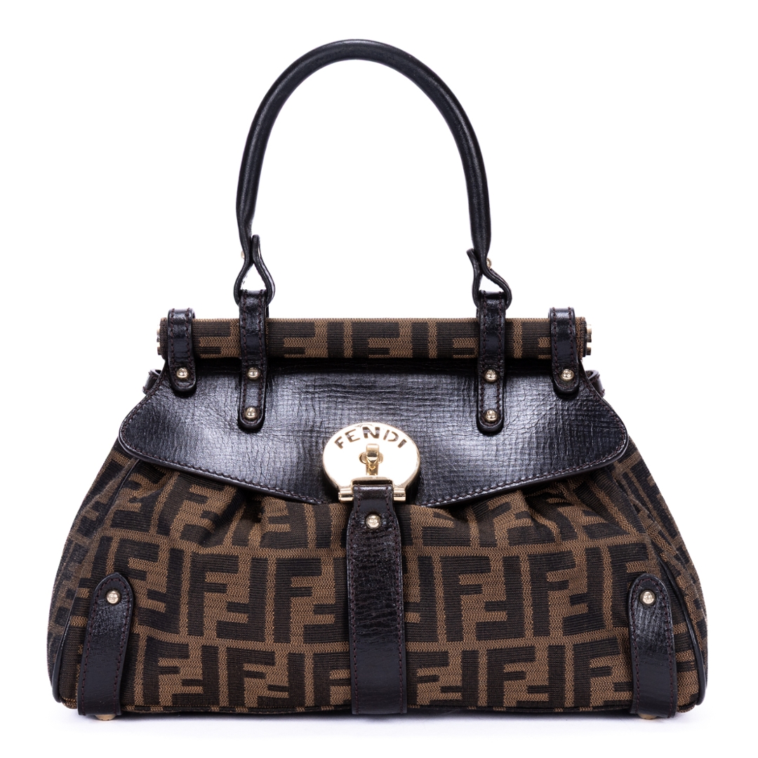 A vintage Fendi dark brown/beige canvas Magic bag with a certificate of authenticity. Approximately 19cm height, 30cm width.