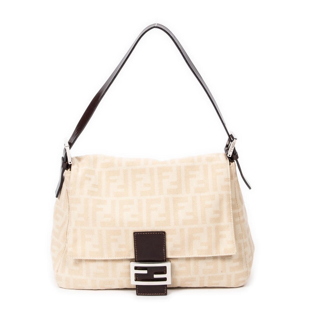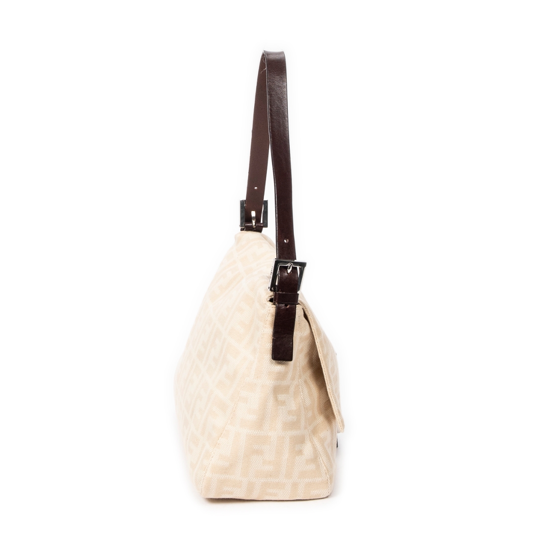 A vintage Fendi ivory/dark brown canvas Mama Forever bag with a certificate of authenticity, Approximately 20cm height, 29cm width.