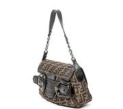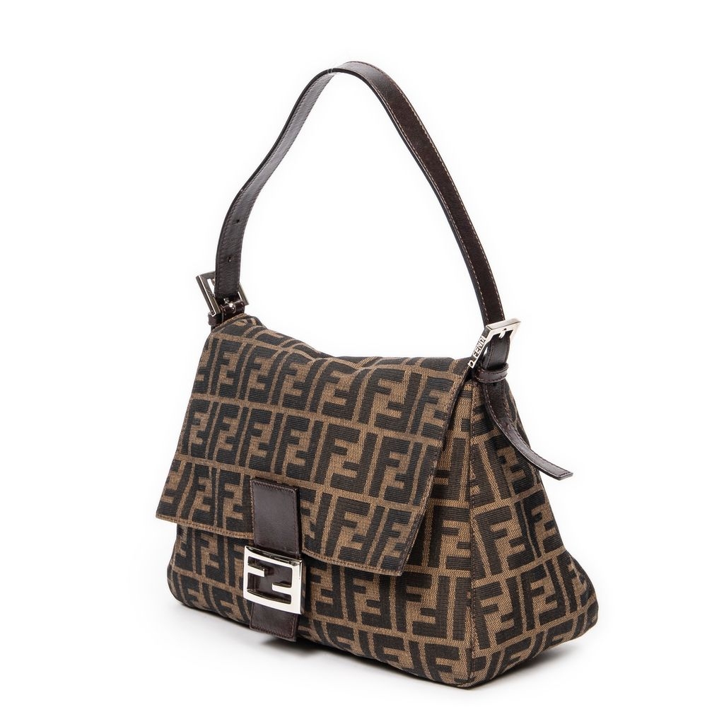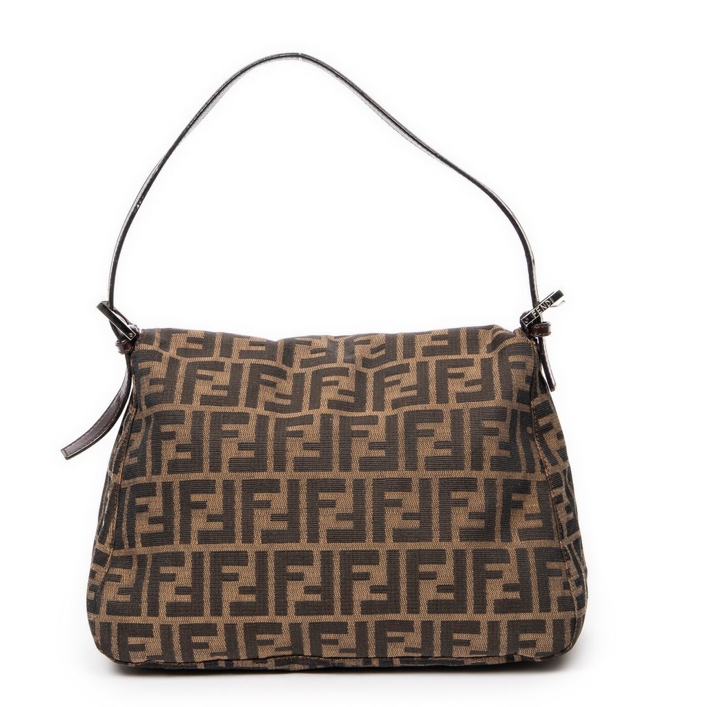 A vintage Fendi brown canvas Mama Forever bag with a certificate of authenticity, Approximately 21cm height, 30cm width.
