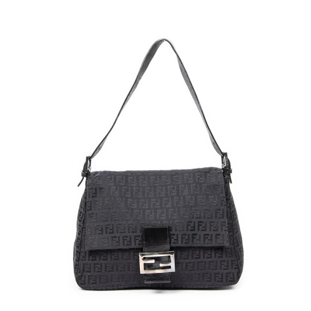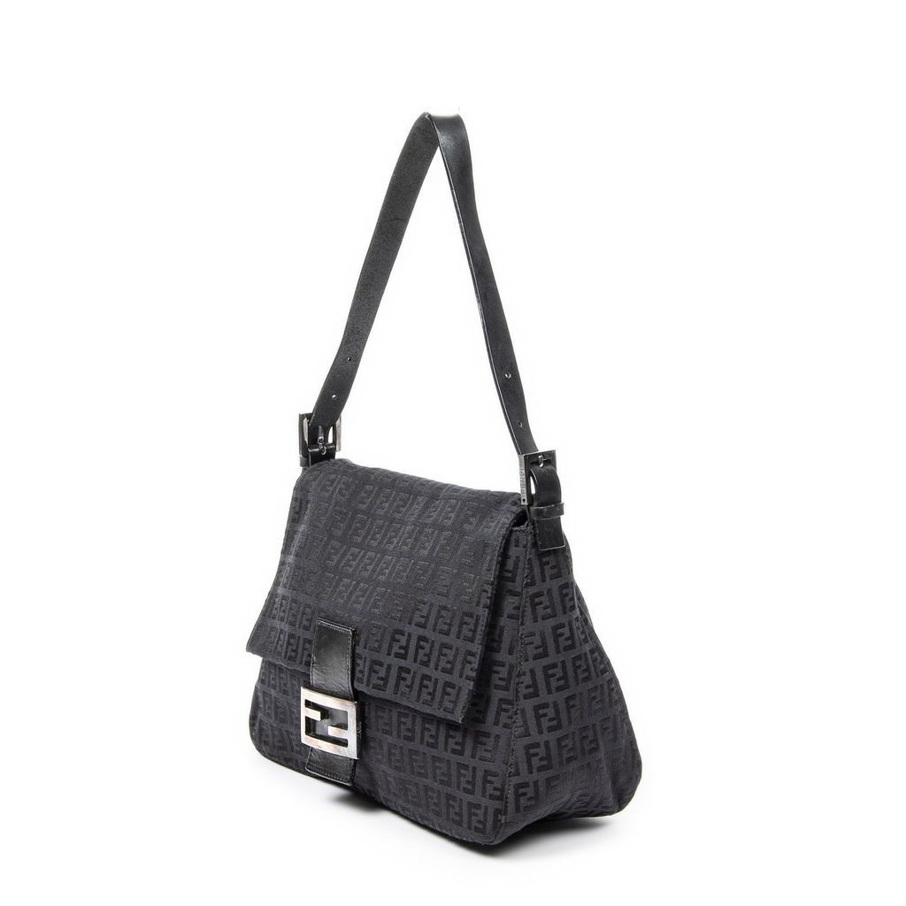 A vintage Fendi black canvas Mama Forever bag with a certificate of authenticity, Approximately 19cm height, 28cm width.