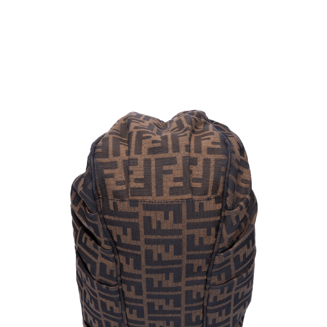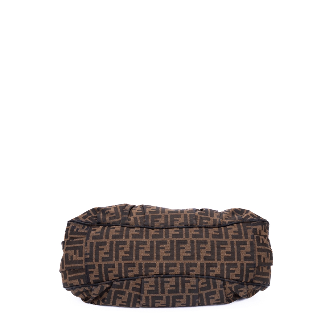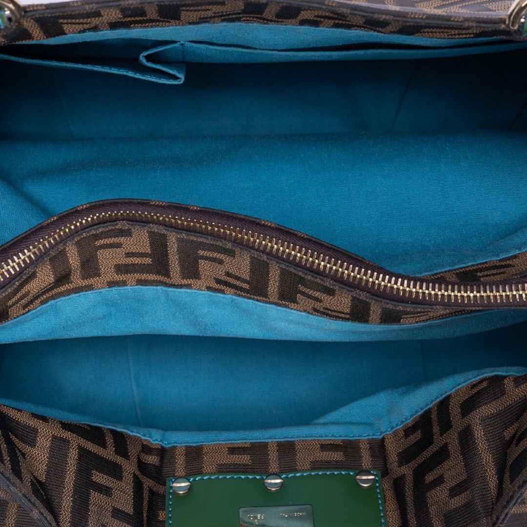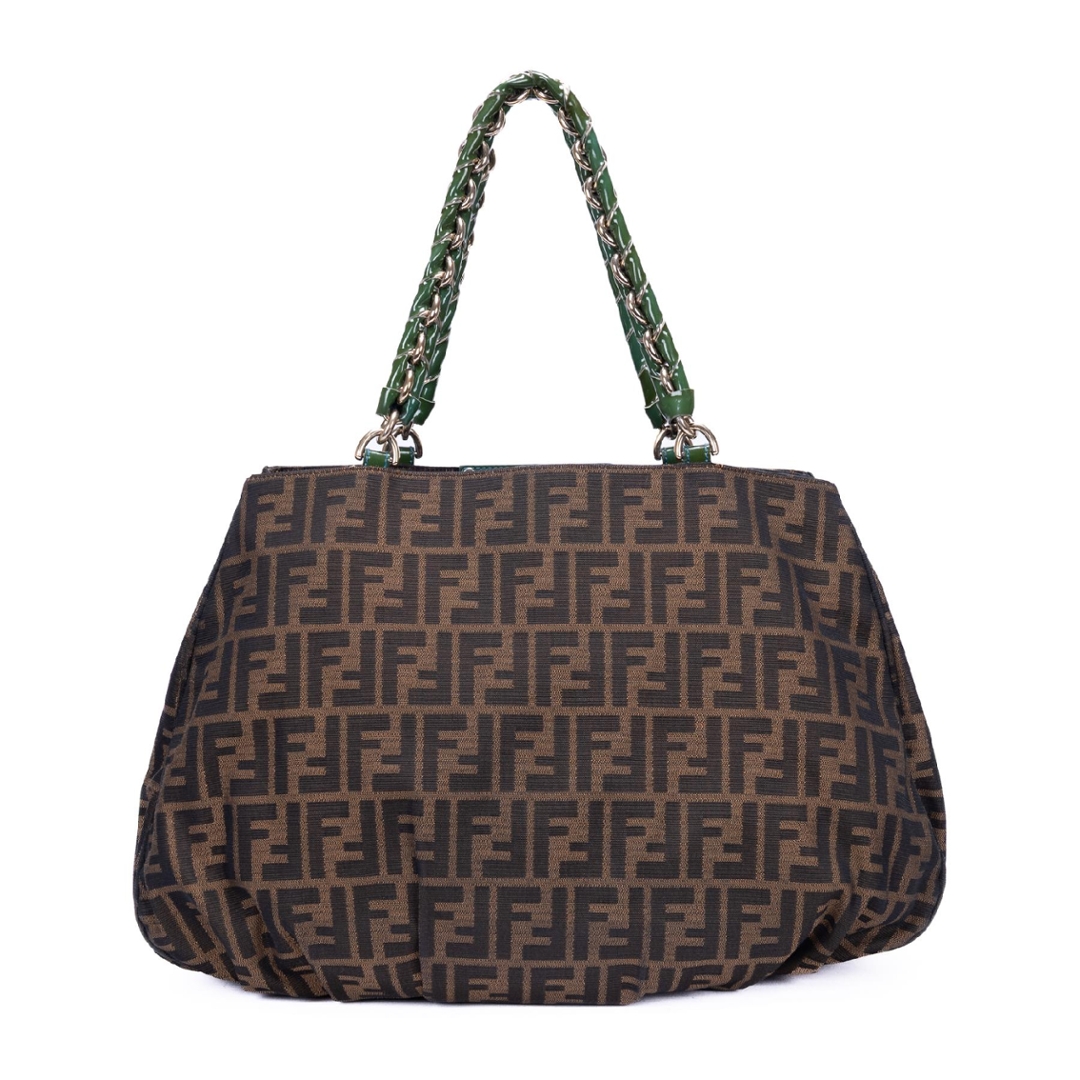 A vintage Fendi brown/green canvas Mia bag with a certificate of authenticity. Approximately 26cm height, 30cm width.