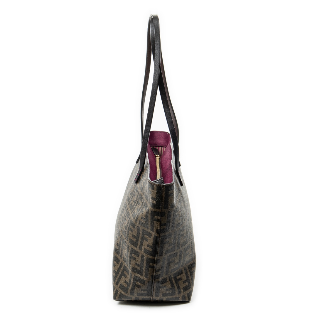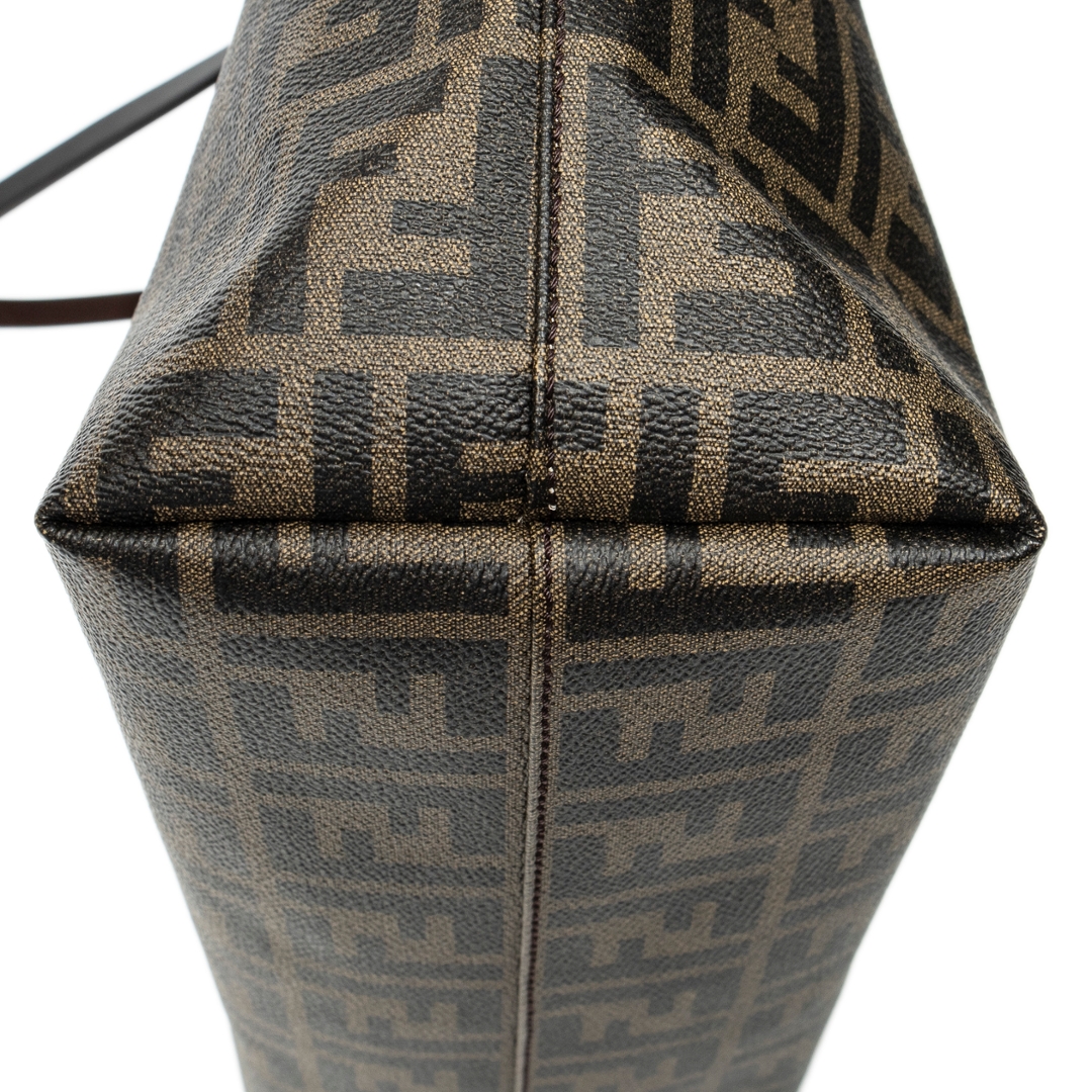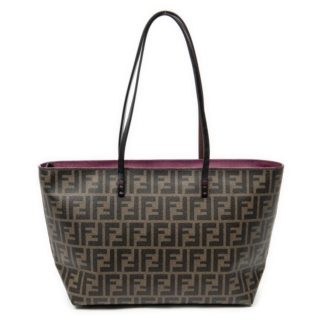A vintage Fendi tan/dark brown coated canvas Roll Zip Tote bag with a certificate of authenticity. Approximately 27cm height, 34cm width.