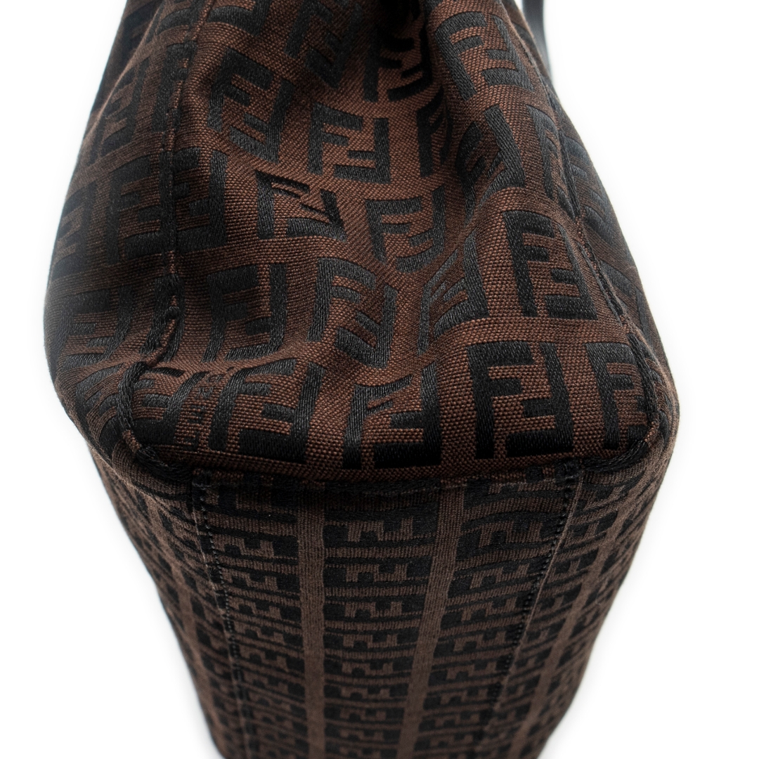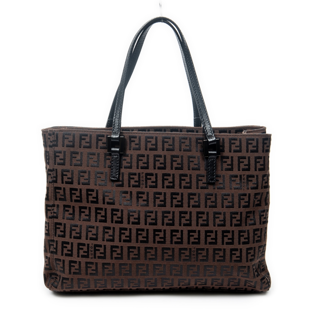 A vintage Fendi brown/black canvas Small Square Open Tote bag with a certificate of authenticity, Approximately 20cm height, 27cm width.
