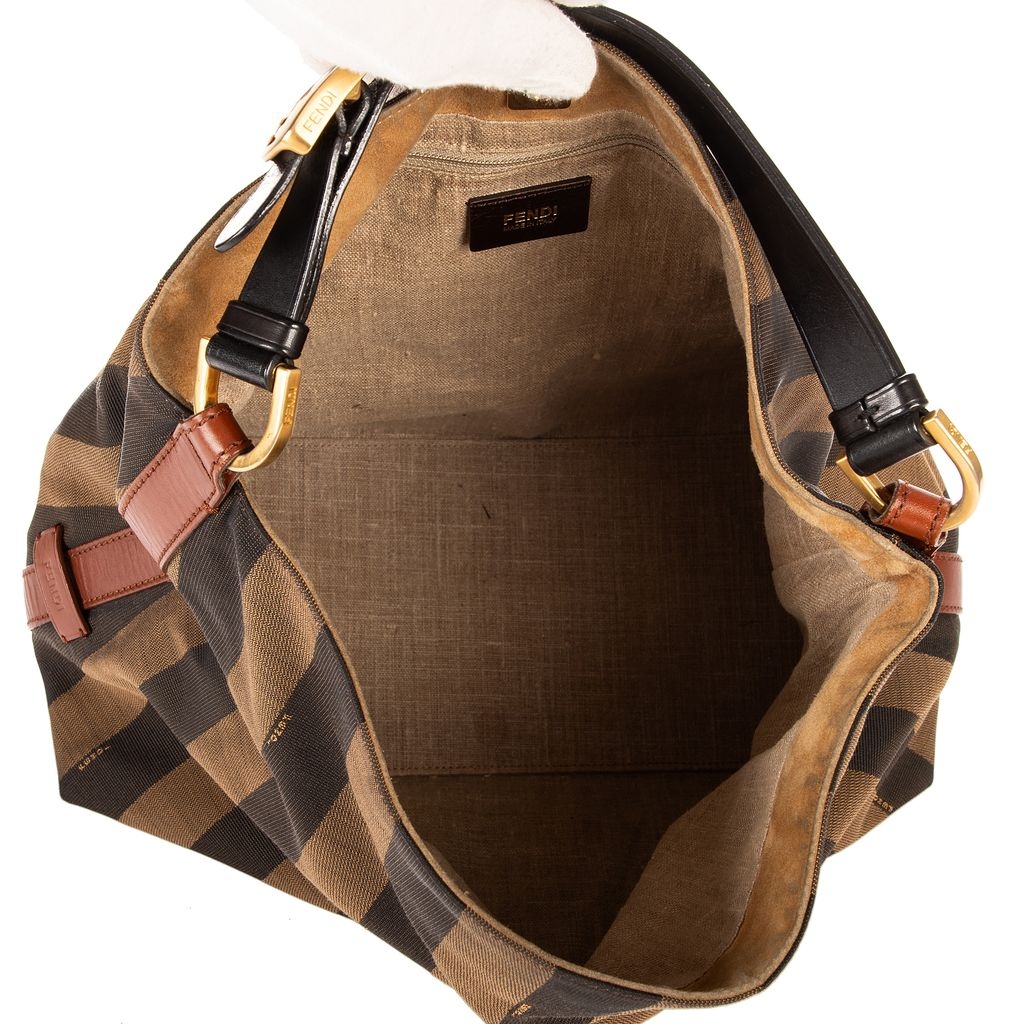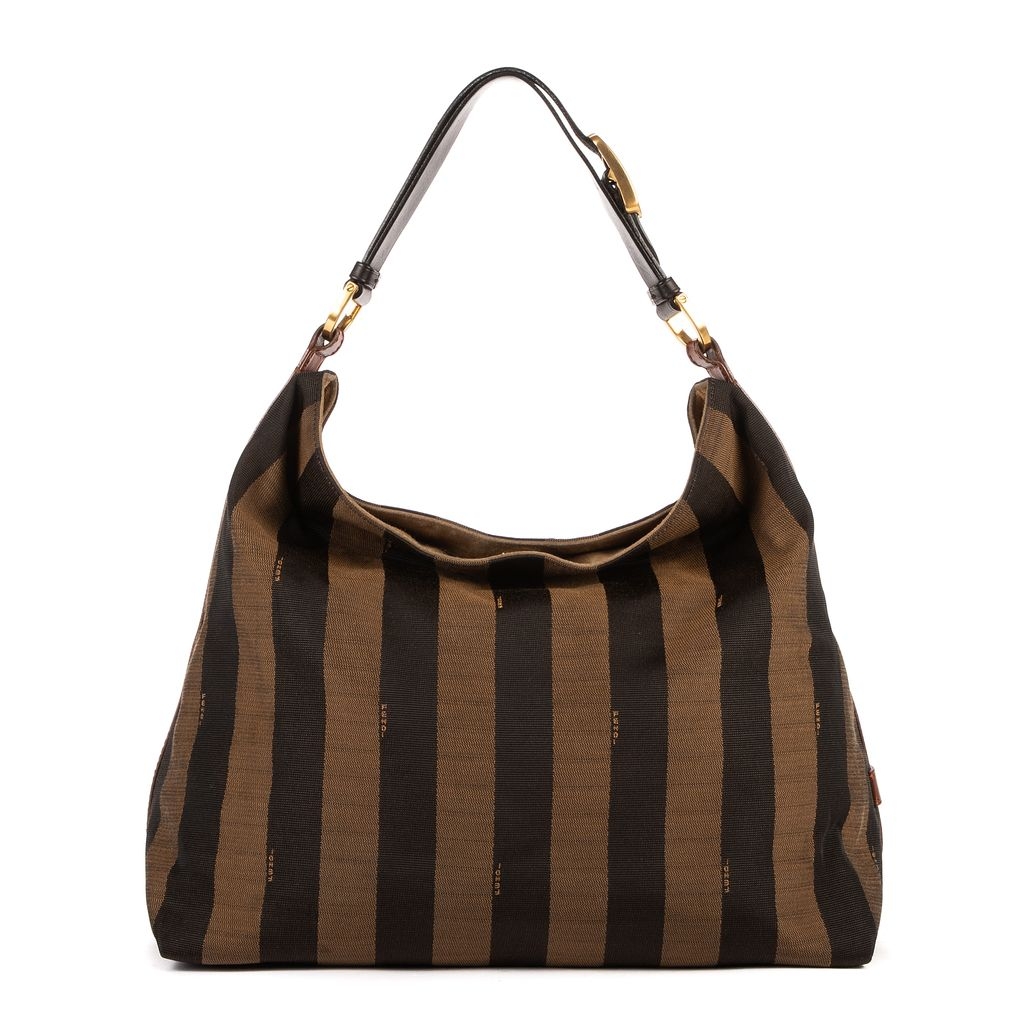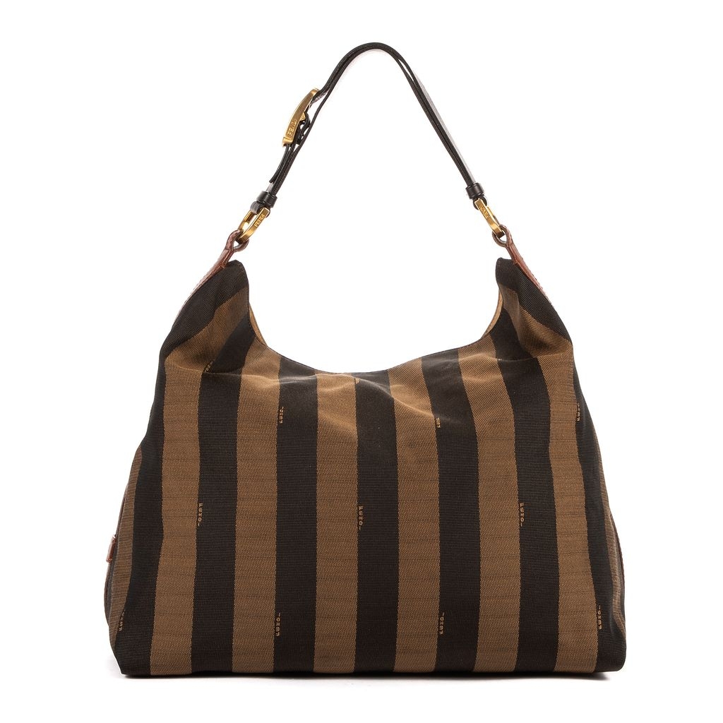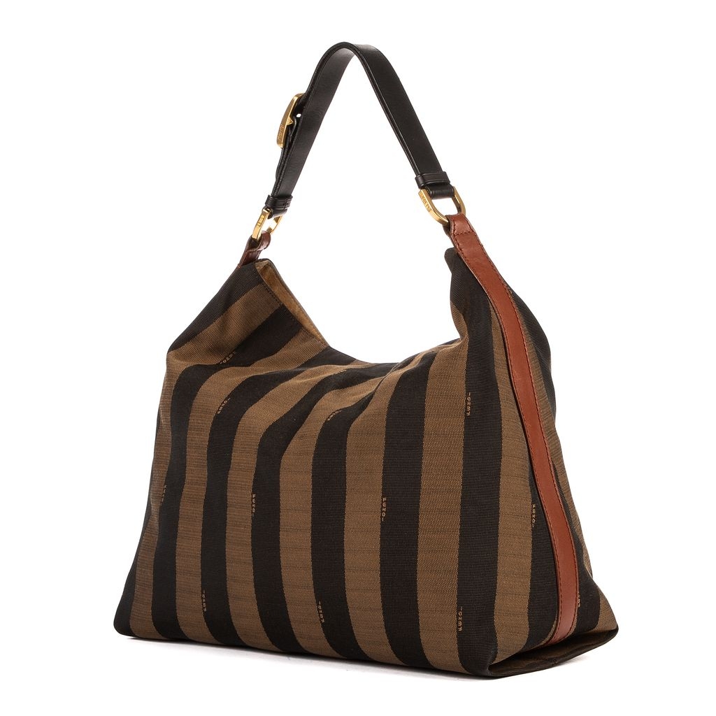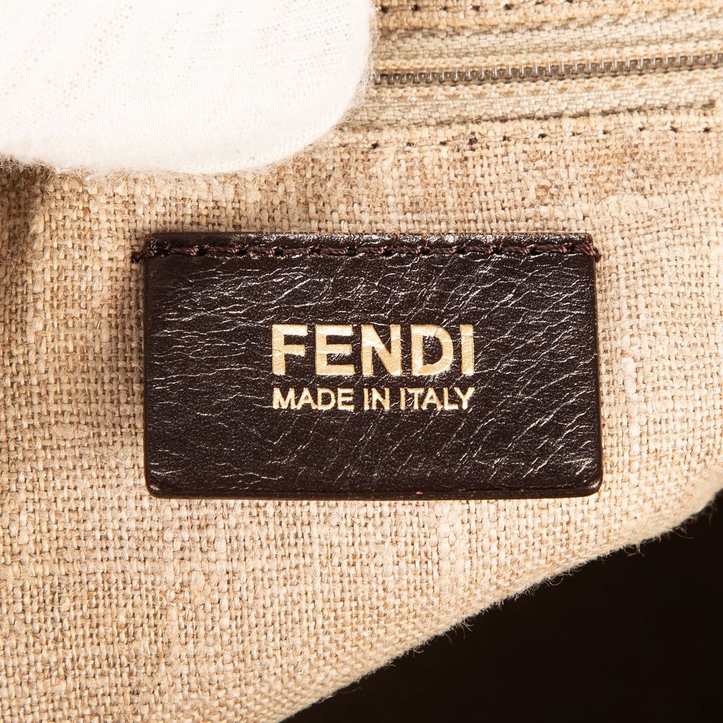 A vintage Fendi brown/black canvas Top Handle Hobo bag with a certificate of authenticity, Approximately cm height, cm width.