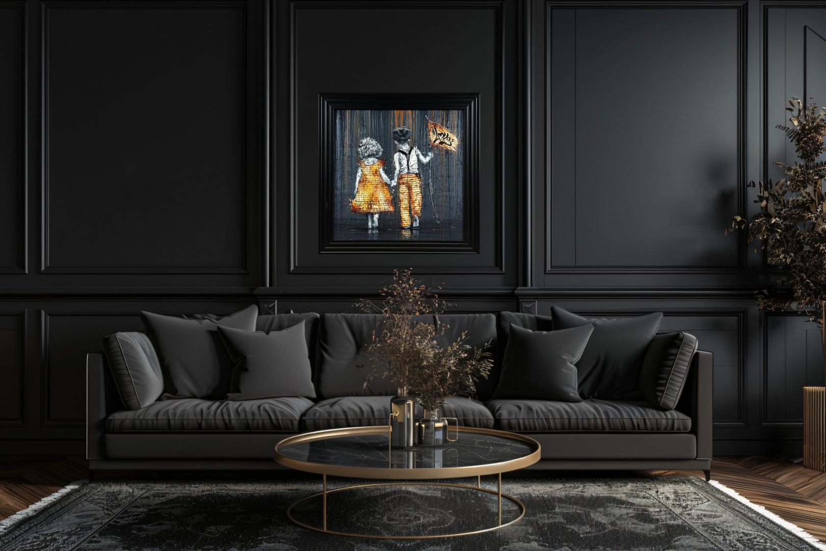 A brand new black-framed Clear Coat Overlay Art Picture that captures the innocence of youth and the enduring power of friendship — this touching piece features two children walking hand-in-hand, their backs turned, stepping boldly into a world painted with emotion. Measuring 75cm in height and 75cm in width, it's a square-format statement of heart, hope, and human connection.
