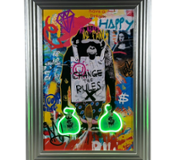 - > Framed LED Wall Art Banksy Picture of a Graffiti Space Girl & Bird
