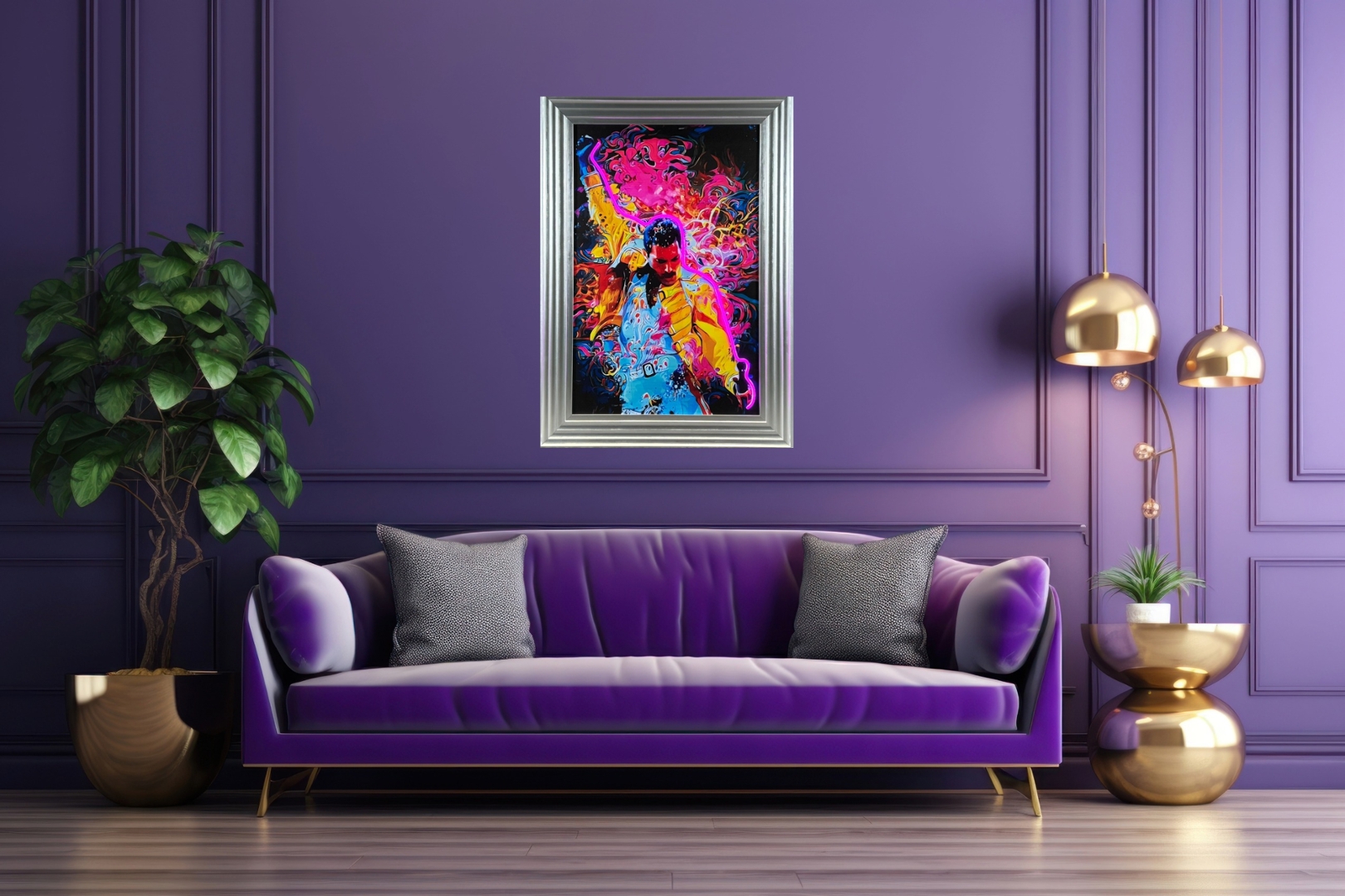 - > Framed LED Wall Art Picture of a Colourful Freddie Mercury