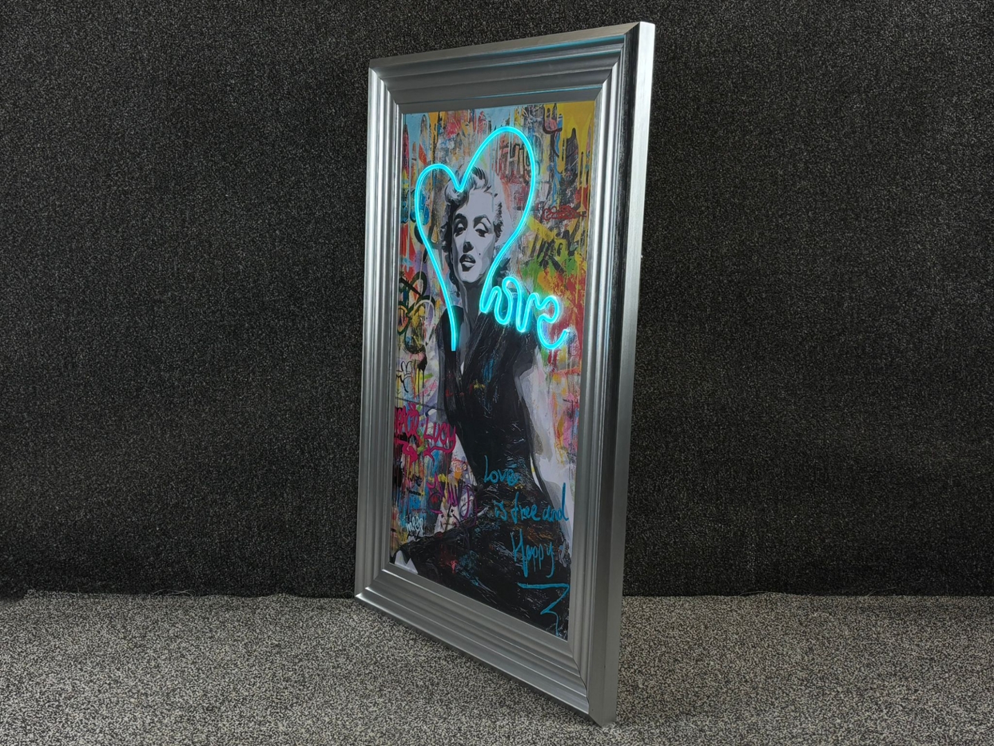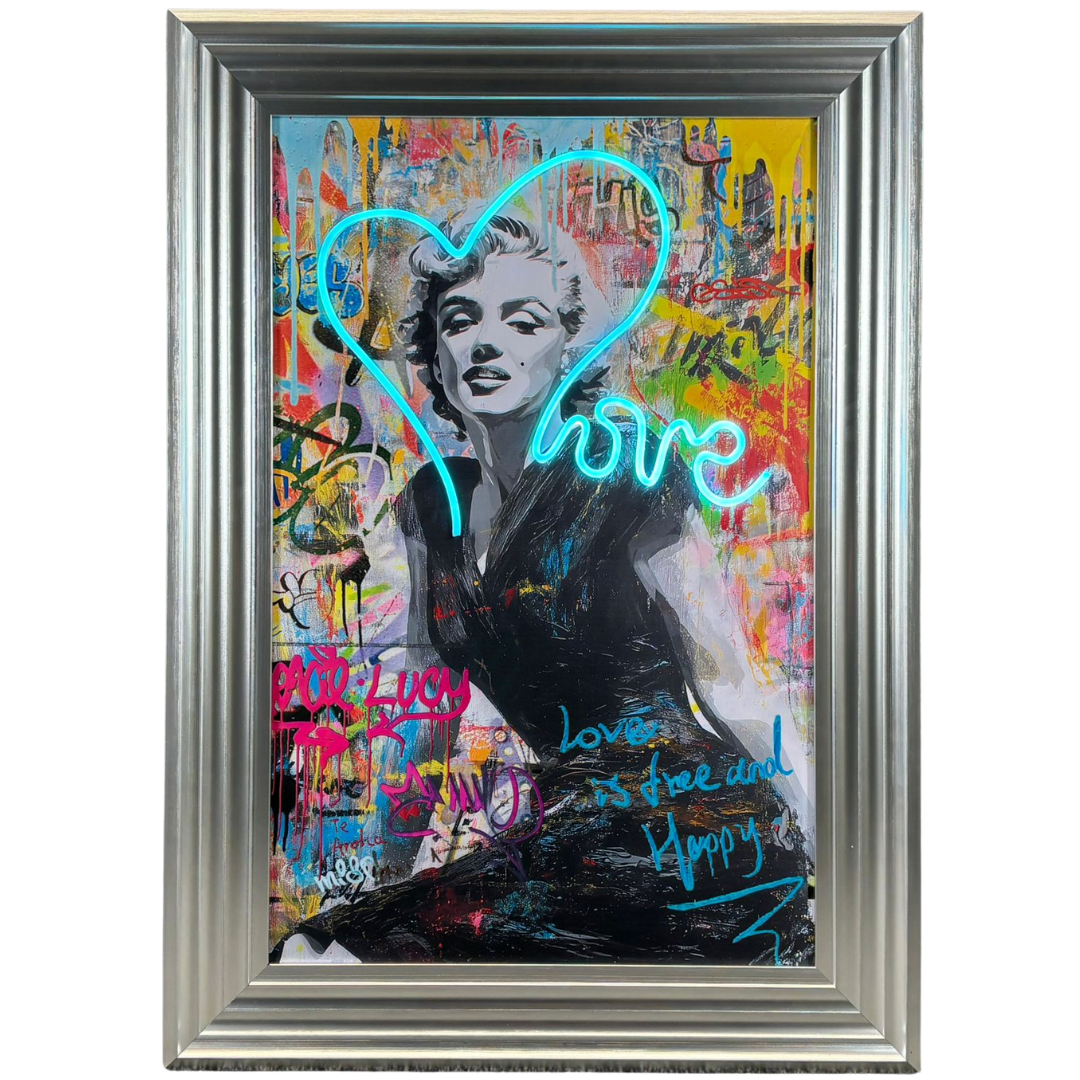 - > Framed LED Wall Art Picture of a Graffiti Marilyn Monroe - Love