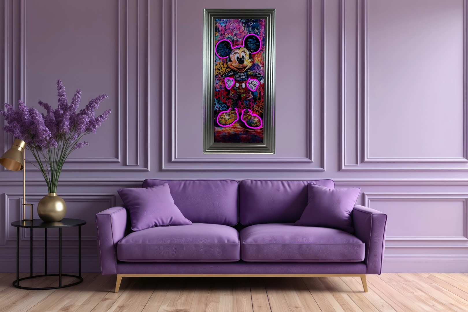 - > Framed LED Wall Art Picture of a Graffiti Mickey Mouse